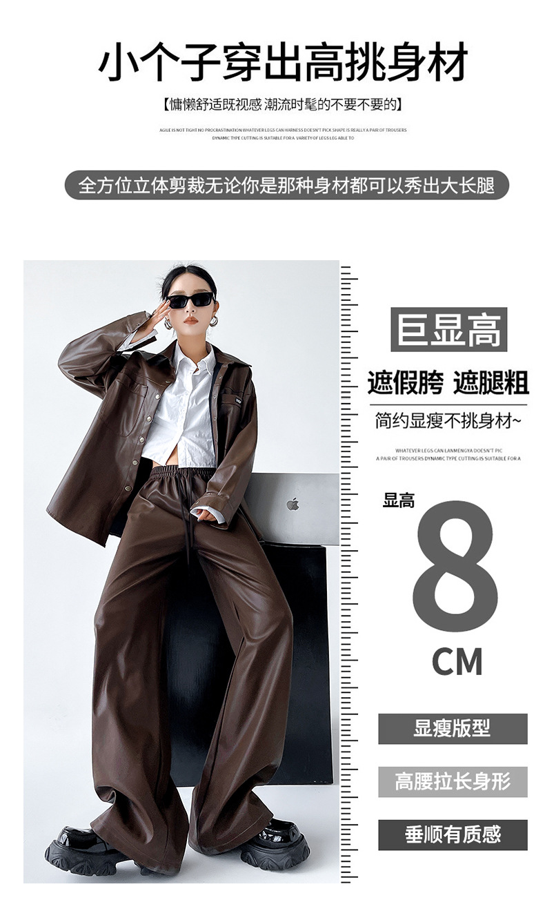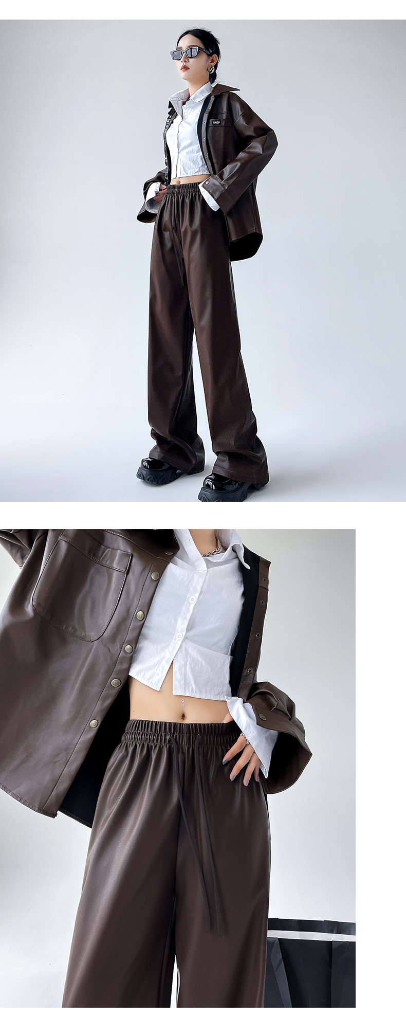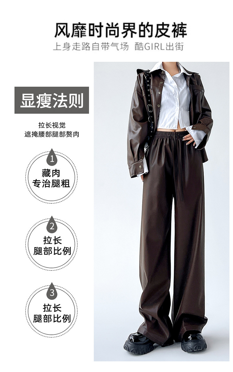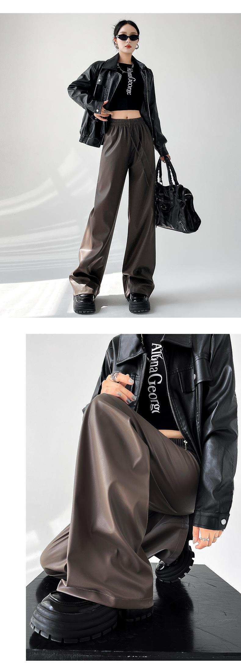 Pantalones de cuero estadounidenses, pantalones colgantes, pantalones de primavera, mujeres 2024, nuevos pantalones casuales rectos y delgados, pantalones suaves, de piel de pu, cintura alta y piernas anchas.