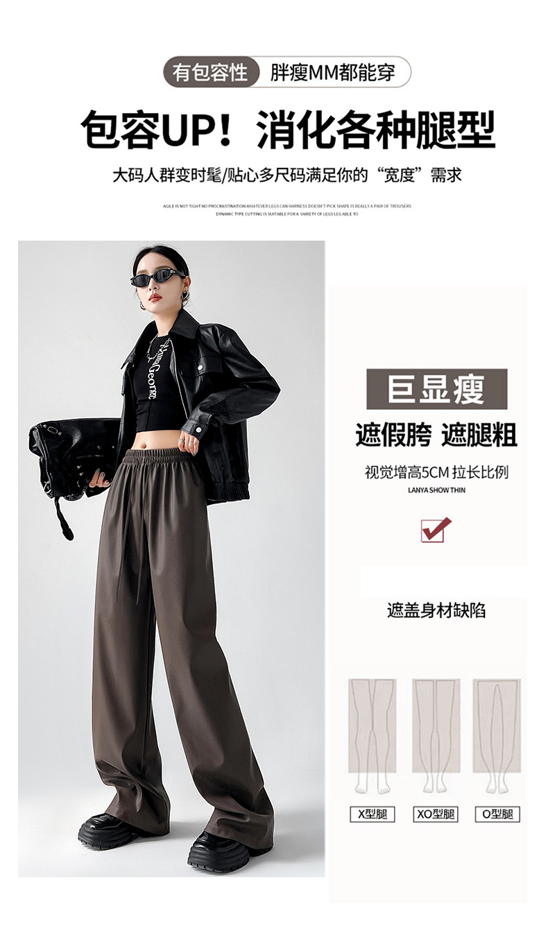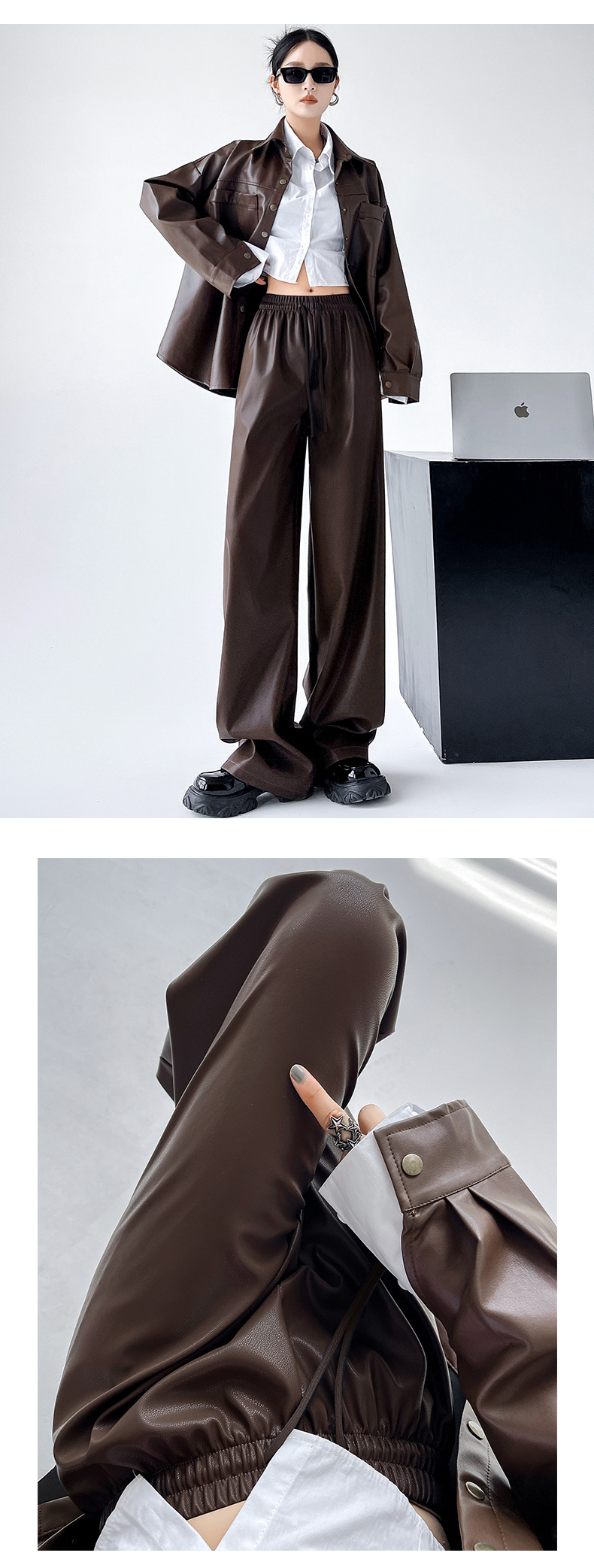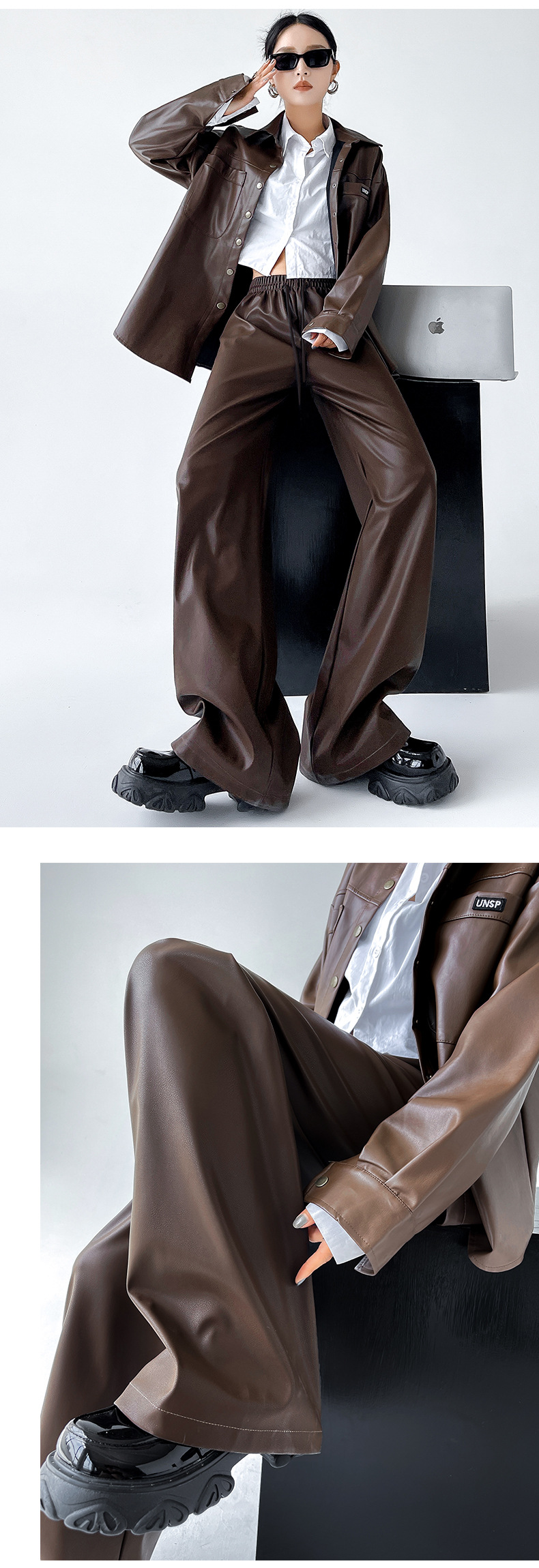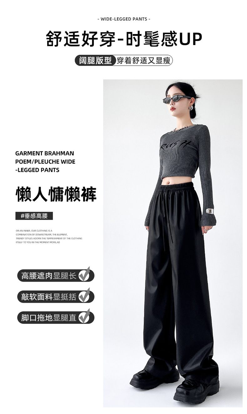 Pantalones de cuero estadounidenses, pantalones colgantes, pantalones de primavera, mujeres 2024, nuevos pantalones casuales rectos y delgados, pantalones suaves, de piel de pu, cintura alta y piernas anchas.
