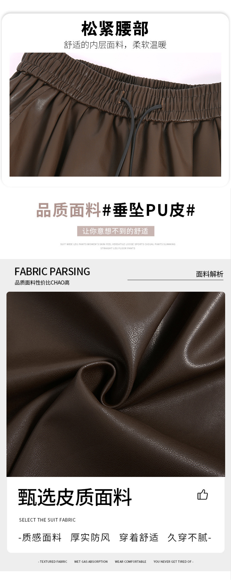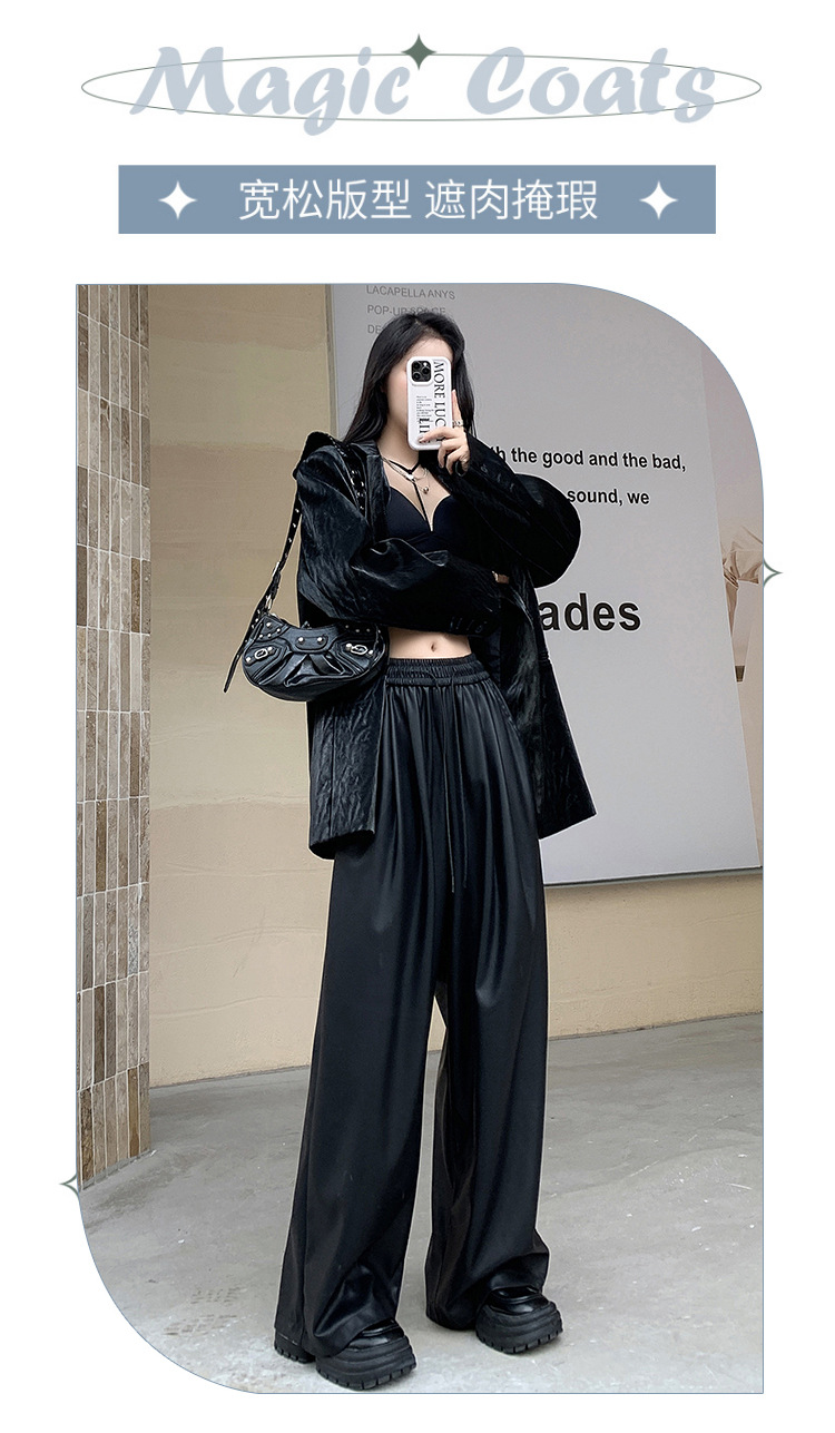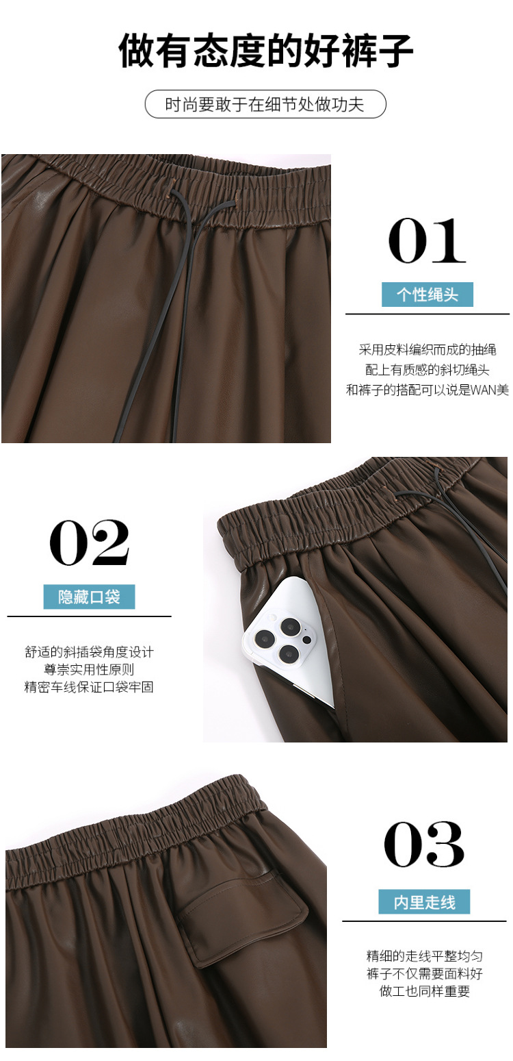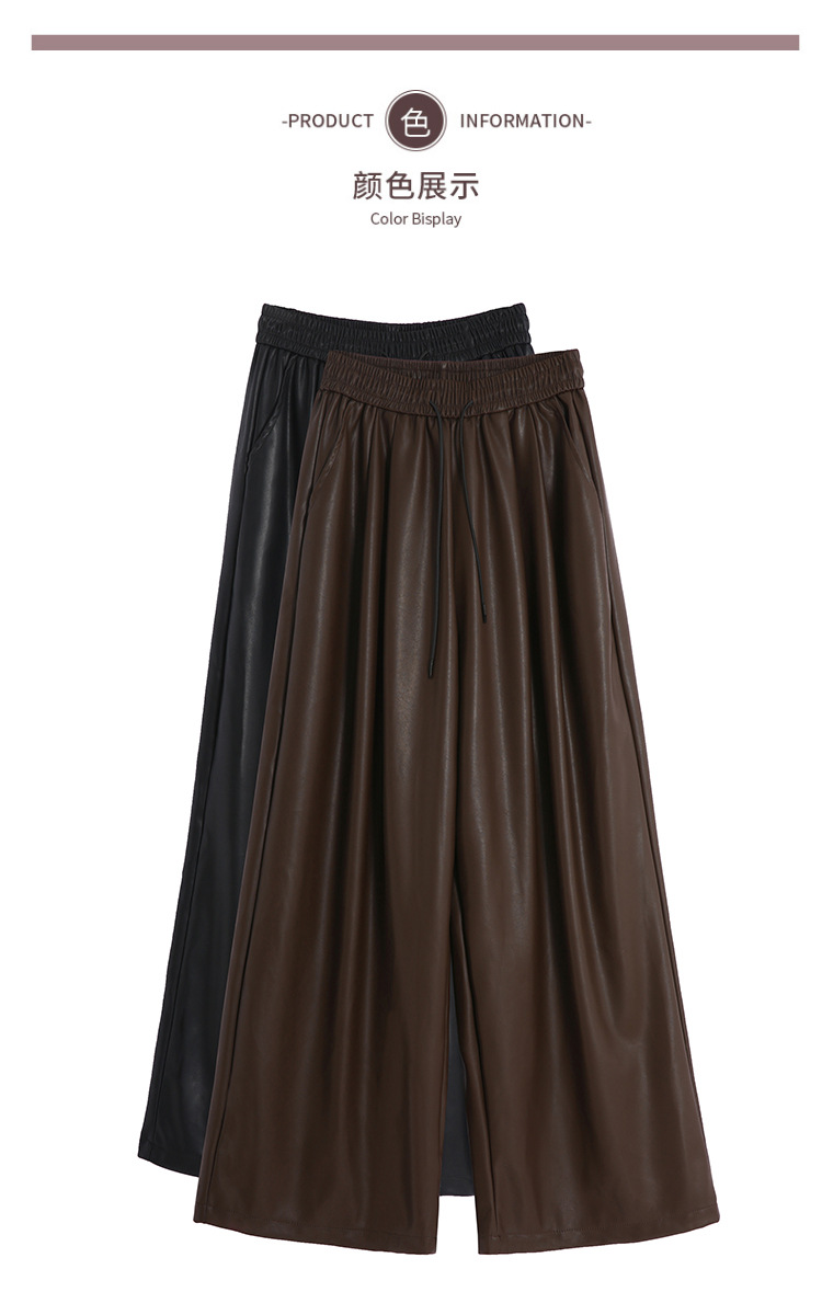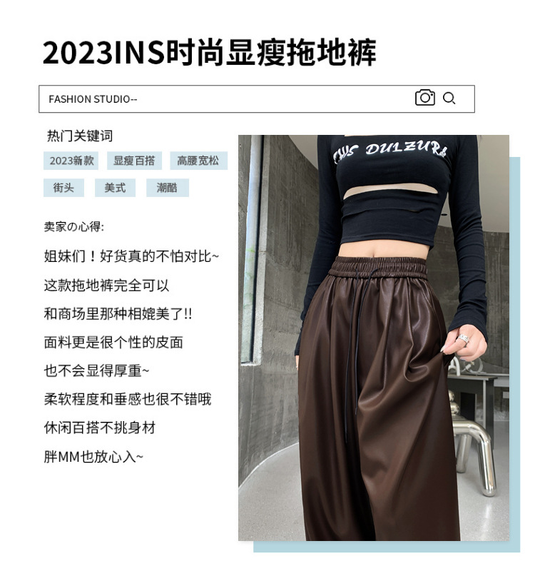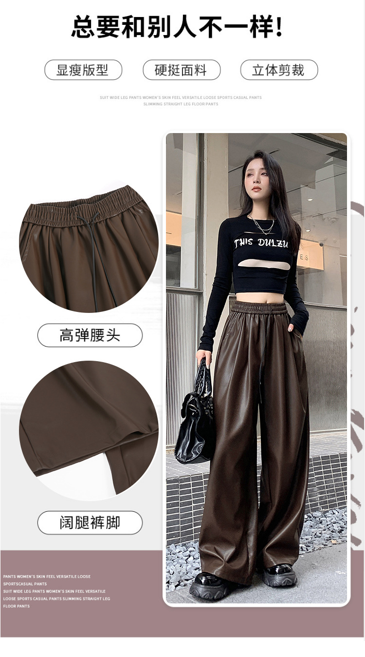 2023 pantalones de cuero estadounidenses retro mujeres otoño e invierno pantalones casuales relajados y delgados tirantes de cuerda mate Pu piernas anchas trapeadores de moda