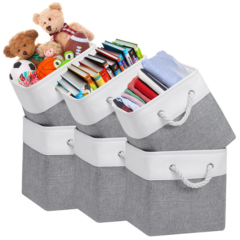 Cestas de almacenamiento cuadradas sin tapa de algodón y lino, cestas de almacenamiento de tela plegables, cestas de almacenamiento de juguetes domésticos, cajas de almacenamiento de ropa al por mayor