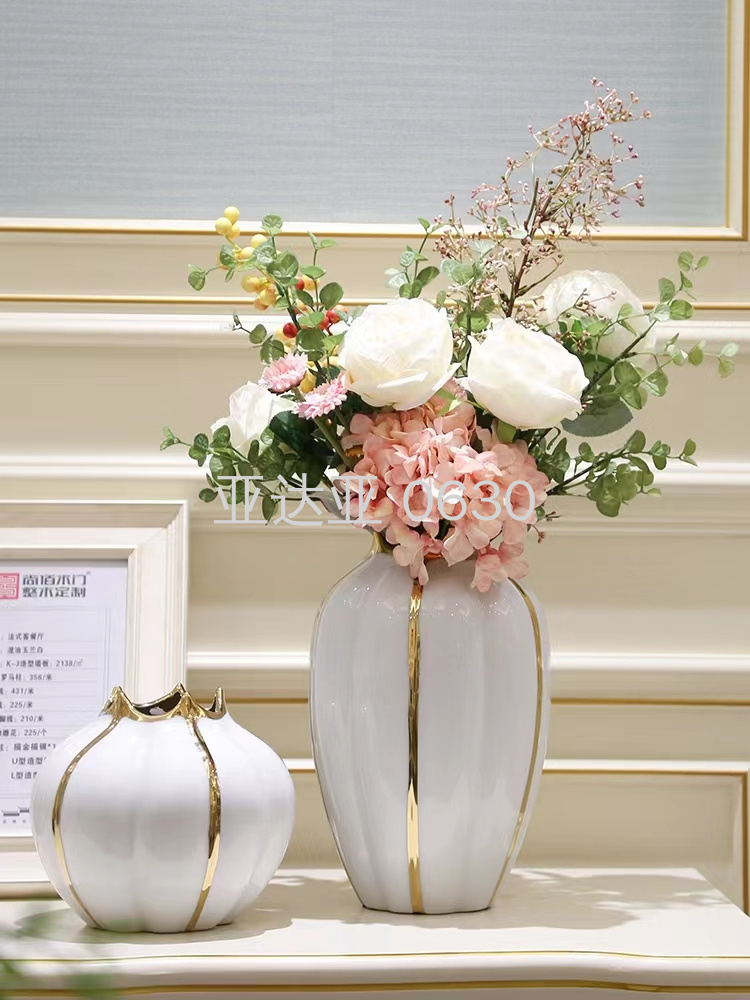 Decoración de jarrones de lujo ligero, decoración de jarrones de cerámica en la Sala de estar, decoración de artesanía de porcelana, decoración del hogar