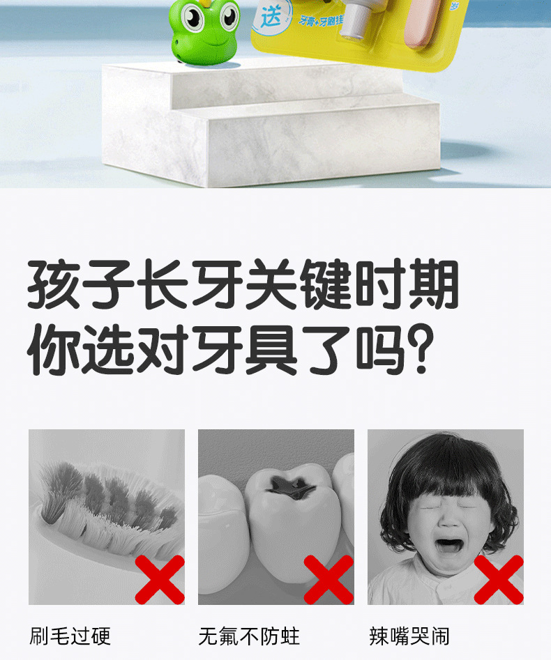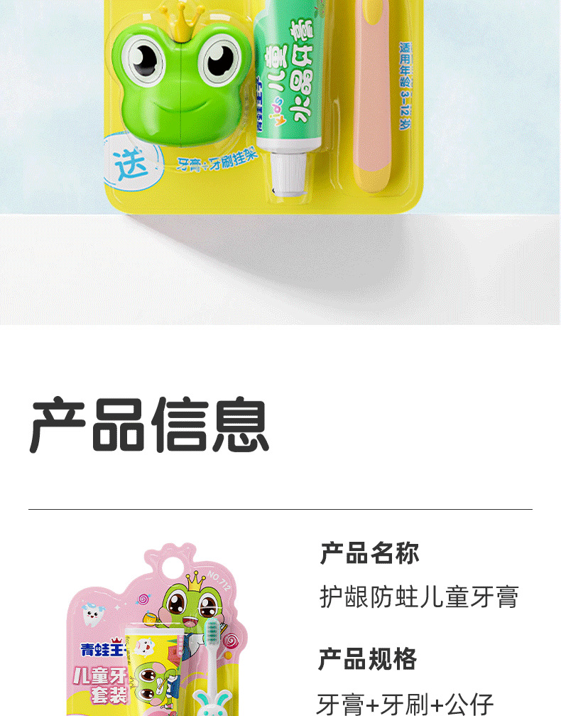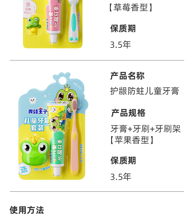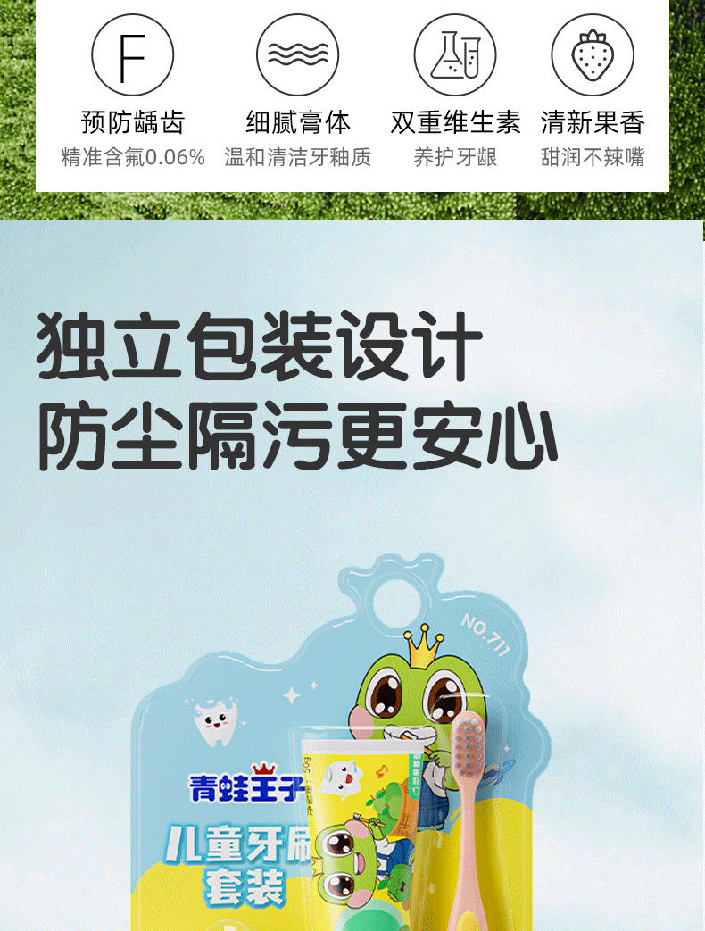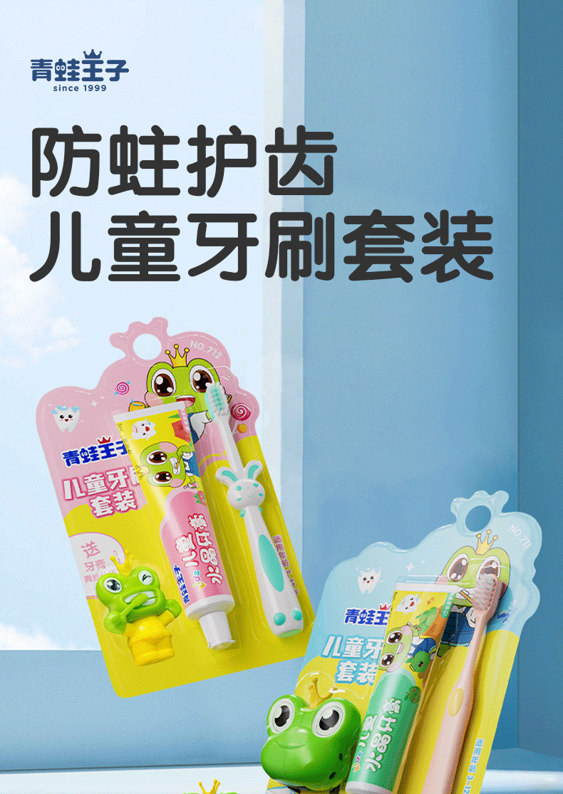 Frog Prince pasta de dientes para niños, juguetes de cepillo de dientes, tres juegos de pasta de dientes antipolillas para bebés, juegos de cepillo de dientes de pelo blando al por mayor