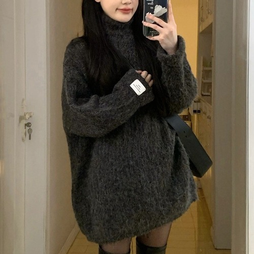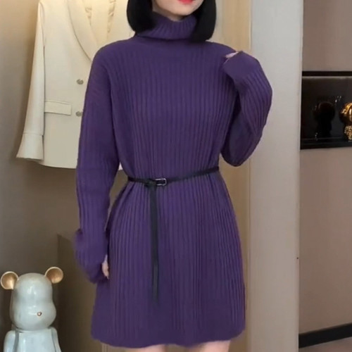 Falda de medio cuerpo de punto gris con horquilla abierta, diseño de otoño e invierno femenino, temperamento de nicho, falda en forma de a, falda media y larga, falda recta con caderas
