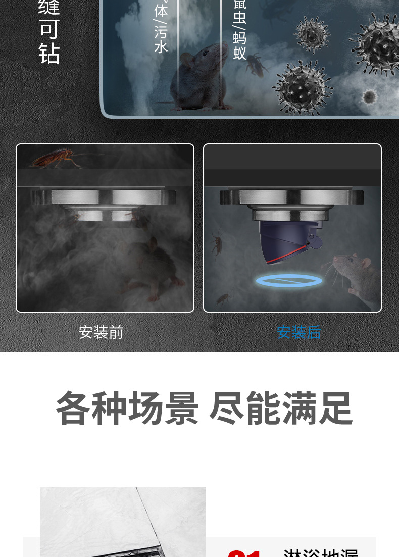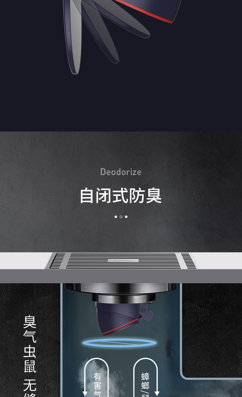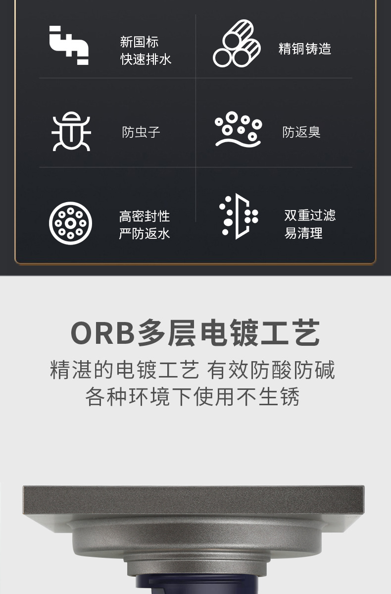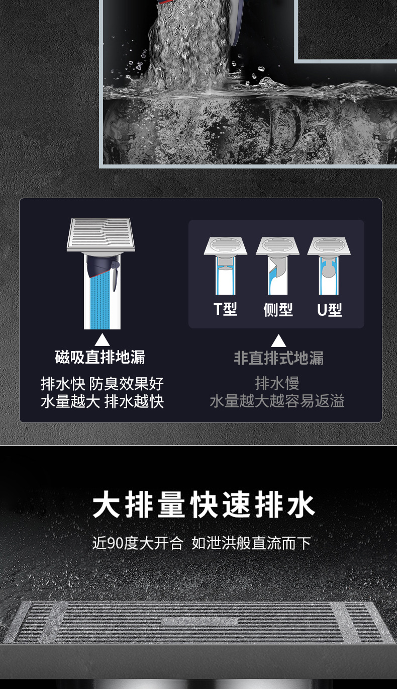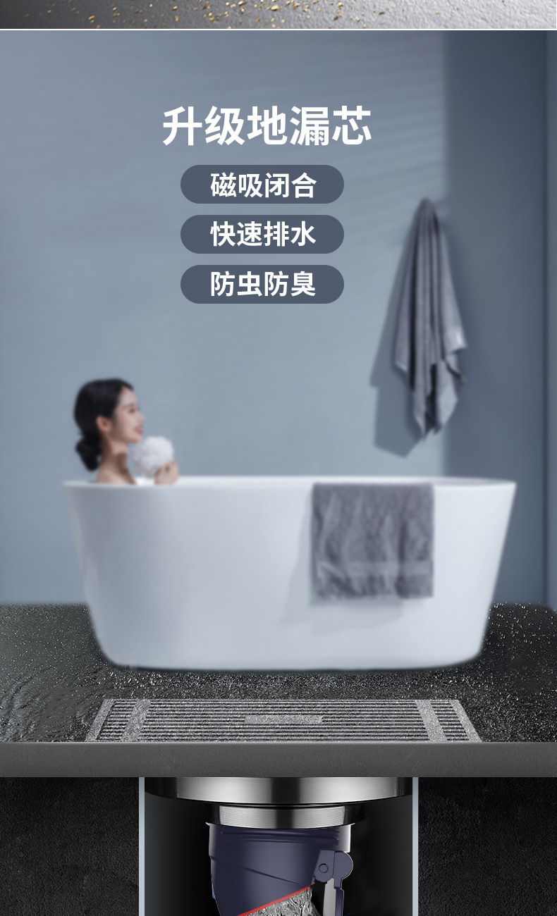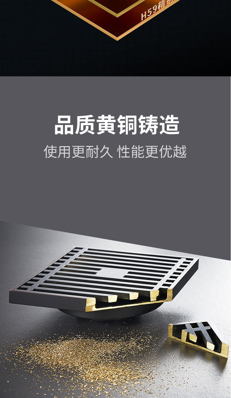 Baño de drenaje maloliente de cobre completo, lavadora de gran flujo, núcleo maloliente de alcantarilla invisible, drenaje largo