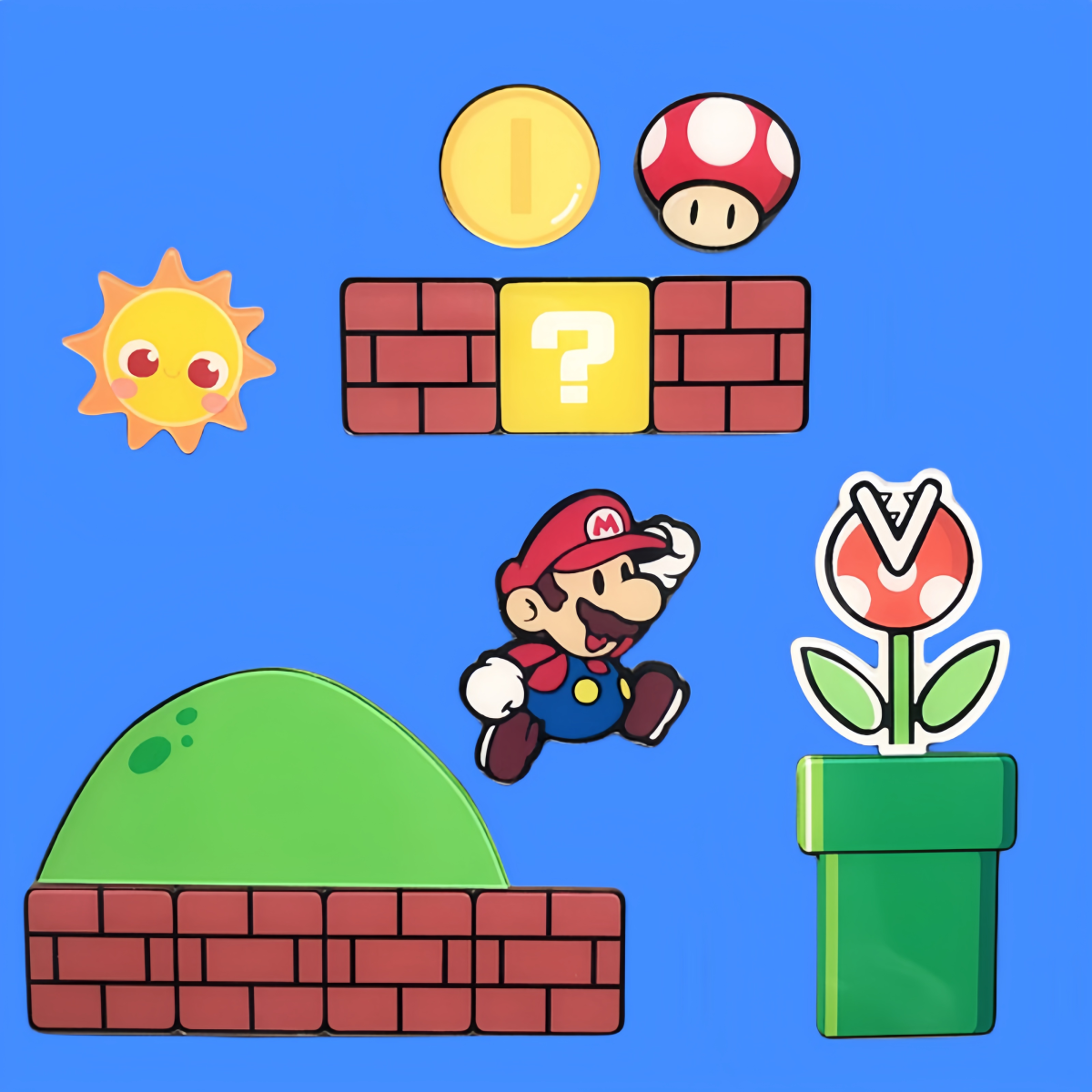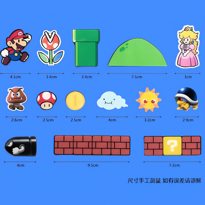 Nuevo refrigerador super Mary pegatinas magnéticas personalizadas creatividad un conjunto de pegatinas decorativas Mario magnéticas blandas absorción magnética lateral