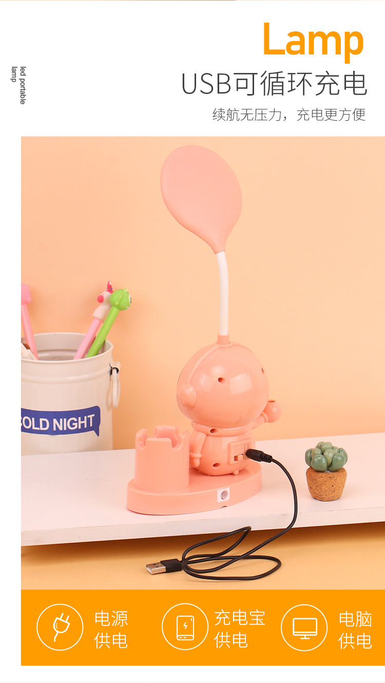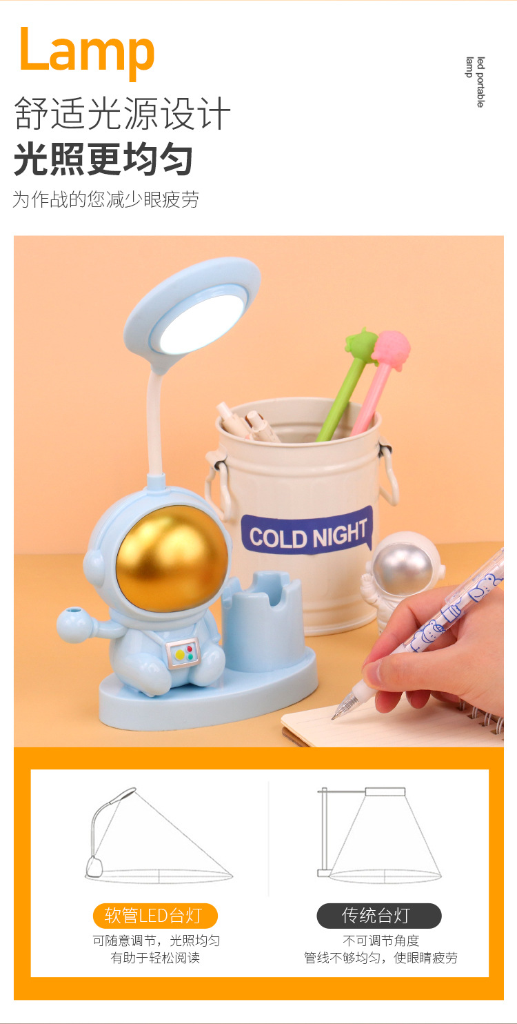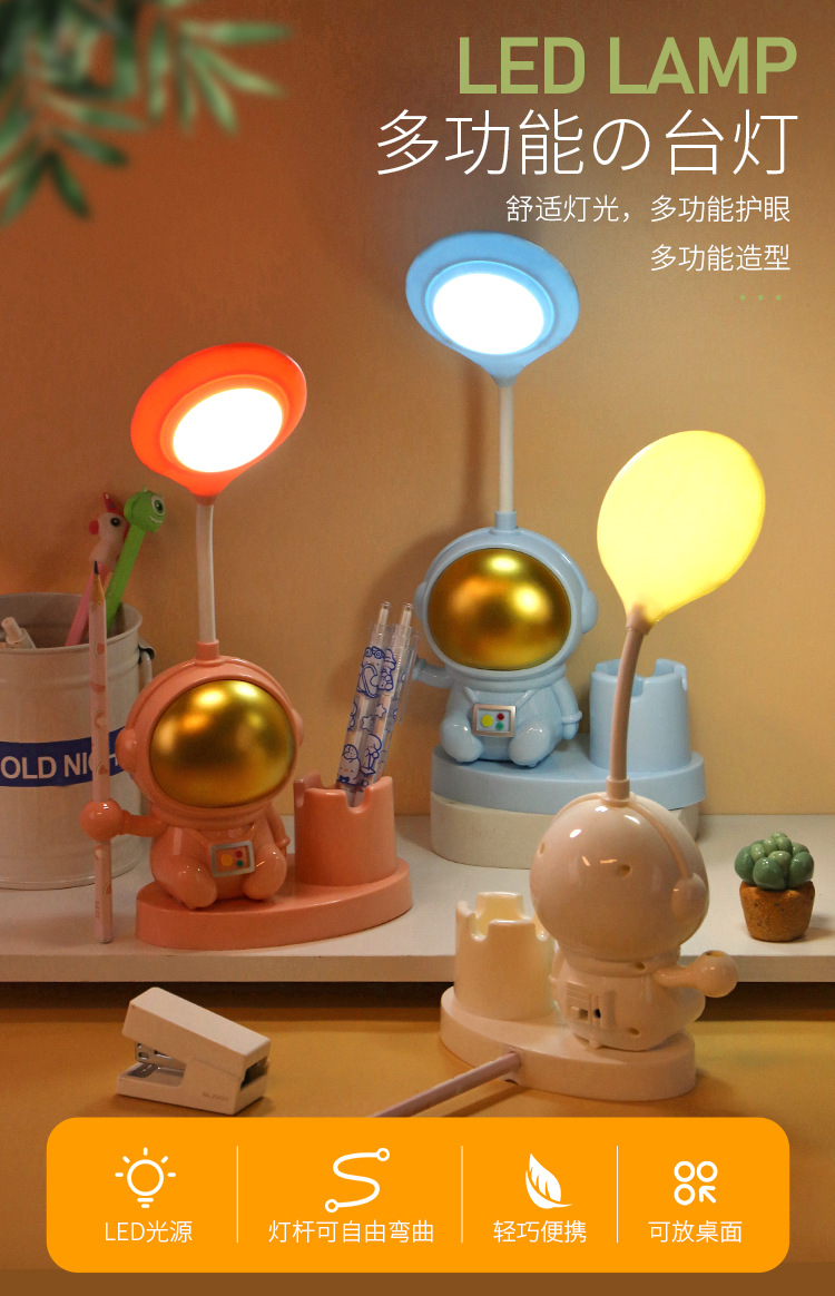 El escritorio estudiantil del ventilador de la pluma del astronauta creativo contiene lámparas plegables, adornos del dormitorio, regalos, lámparas nocturnas grabadas