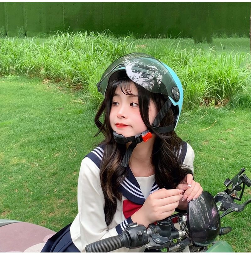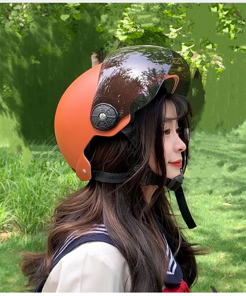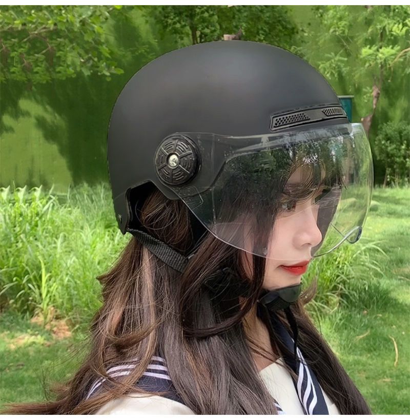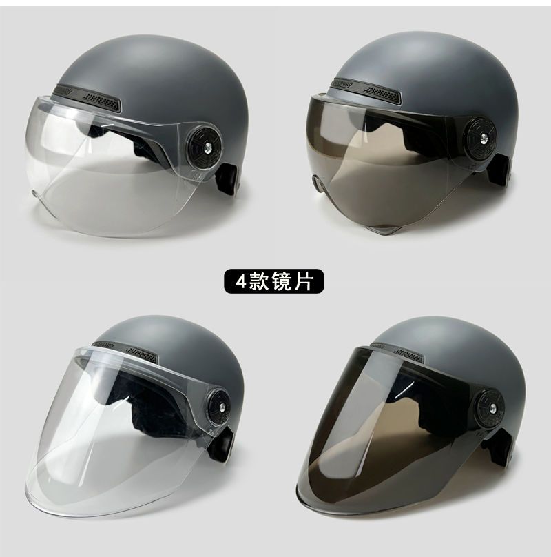 Casco de coche de batería eléctrica simple de color sólido casco gris mujer hombre cuatro estaciones medio casco universal Haley casco de verano casco de Seguridad