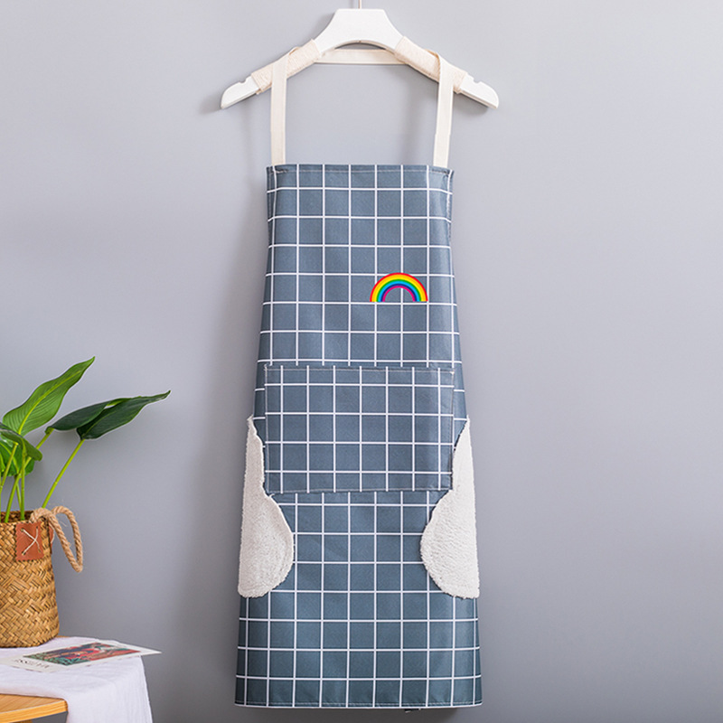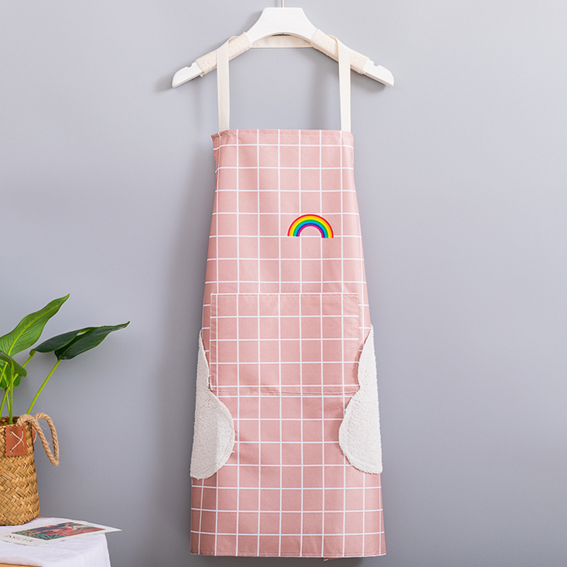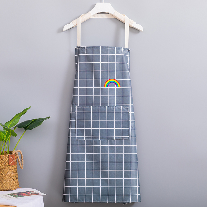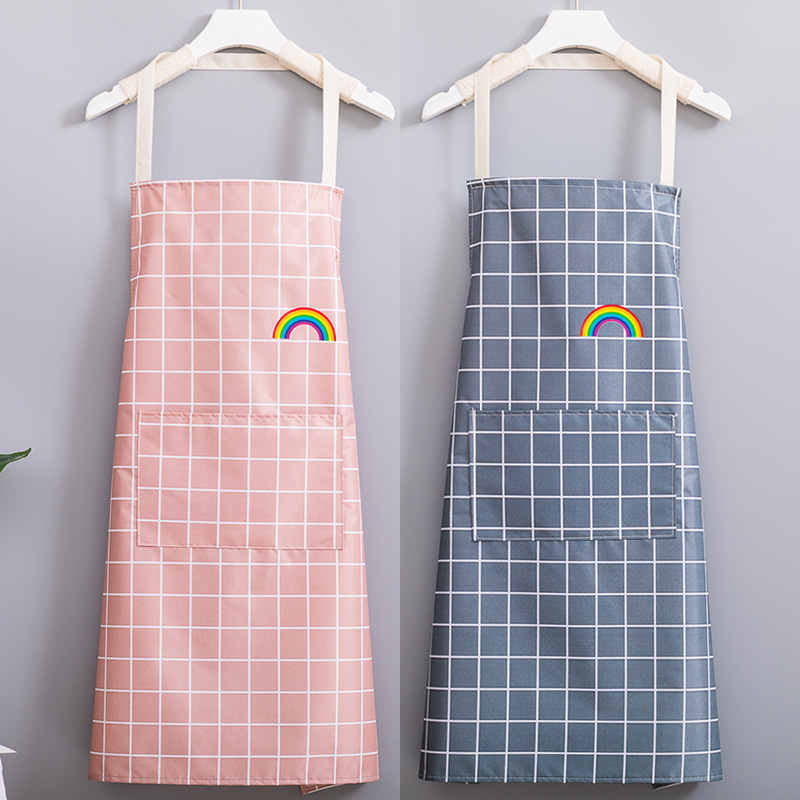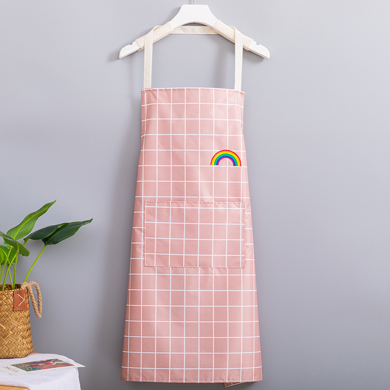 Fabricante venta al por mayor de delantales impermeables y a prueba de aceite para uso doméstico impresión de cintura para hacer ropa de trabajo logo Rainbow