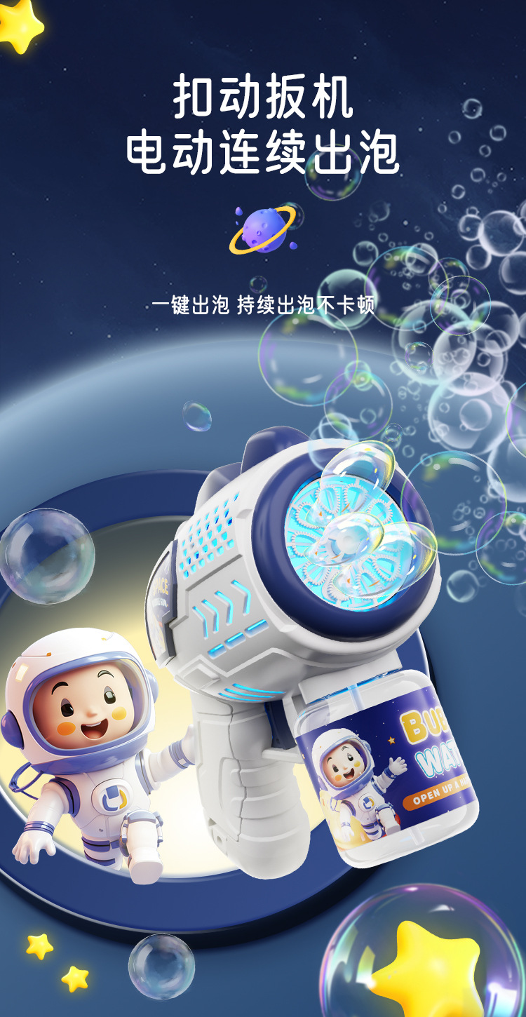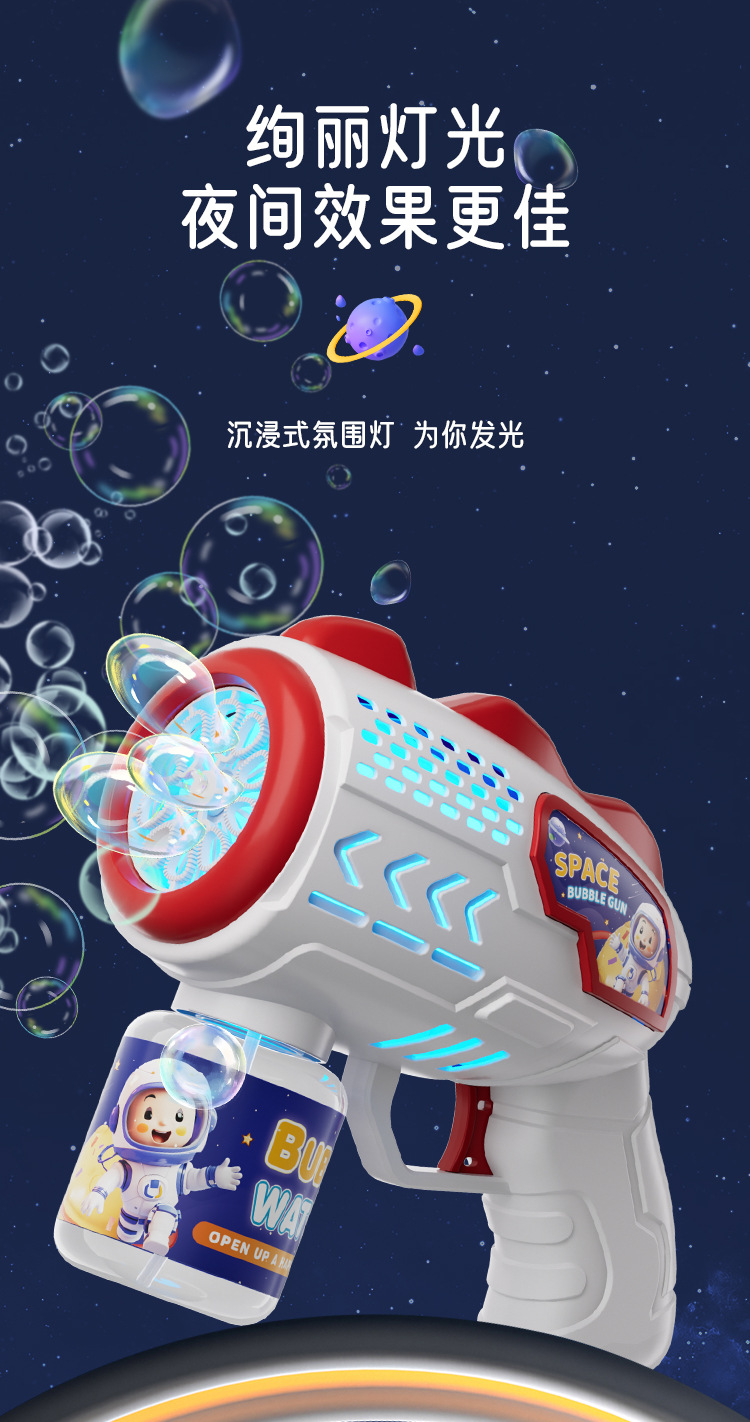Máquina de burbujas juguetes para astronautas espaciales totalmente automáticos gatlin soplador de burbujas eléctrico pistolero de burbujas con niños al por mayor transfronterizo