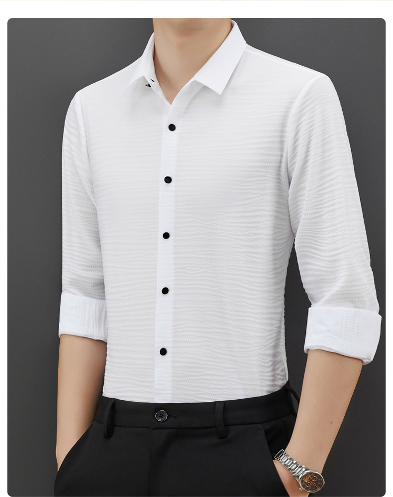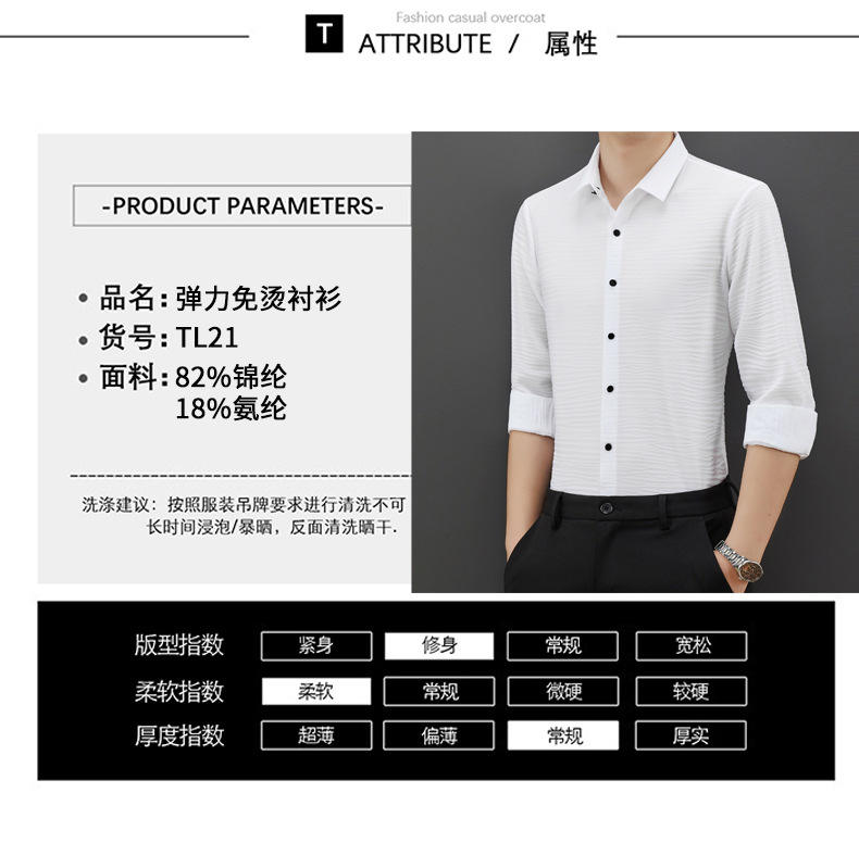 En la primavera de 2024, se vende al por mayor la nueva camisa elástica sin permanente, simple y de alta gama para hombres y mujeres de manga larga Yiwu para hombres.