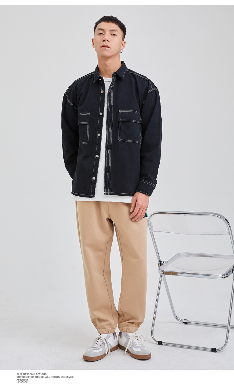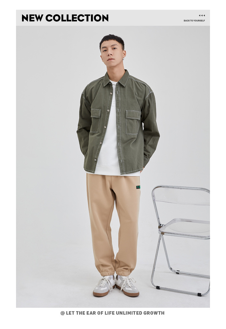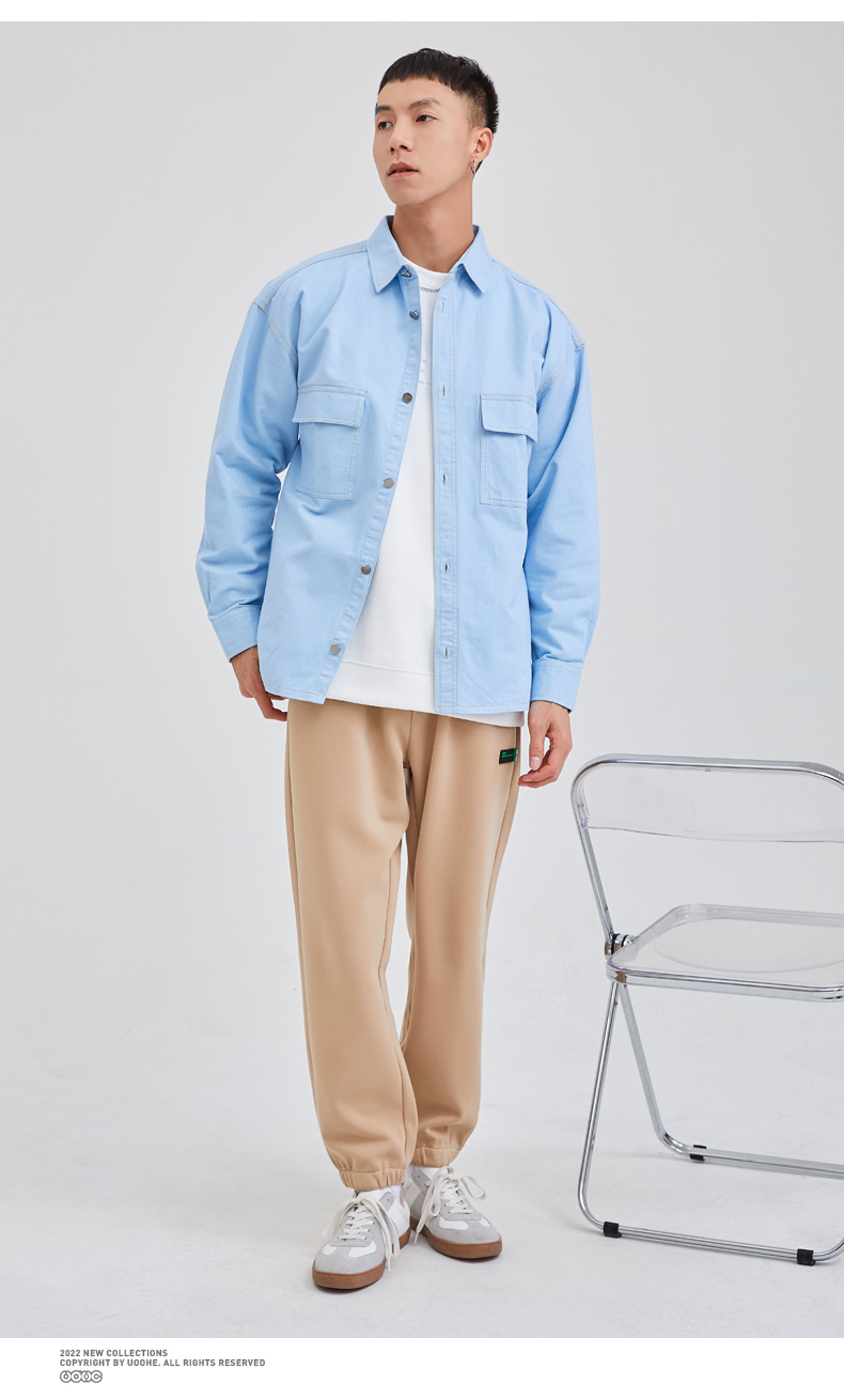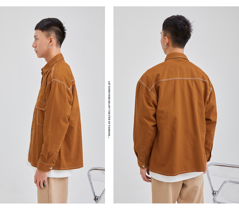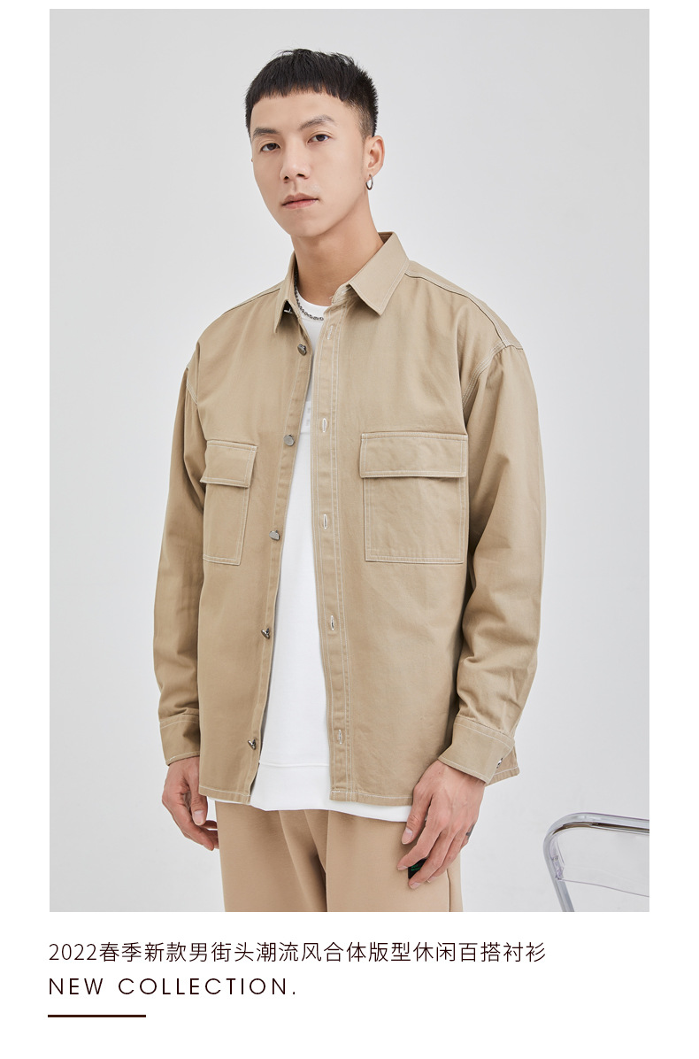 Ropa de trabajo de moda de alta costura de primavera y otoño camisa de ropa masculina de algodón puro abrigo sólido japonés chaqueta retro nuevo hombre