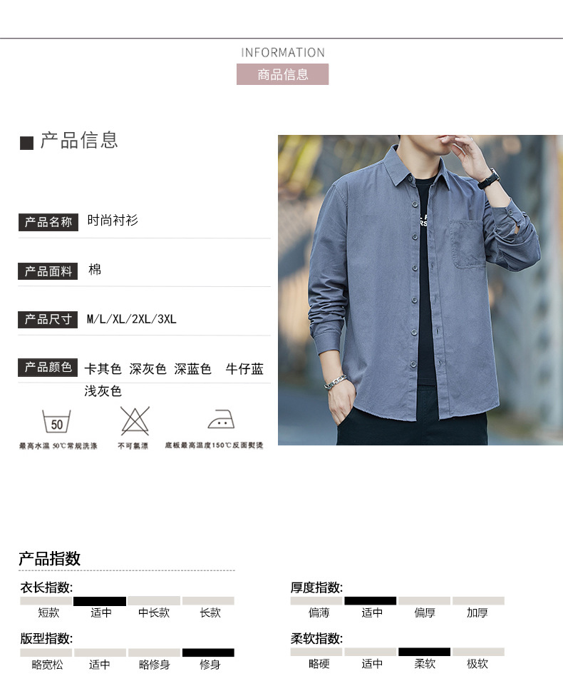 Camisa de manga larga en primavera y otoño camisa casual diaria ropa de camisa masculina algodón puro abrigo masculino moda primavera