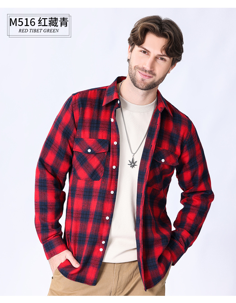 Amazon explota la camisa de primavera y otoño, ropa masculina, franela, camisa estadounidense a cuadros, fabricante mayorista de chaquetas jóvenes