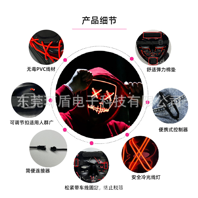Fábrica Al por mayor de máscaras luminosas de el frío máscaras LED Carnaval de Halloween baile en forma de V con sangre fantasma terrorista