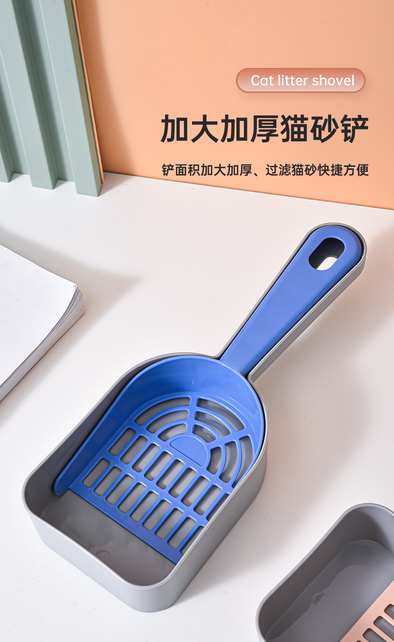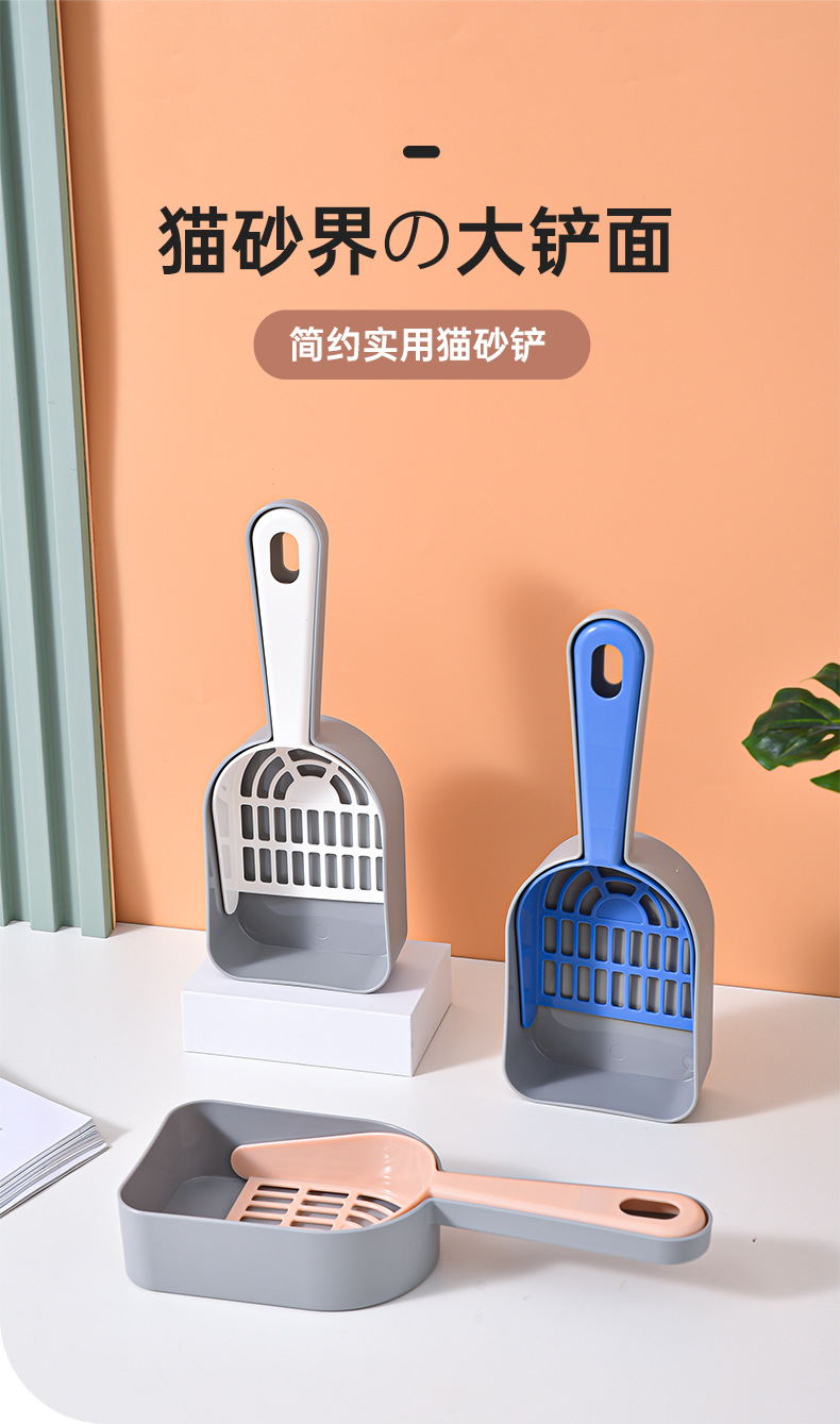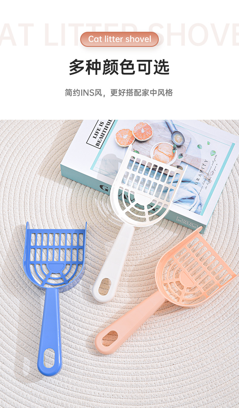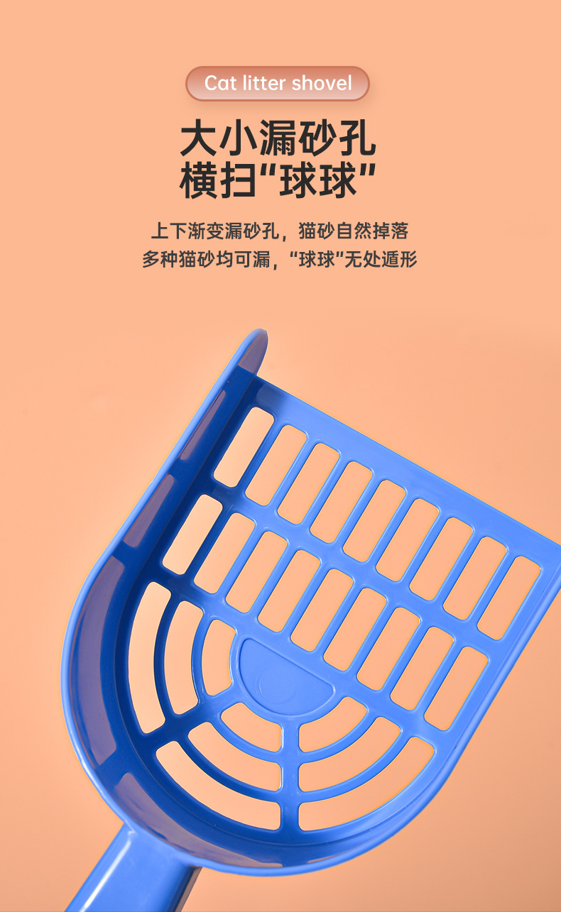 Los fabricantes de palas de arena para gatos de plástico palas de mierda para gatos venden directamente productos de limpieza para mascotas de agujeros finos, palas de arena para gatos.