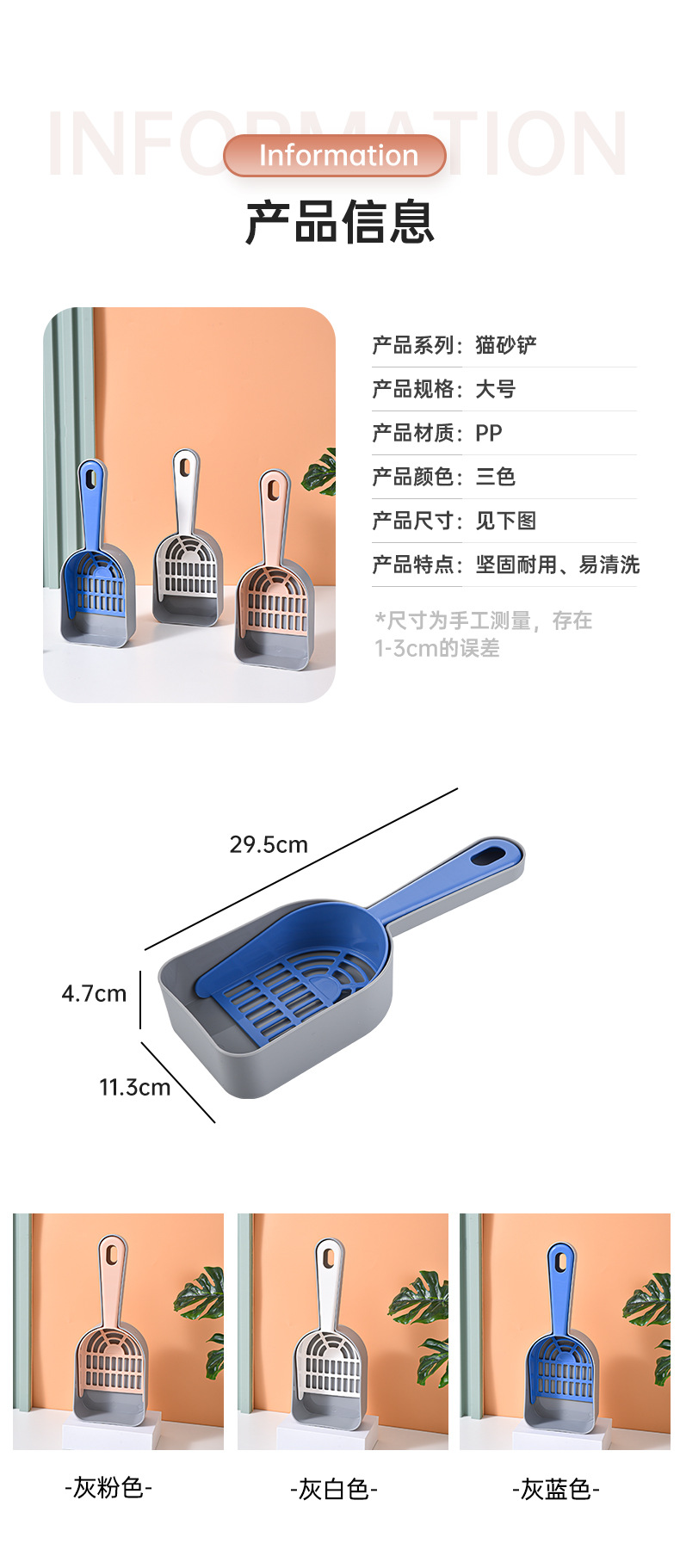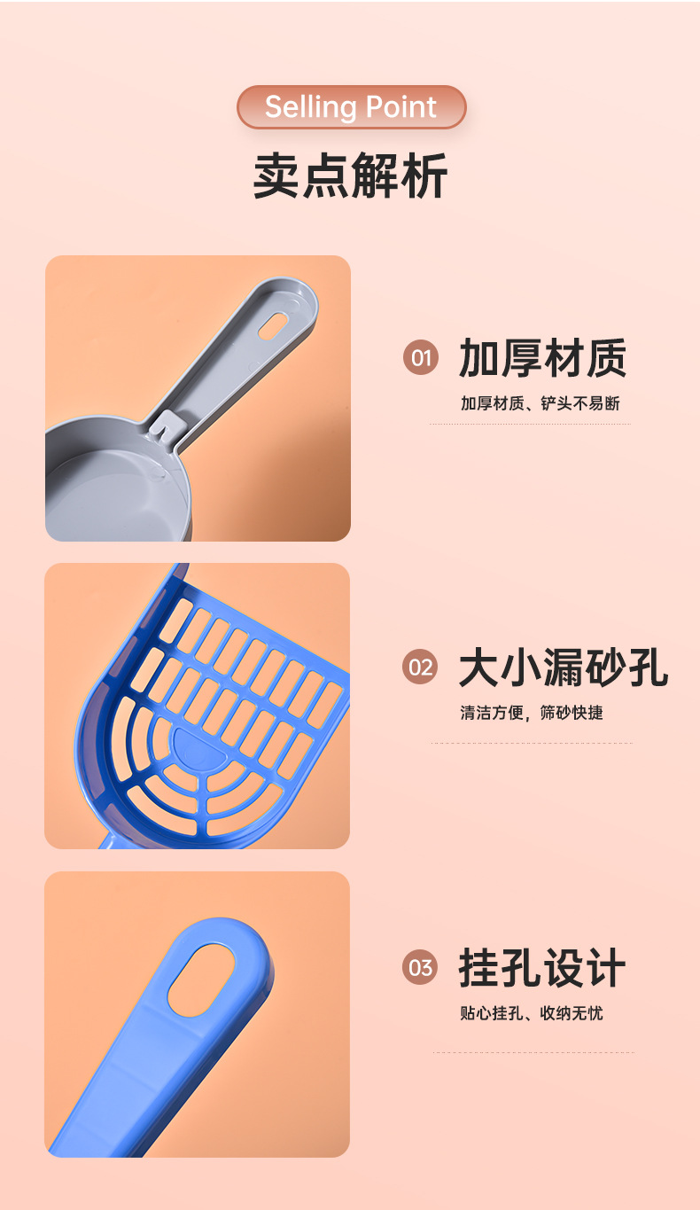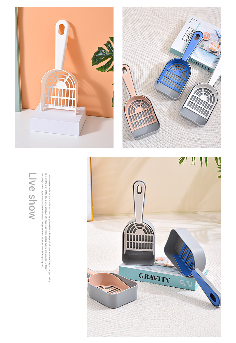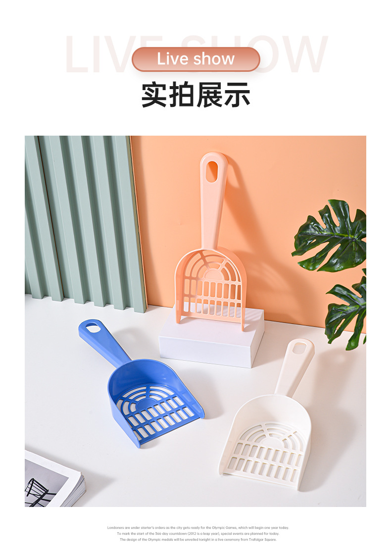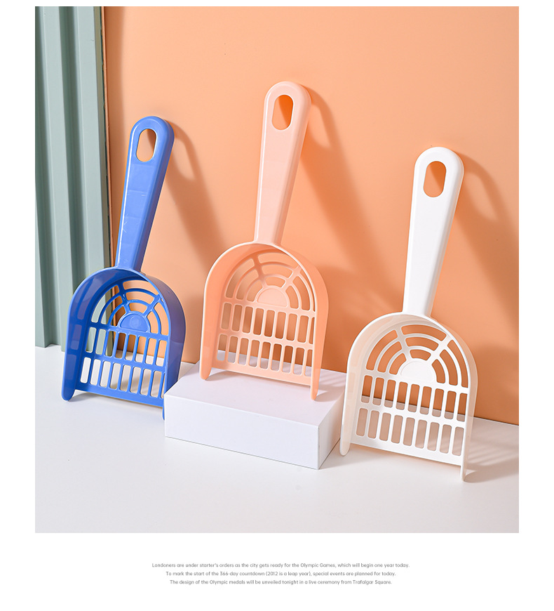 Los fabricantes de palas de arena para gatos de plástico palas de mierda para gatos venden directamente productos de limpieza para mascotas de agujeros finos, palas de arena para gatos.