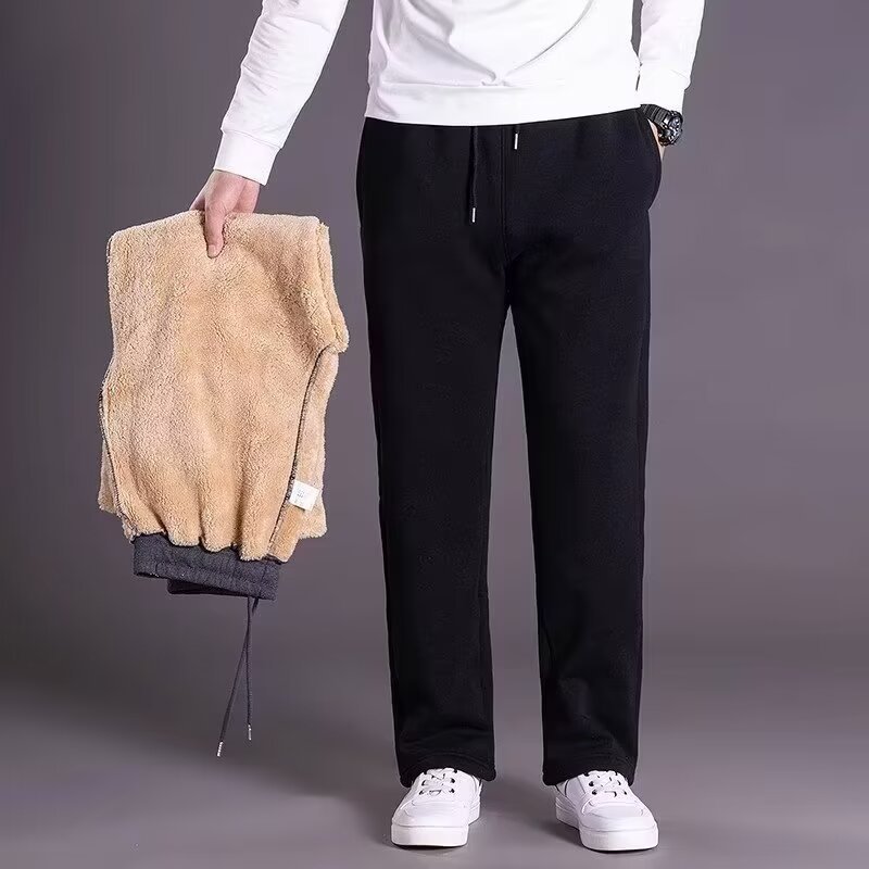 En invierno, cordero y pantalones de terciopelo para hombres pantalones deportivos sueltos y de gran tamaño y pantalones gruesos para hombres para mantenerse calientes y fríos.