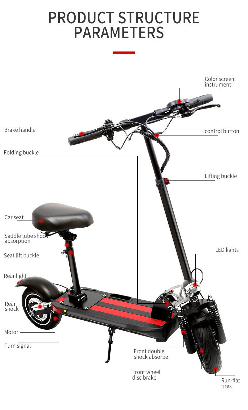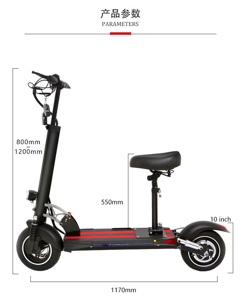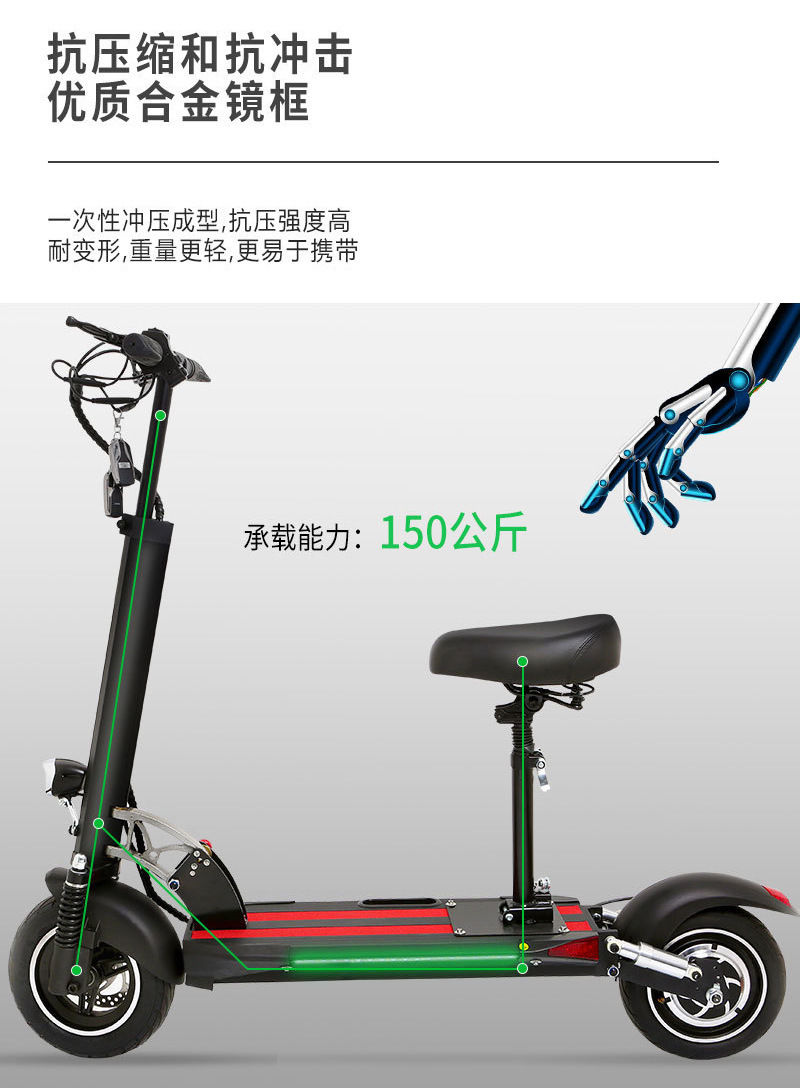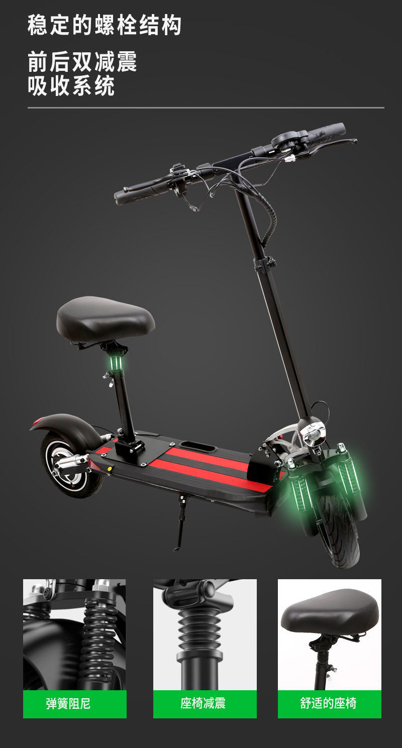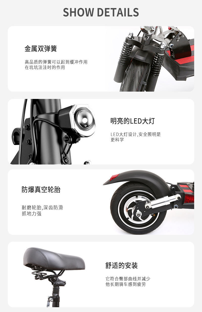 Salida de scooter eléctrico portátil de alta potencia de 10 pulgadas con neumáticos todoterreno plegables para adultos transfronterizos
