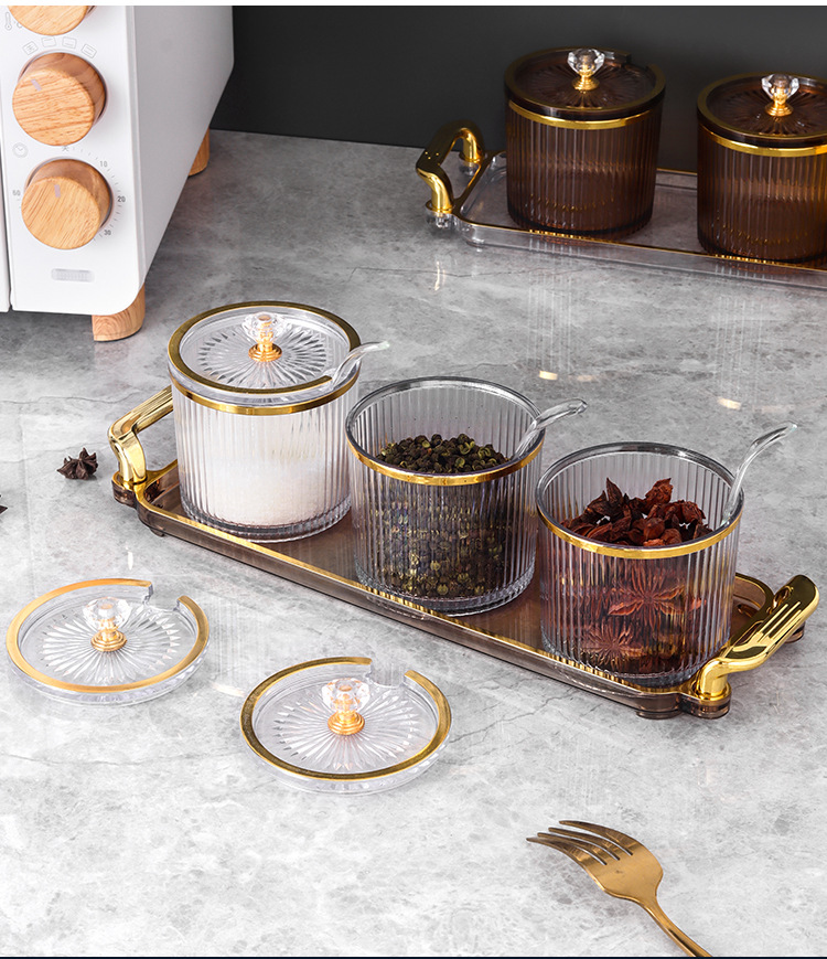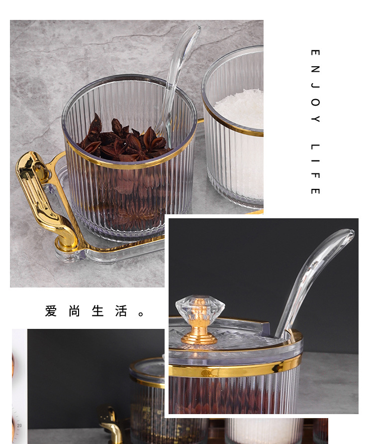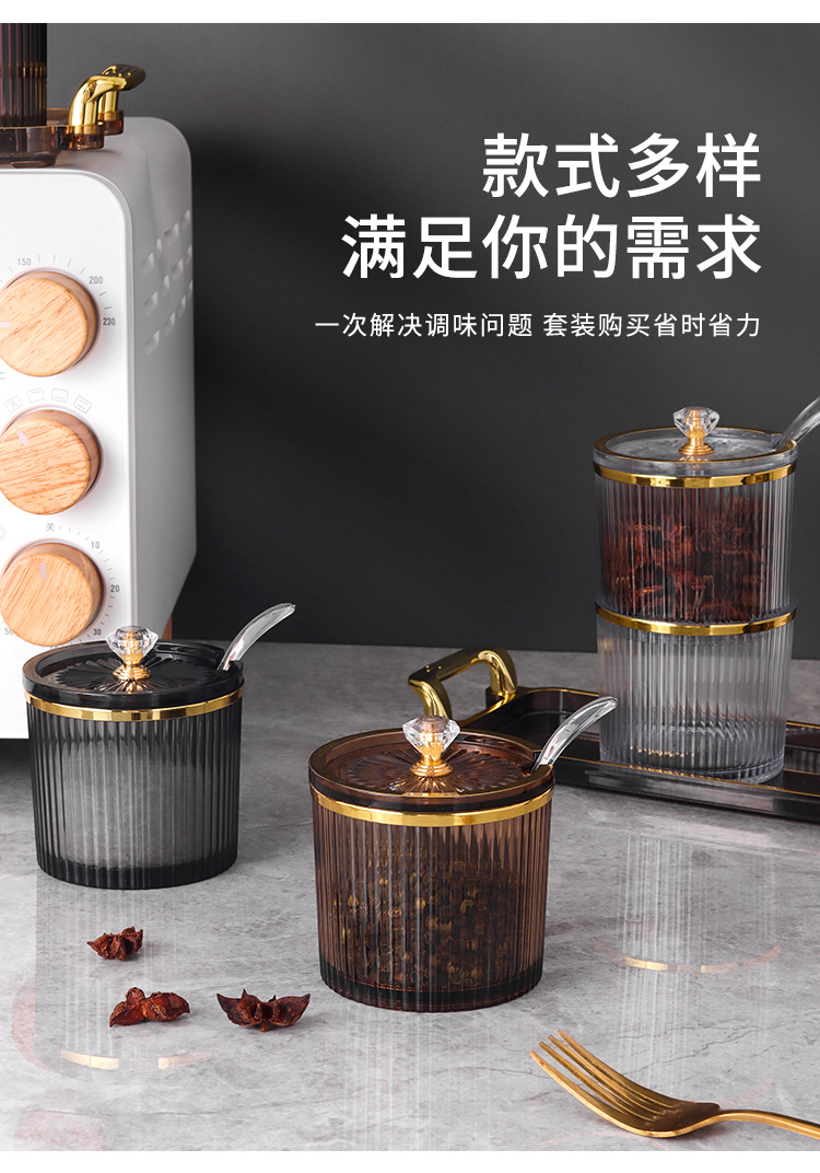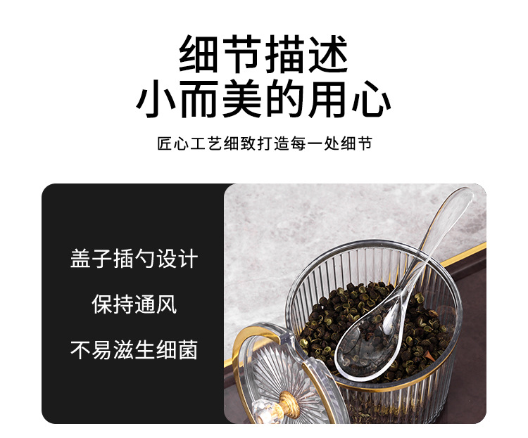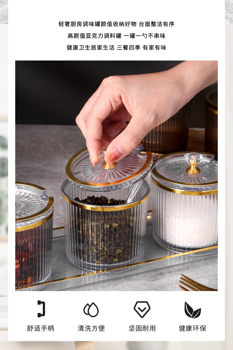 Frasco de sal de condimento de grado alimenticio botella de condimento acrílica sellada caja de condimento a prueba de humedad estante de dispositivo de cubierta de condimento de cocina