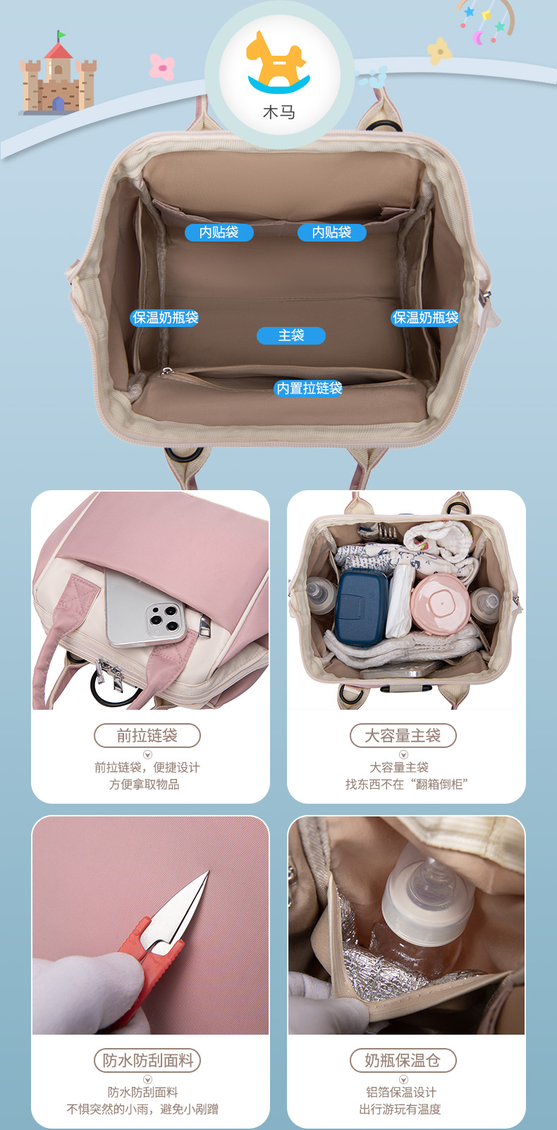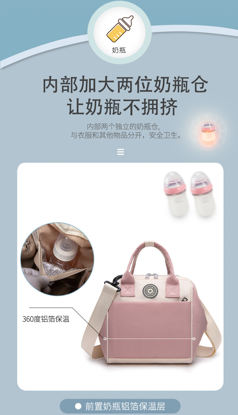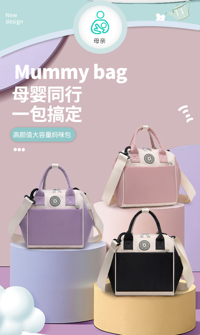 Bolso de mamá de moda de hombro único, bolso de hombro ligero, bolso de hombro en stock, bolso de moda para madres y bebés más joven.
