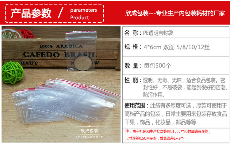 Bolsa sellada engrosada de tamaño pequeño, bolsa sellada, bolsa sellada transparente, bolsa sellada fresca, nueva bolsa de hueso de plástico 4 * 6 cm