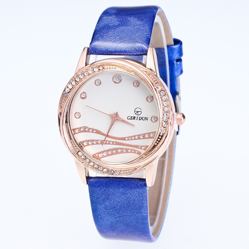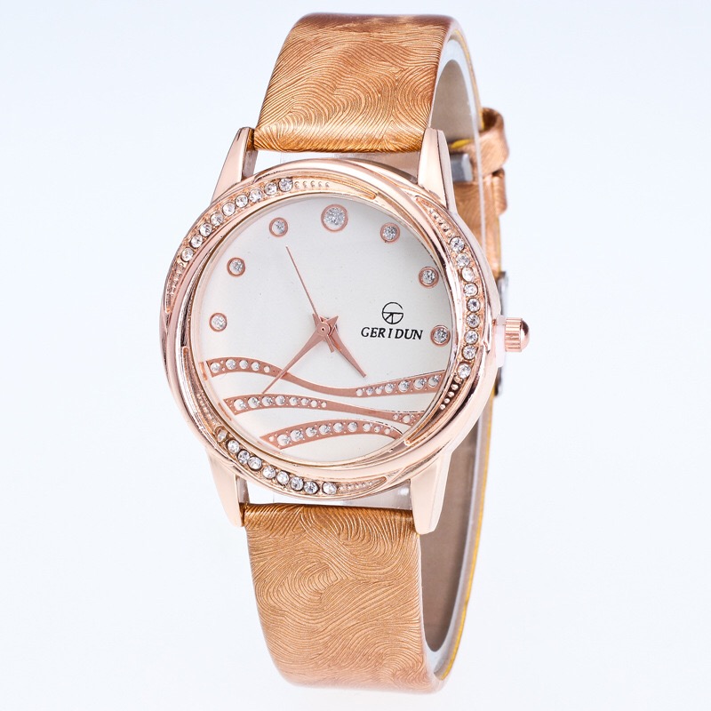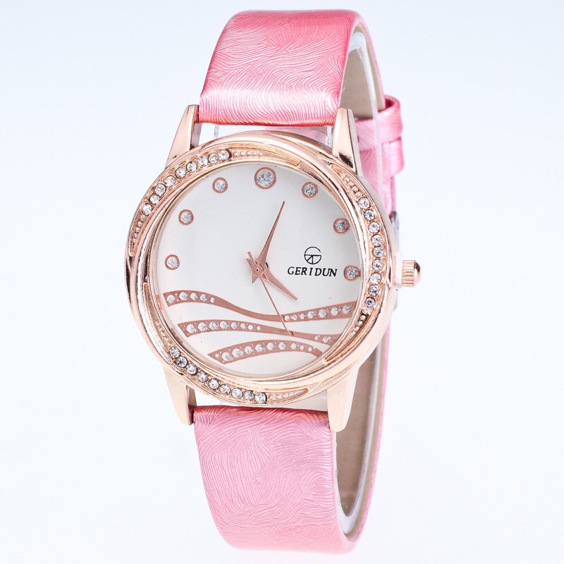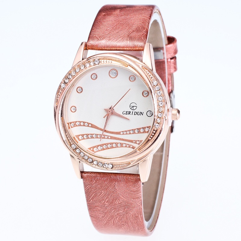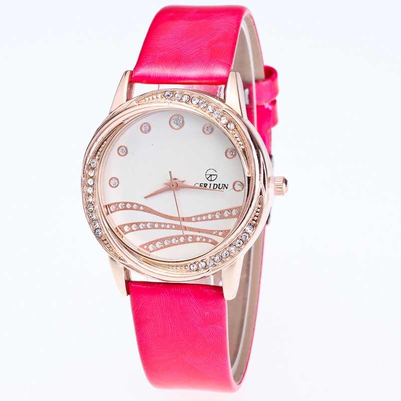 Reloj de perforación ondulado de olas de oro rosa, reloj impermeable de mujer, reloj de estudiante con reloj de perforación