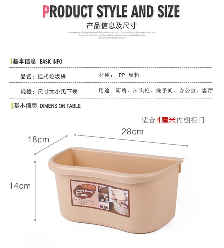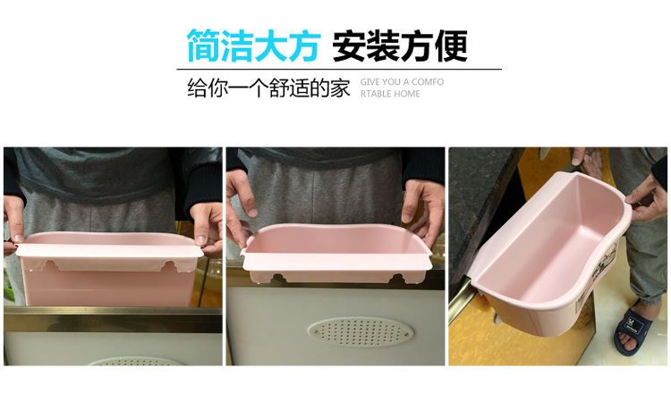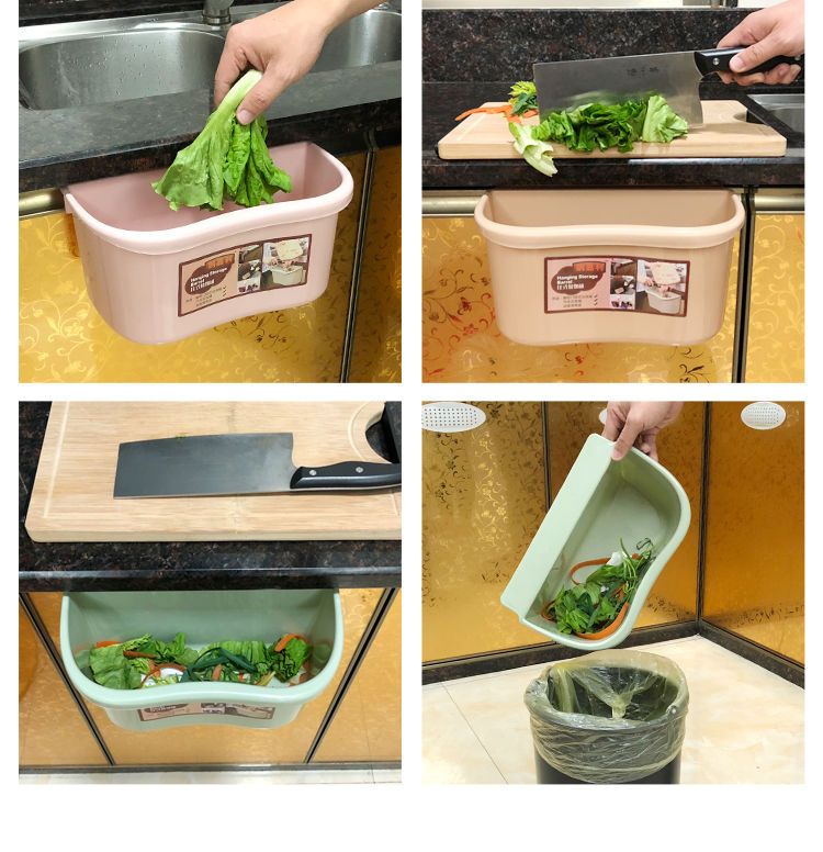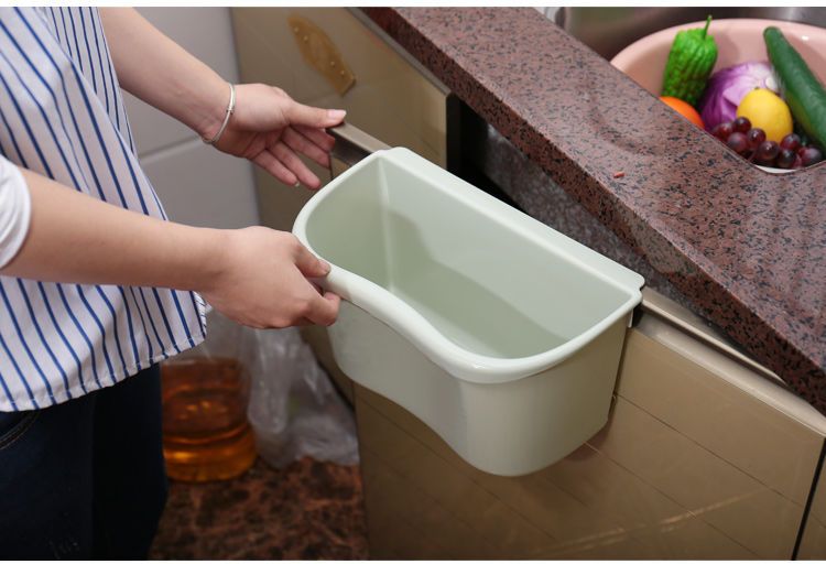 Aumentar 4 centímetros para colgar el borde de la puerta del armario de la cocina, colgar el bote de basura, el hogar creativo cuelga el estante grande para almacenar el cubo de plástico.