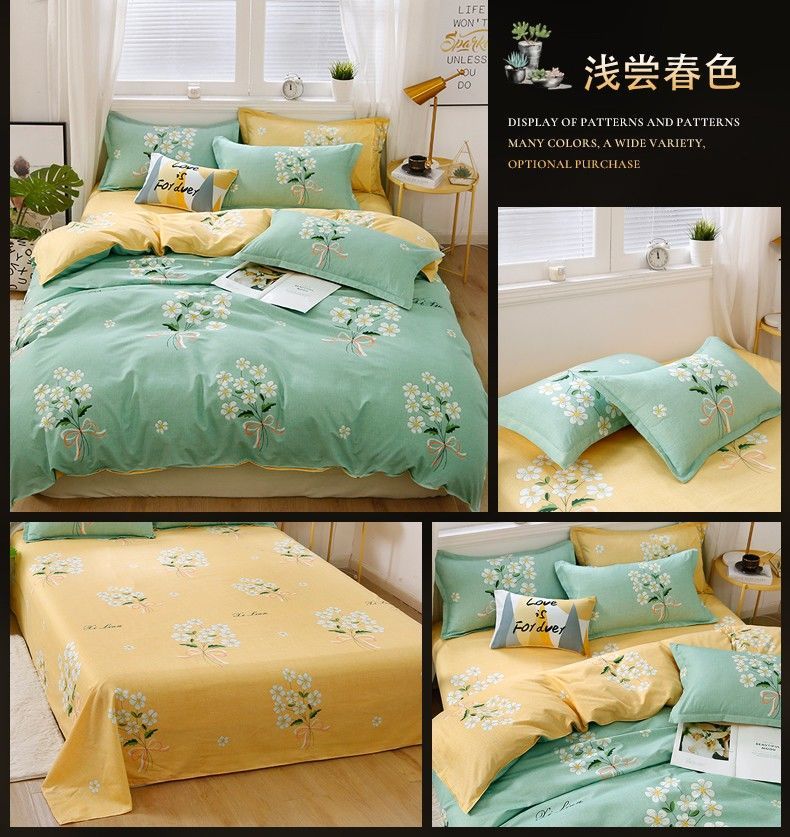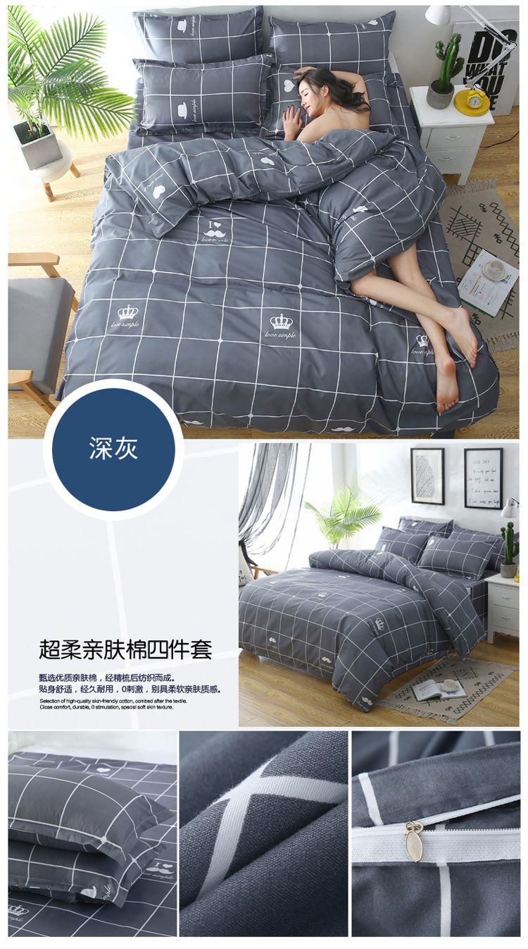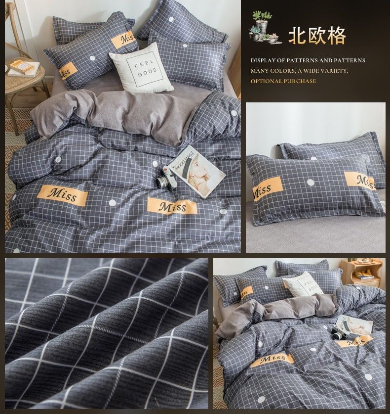 Cuatro juegos de ropa de cama de otoño e invierno de algodón lavado con agua, edredones, camas de dormitorio estudiantil, tres edredones, tres juegos de hombres, cuatro