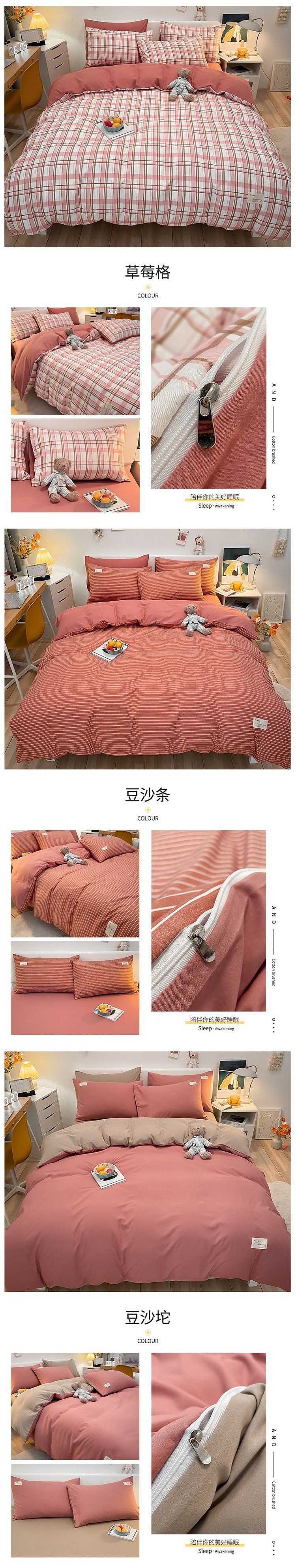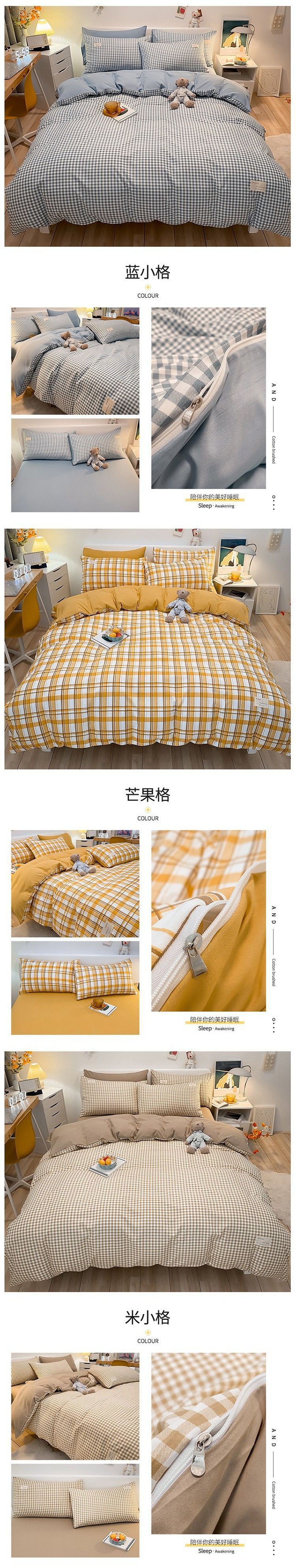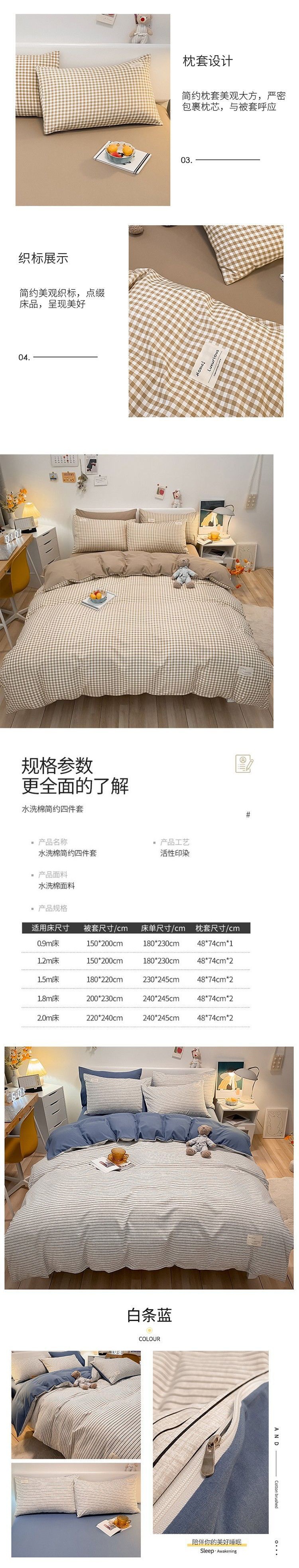 Cuatro juegos de algodón lavado con agua pura, ropa de cama de algodón lavado con agua pura, tres juegos de sábanas, cuatro juegos de edredones en el dormitorio de estudiantes
