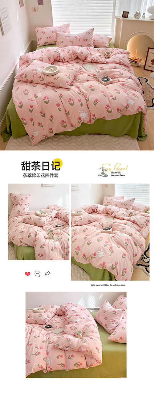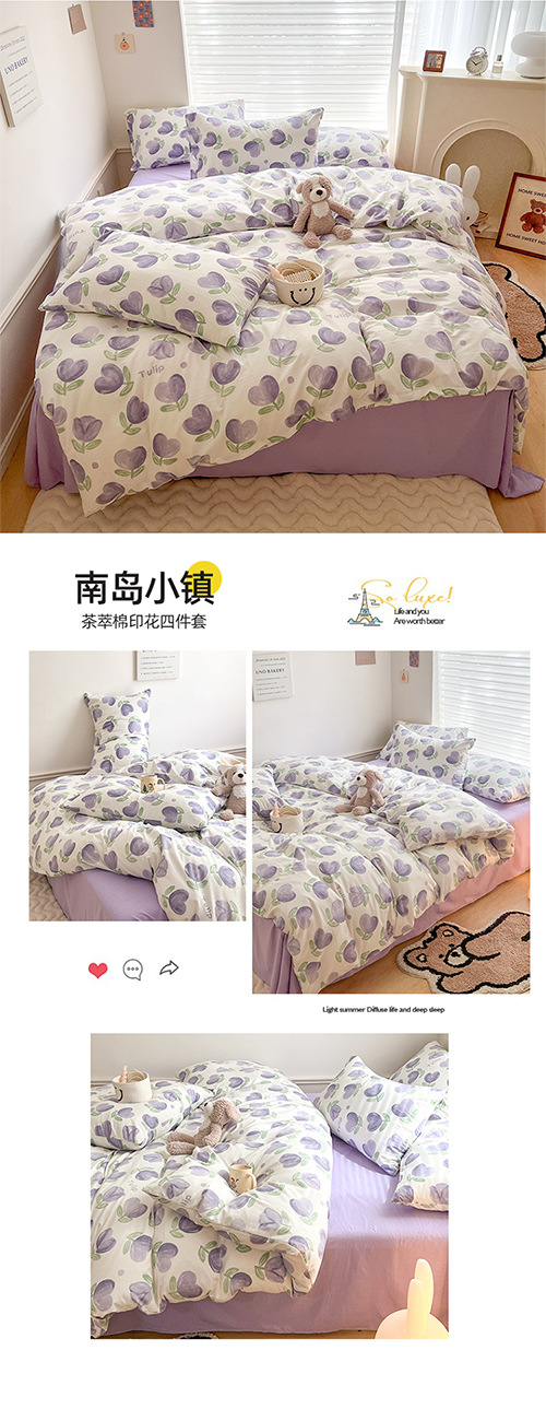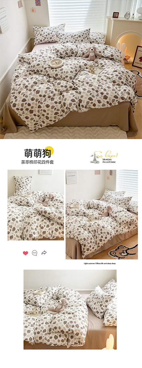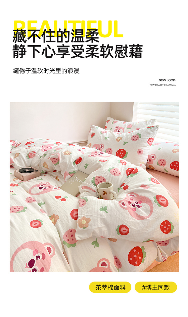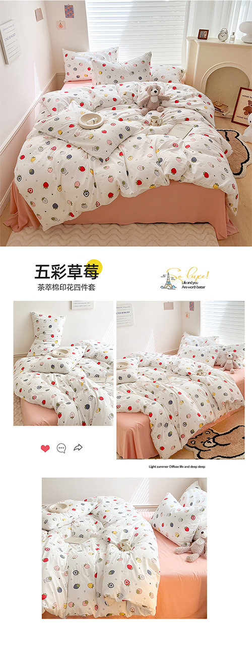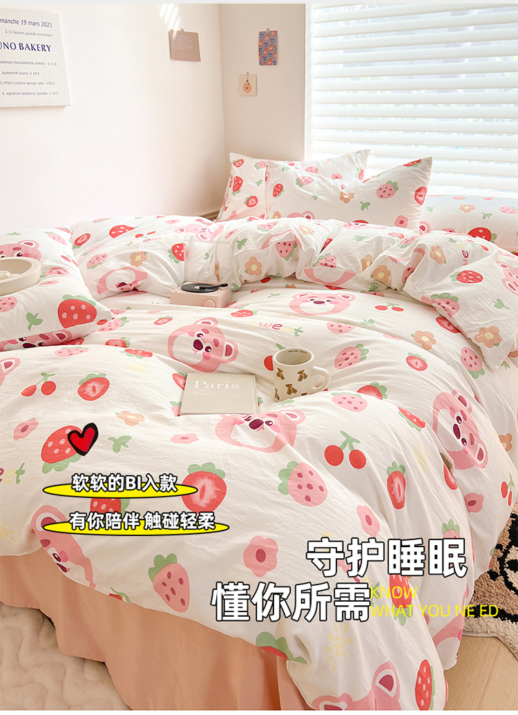 Juego de ropa de cama de cuatro piezas de hilo de doble capa de clase a juego de ropa de cama encantadora de dibujos animados juego de sábanas, edredones, edredones, dormitorios de algodón y lino de tres piezas
