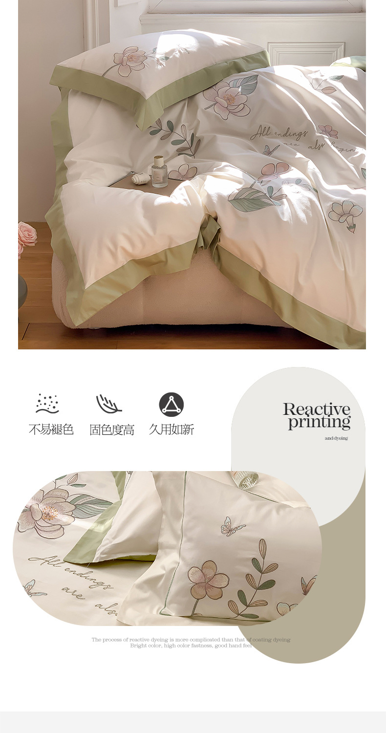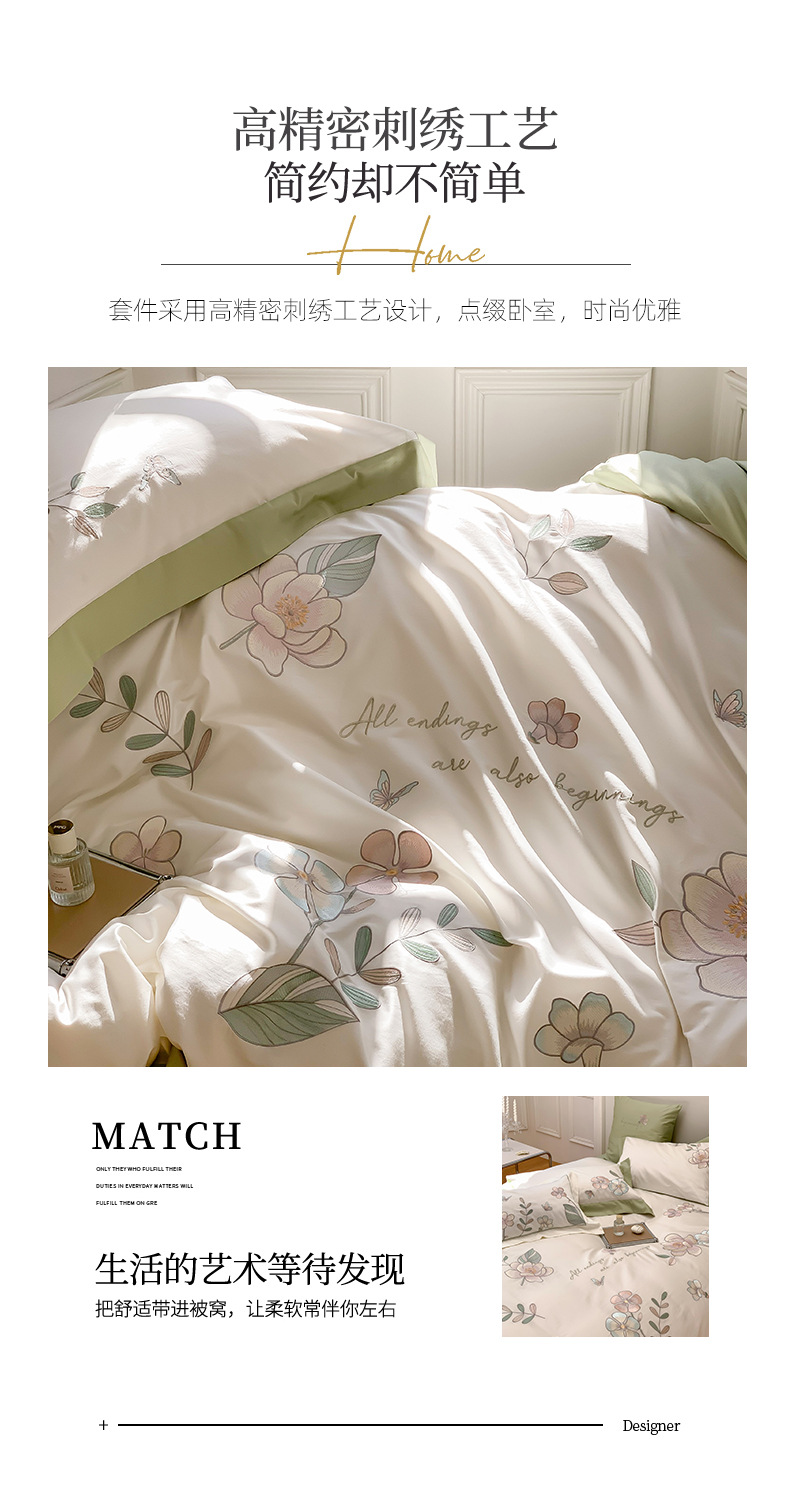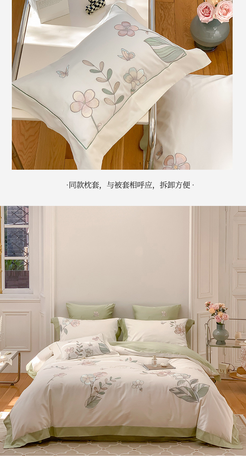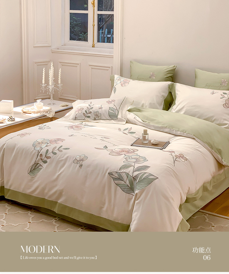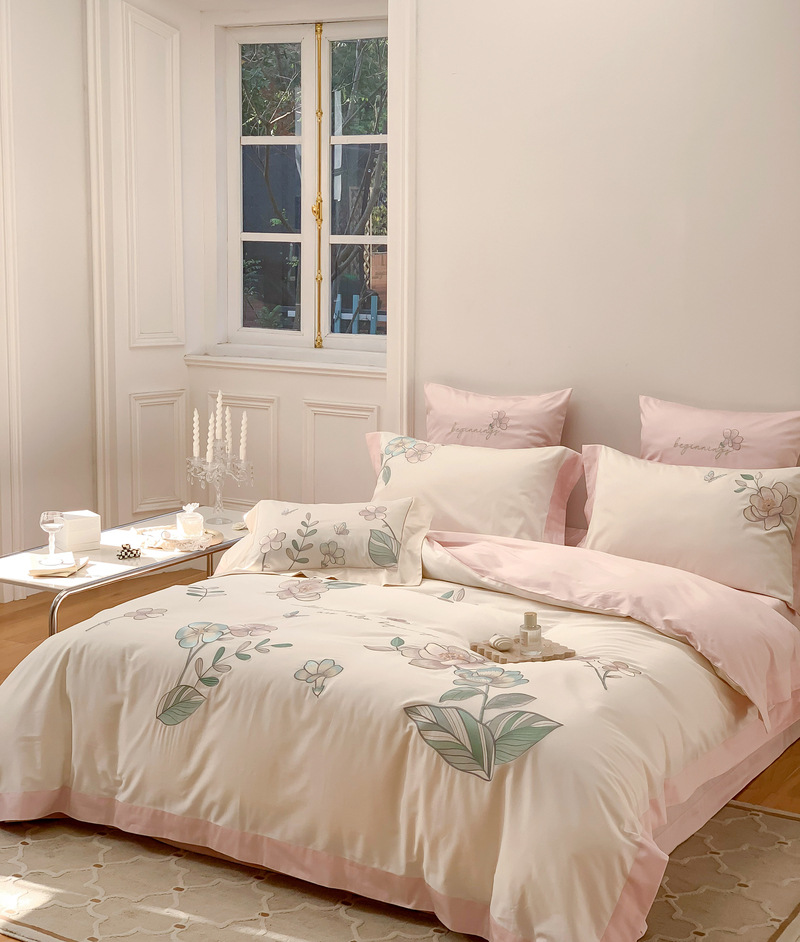 Estilo Pastoral de alta gama 100 algodón de lana larga juego de cuatro piezas algodón puro bordado flores edredones sábanas y ropa de cama