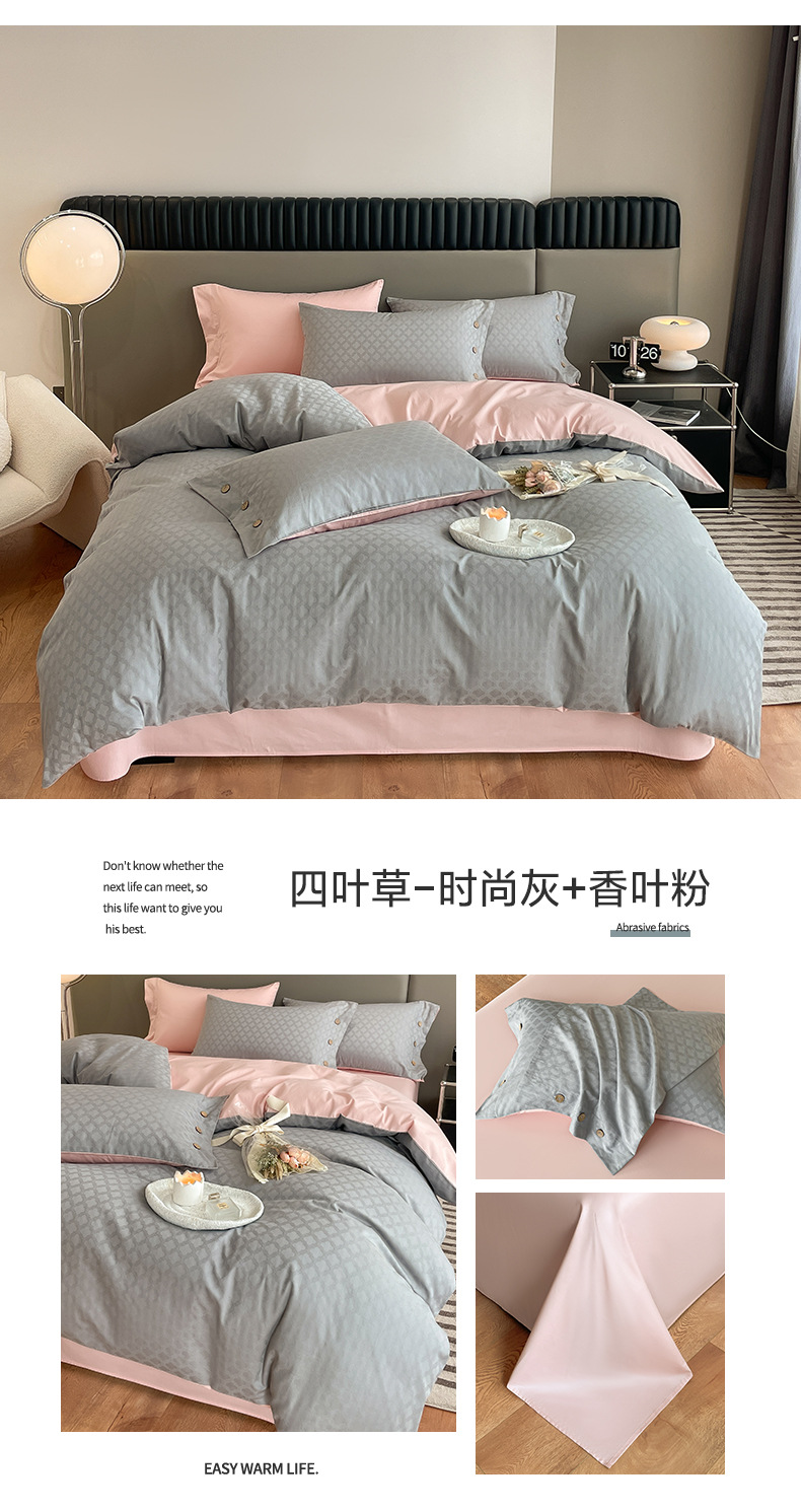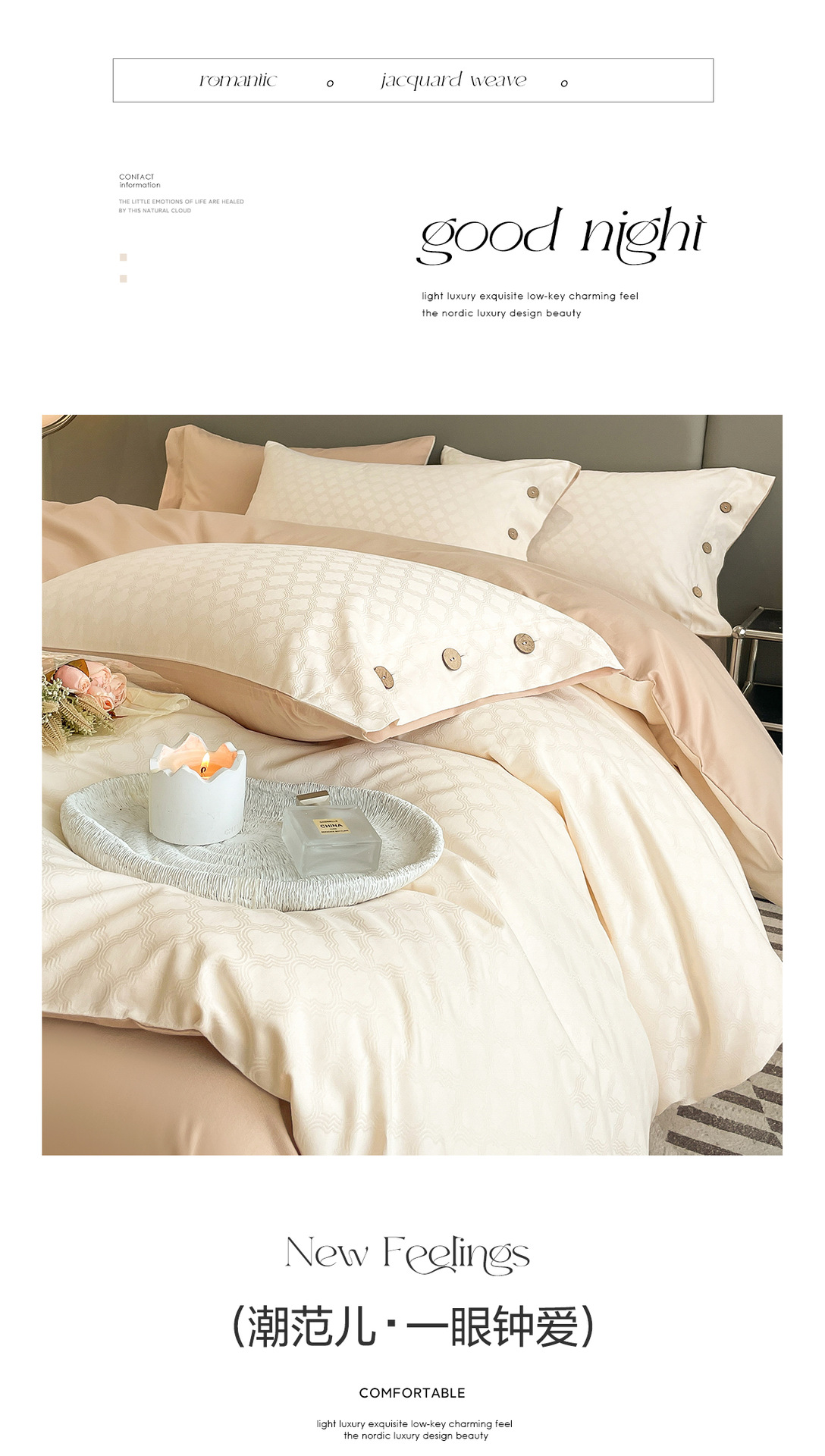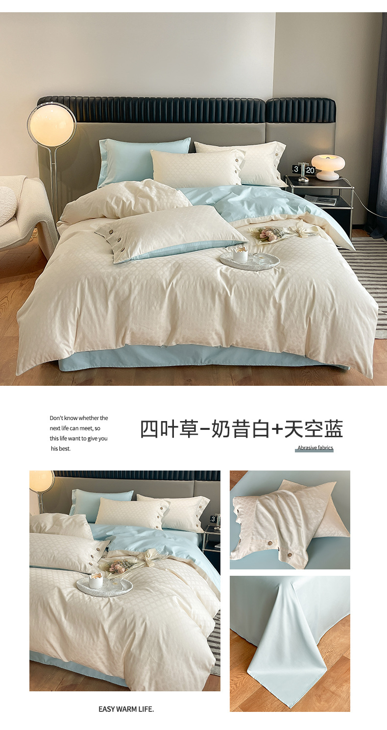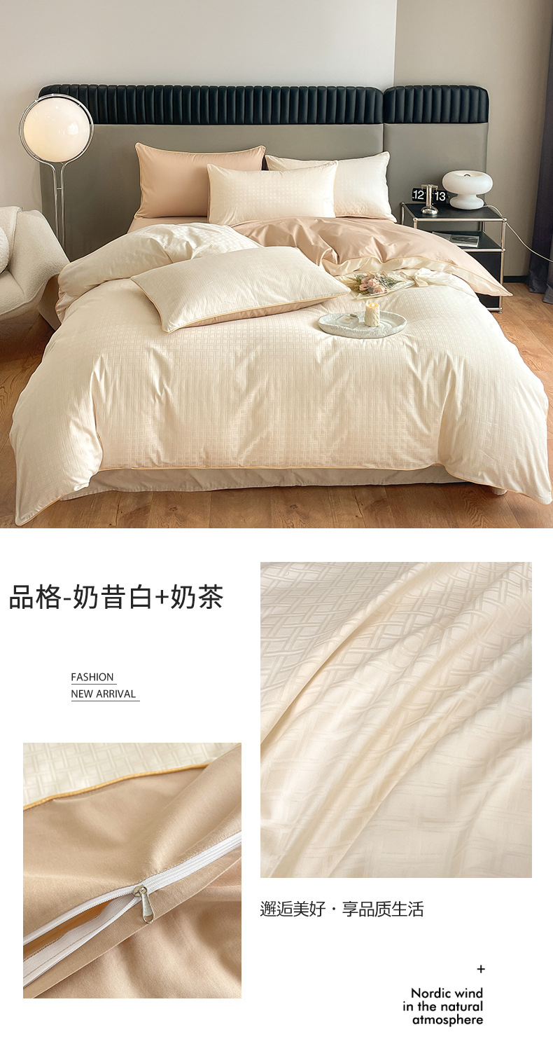 Lujo ligero 120s algodón de lana larga de Xinjiang conjunto de cuatro piezas ropa de cama de algodón puro ropa de cama de satén Jacquard ropa de cama de sábana de hoja