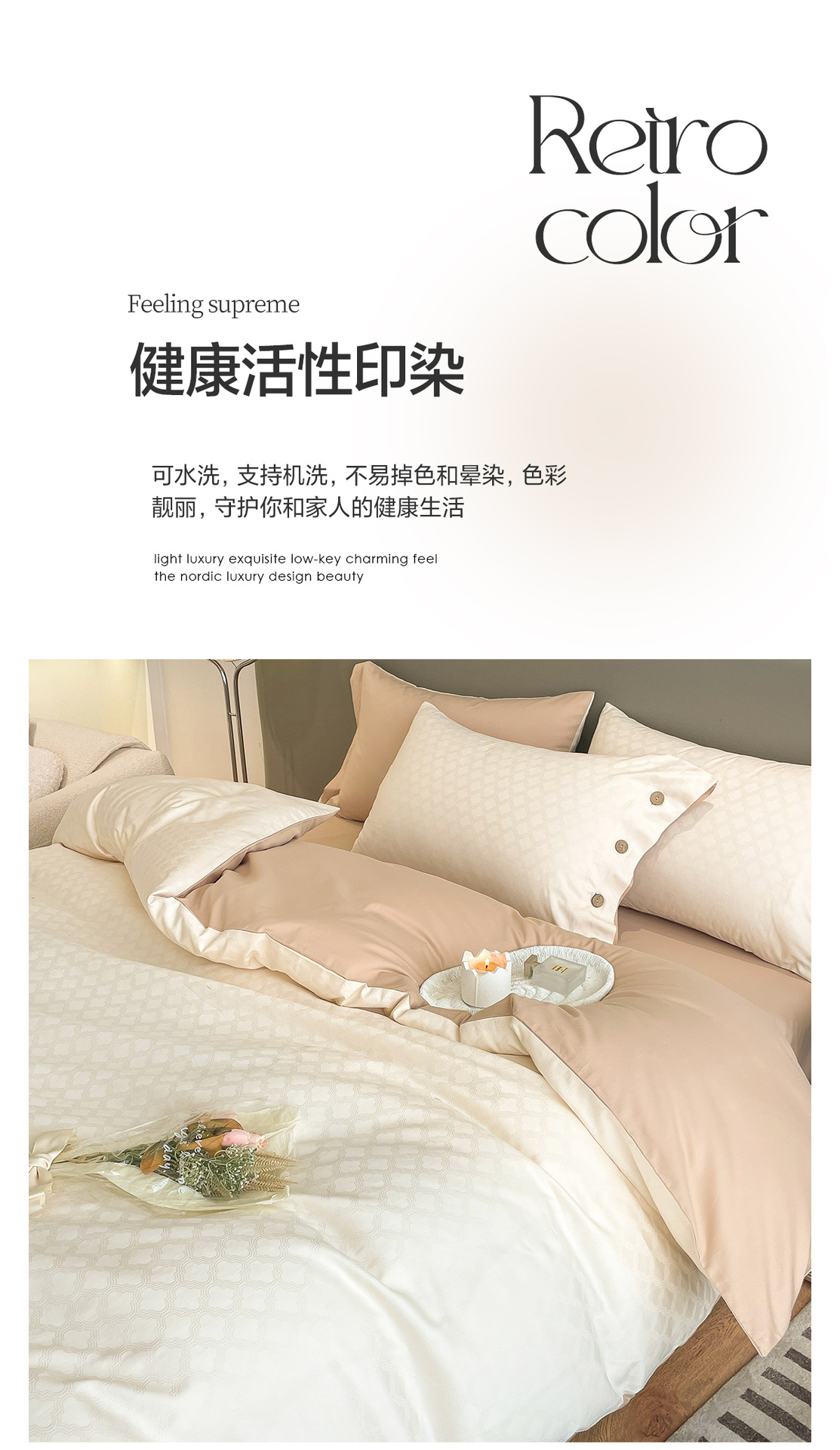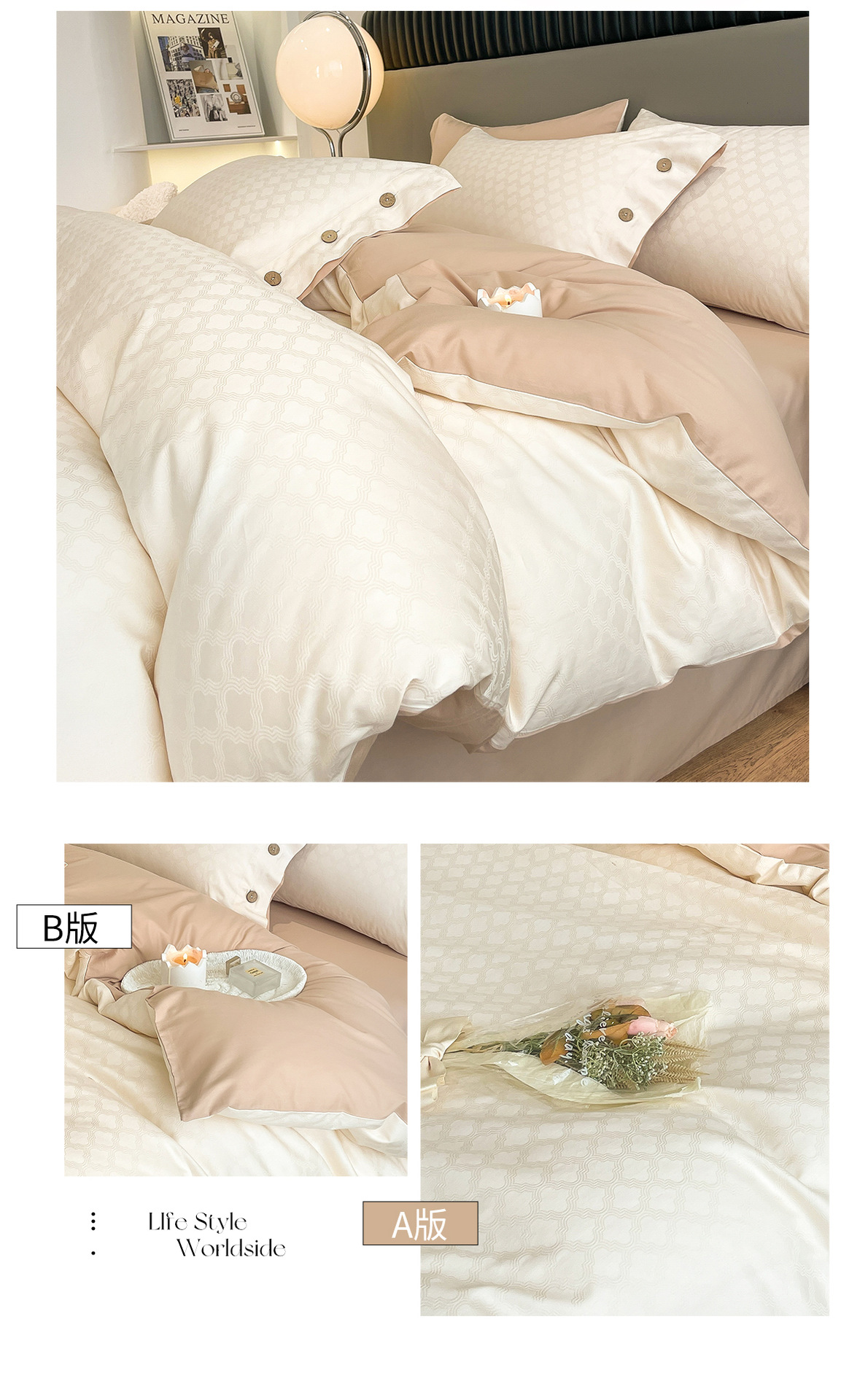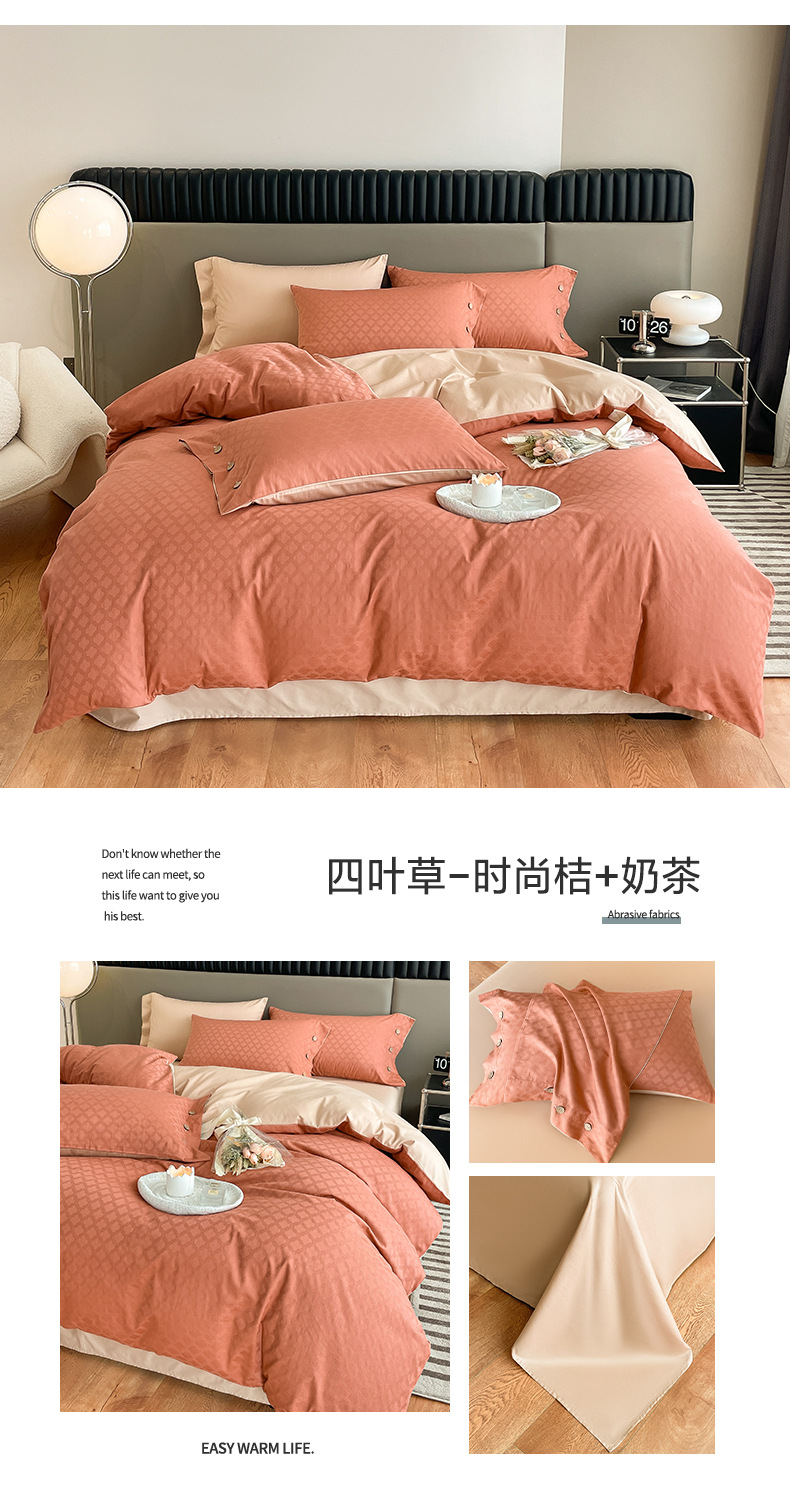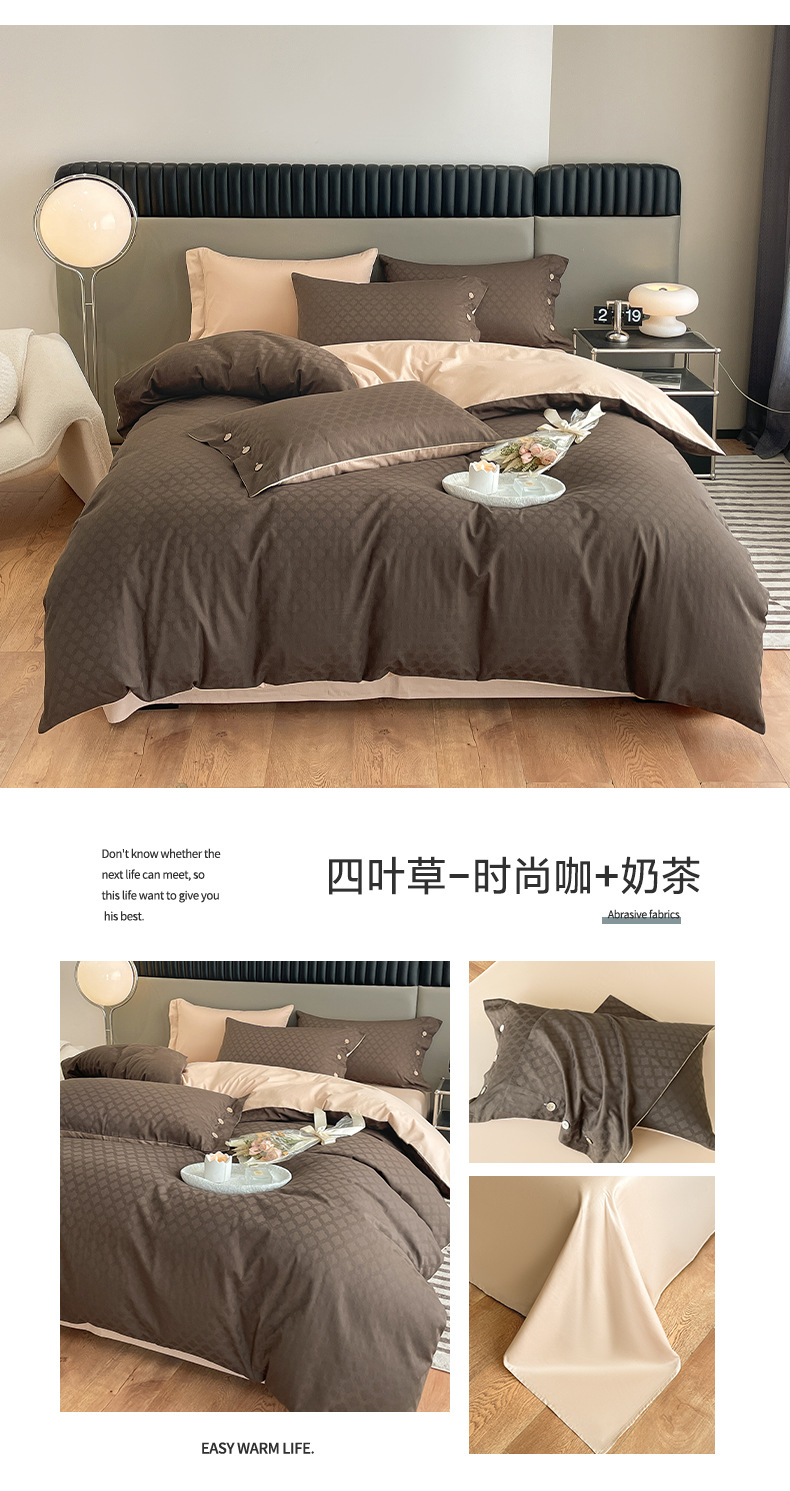 Lujo ligero 120s algodón de lana larga de Xinjiang conjunto de cuatro piezas ropa de cama de algodón puro ropa de cama de satén Jacquard ropa de cama de sábana de hoja