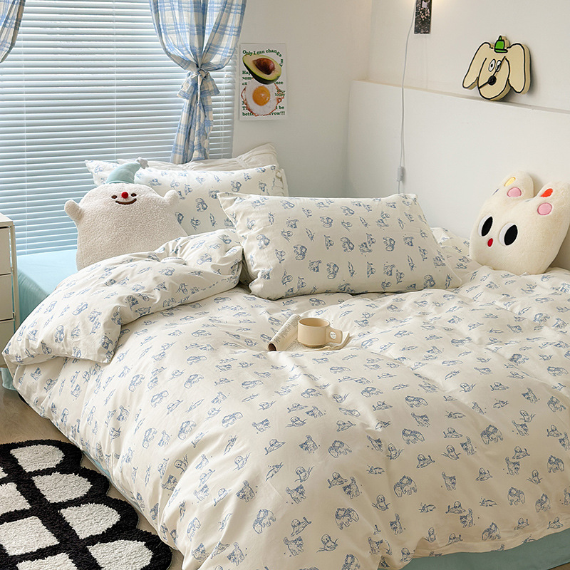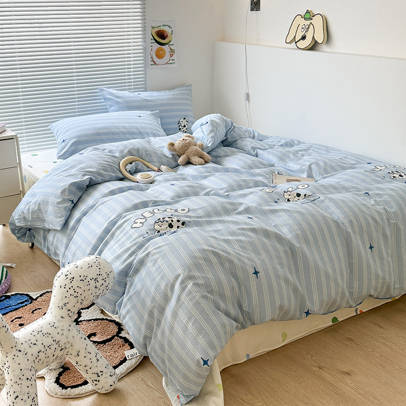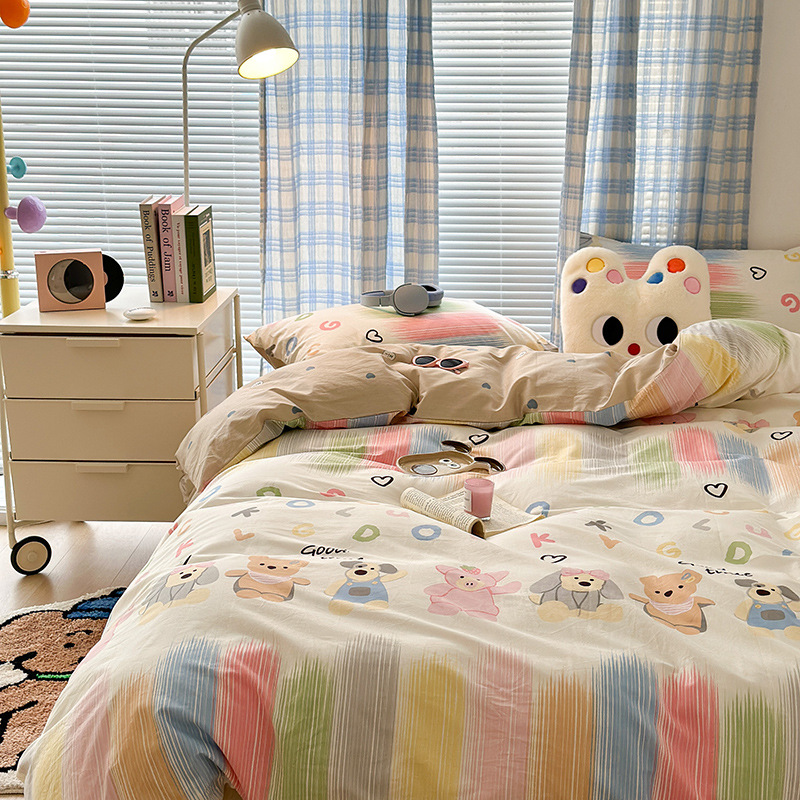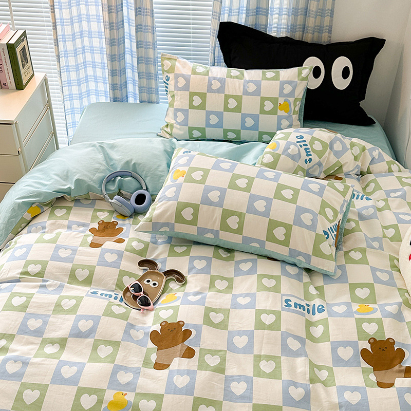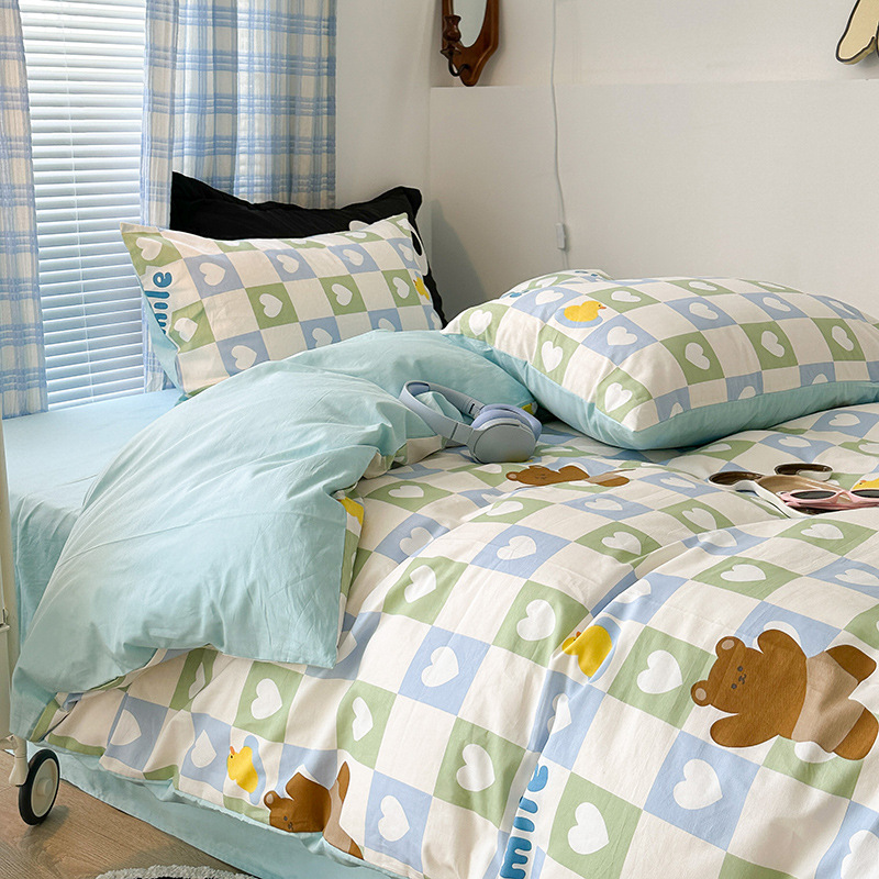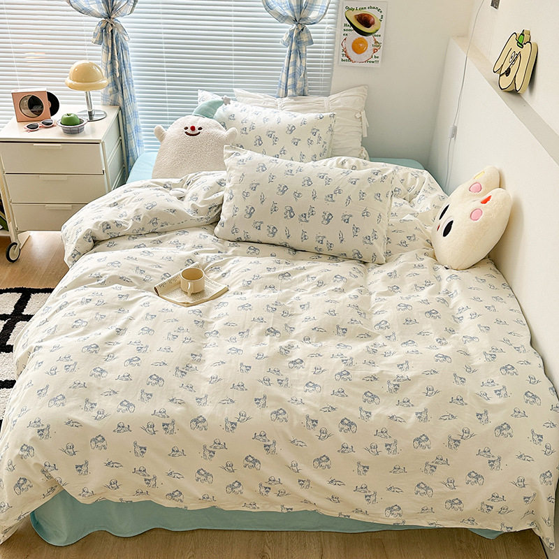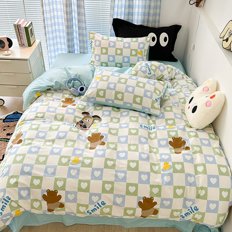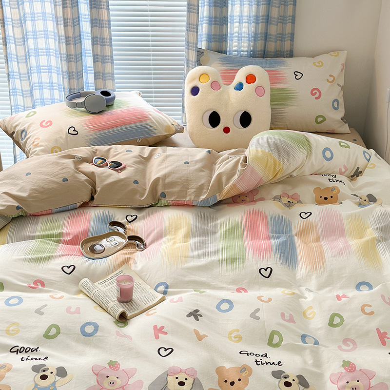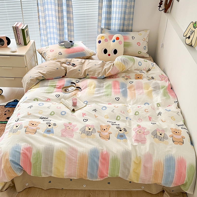 100 juegos de algodón puro de cuatro piezas de dibujos animados de dopamina en la cama del dormitorio estudiantil 3 juegos de sábanas lindas ropa de cama de algodón completo