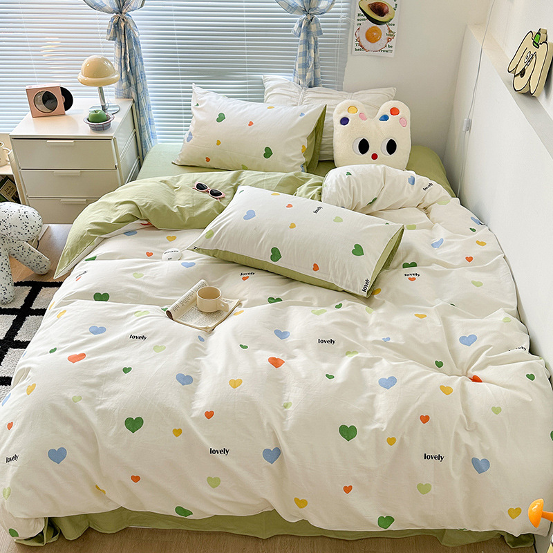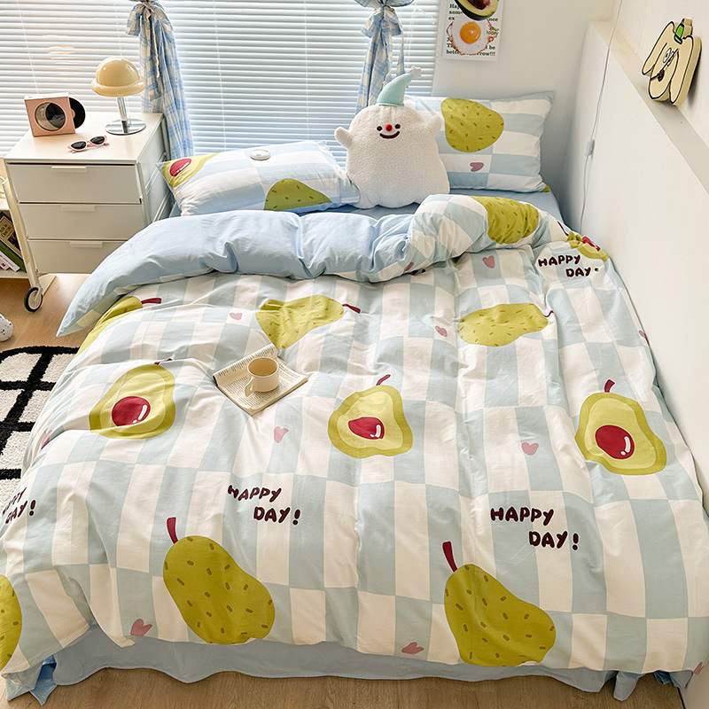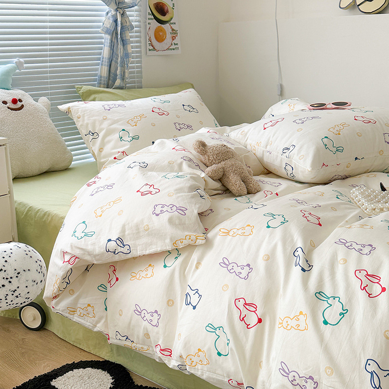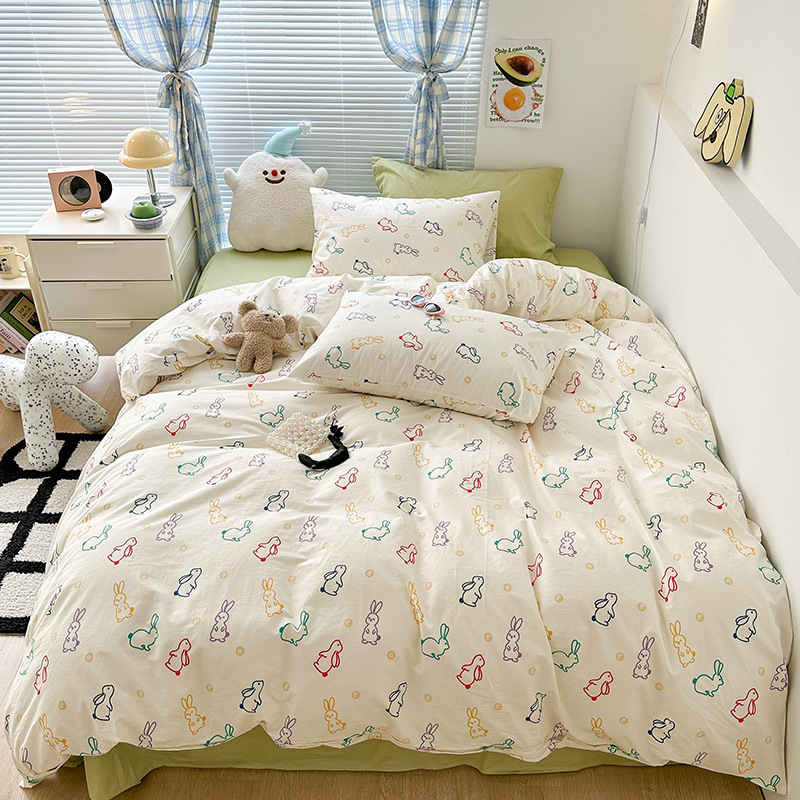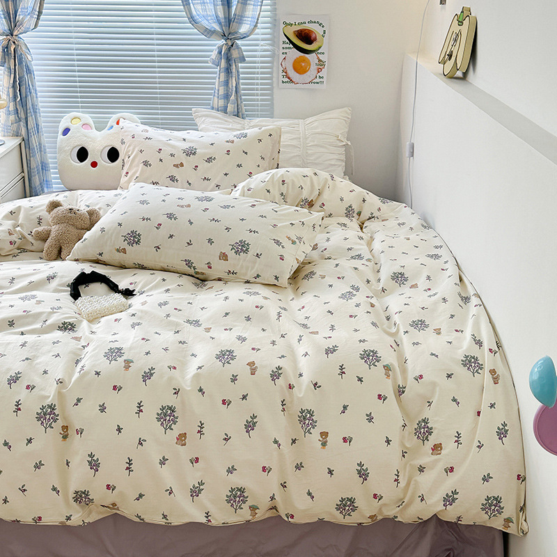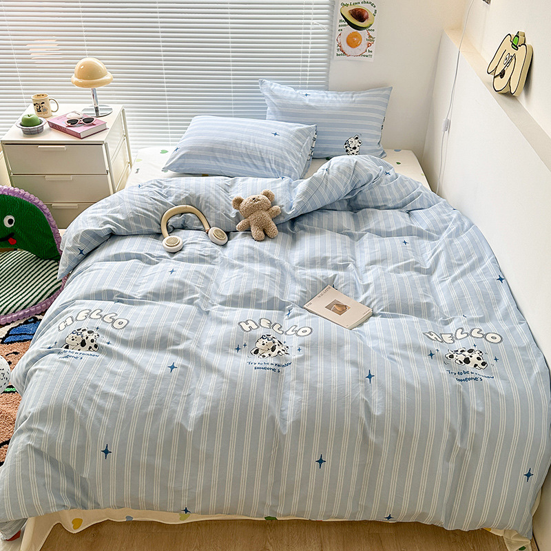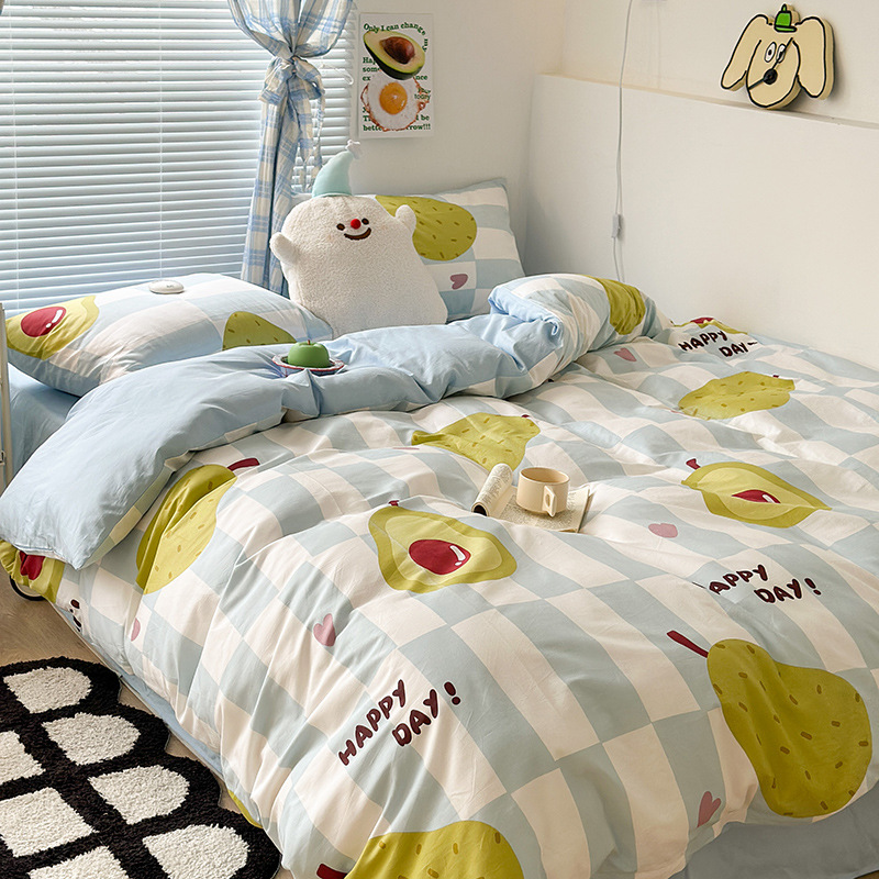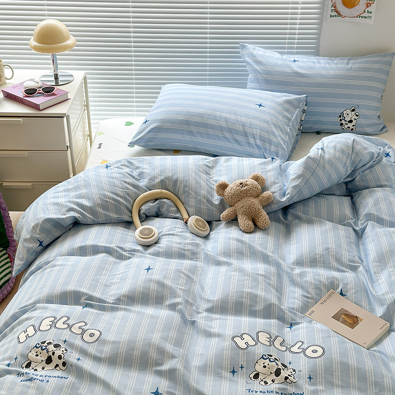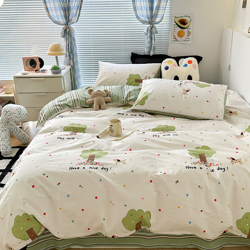 100 juegos de algodón puro de cuatro piezas de dibujos animados de dopamina en la cama del dormitorio estudiantil 3 juegos de sábanas lindas ropa de cama de algodón completo