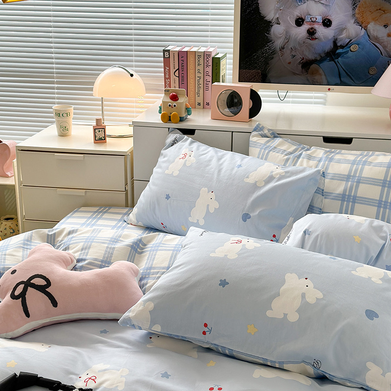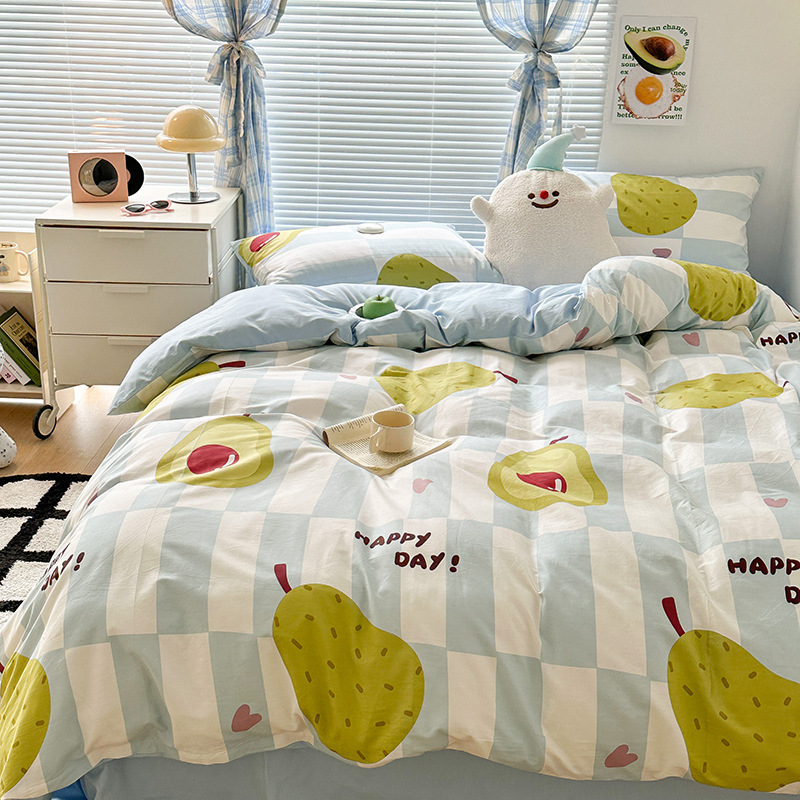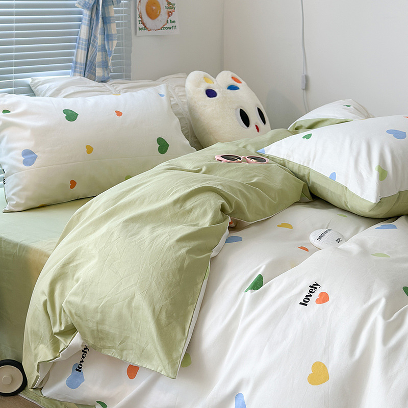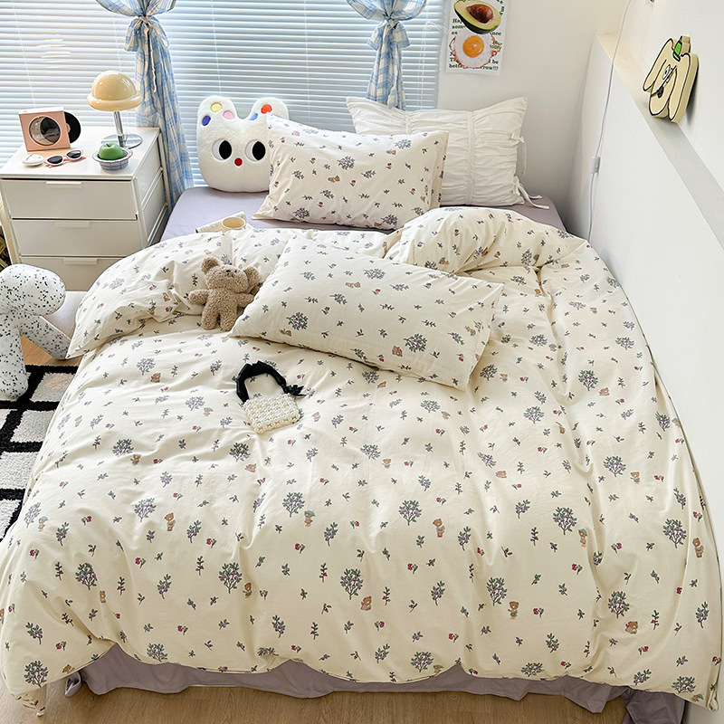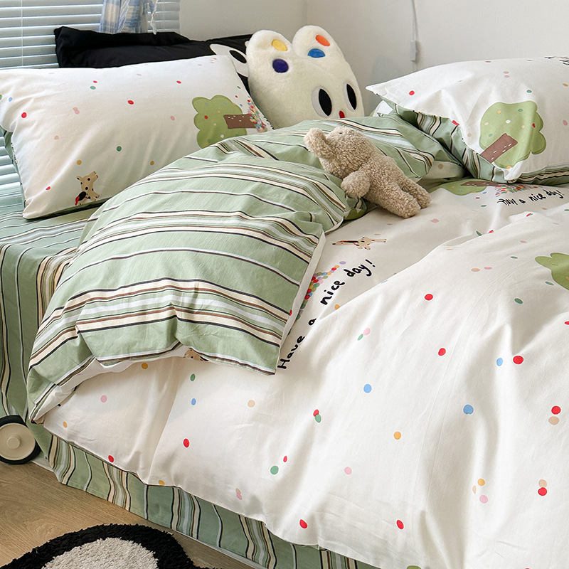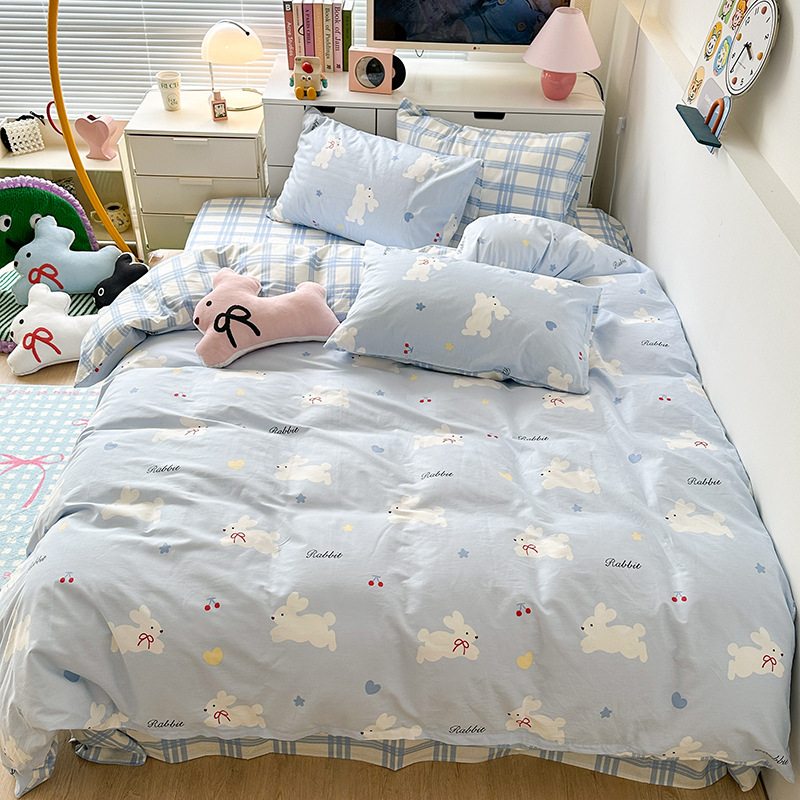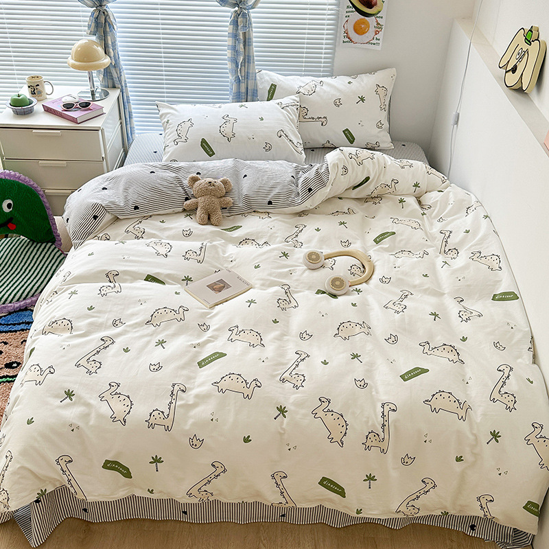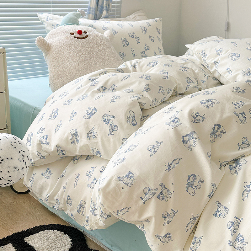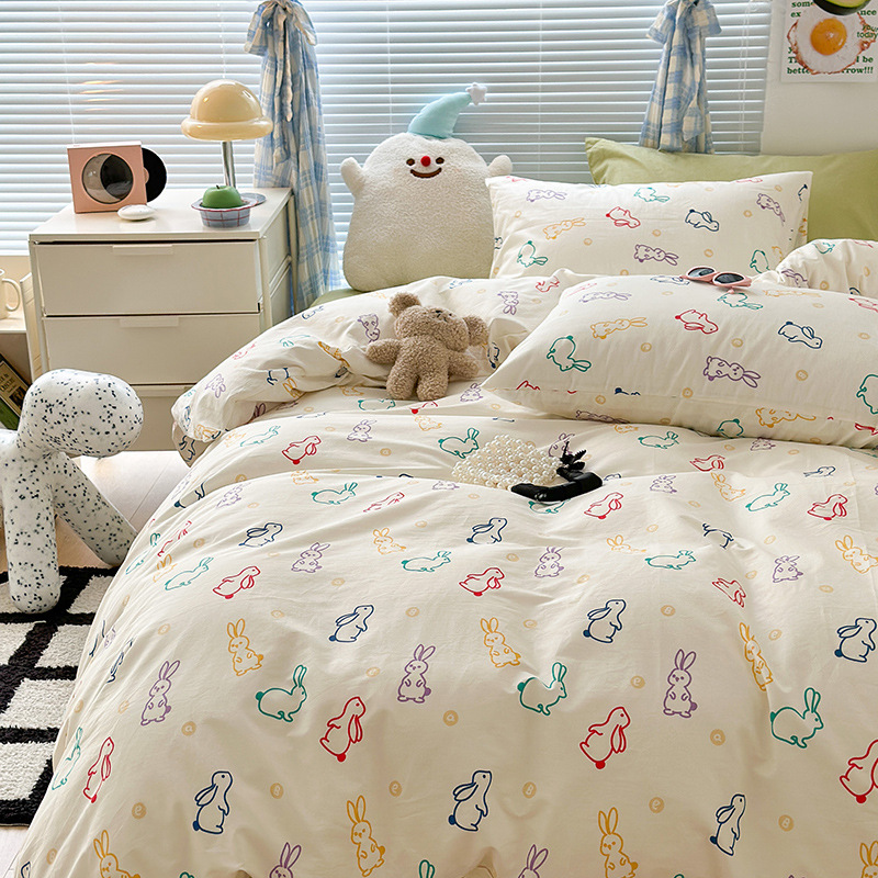 100 juegos de algodón puro de cuatro piezas de dibujos animados de dopamina en la cama del dormitorio estudiantil 3 juegos de sábanas lindas ropa de cama de algodón completo