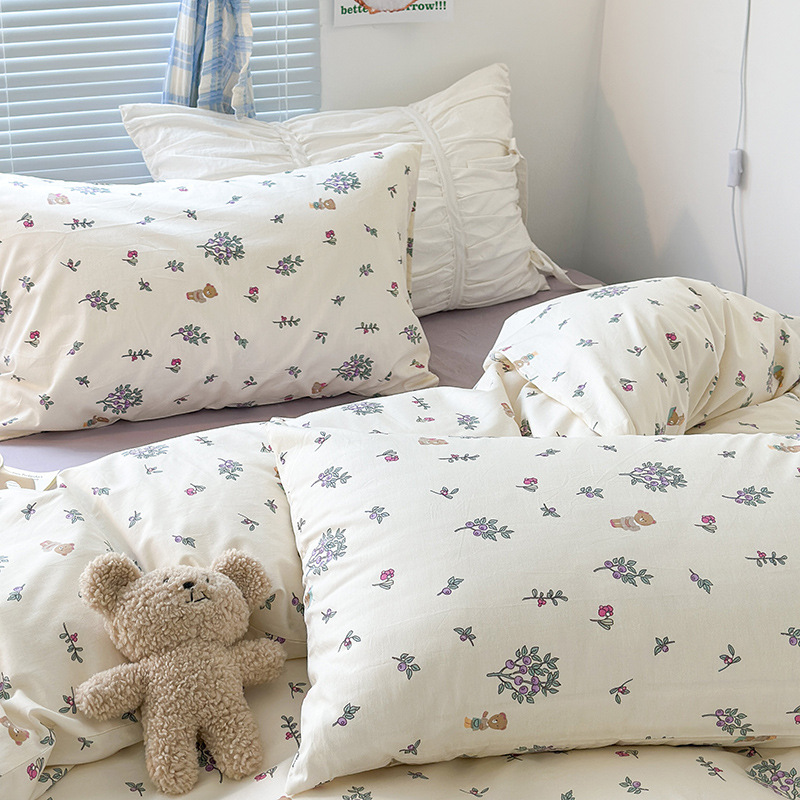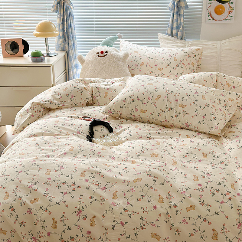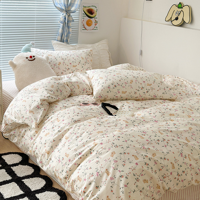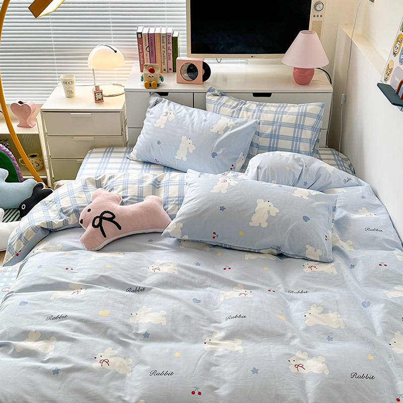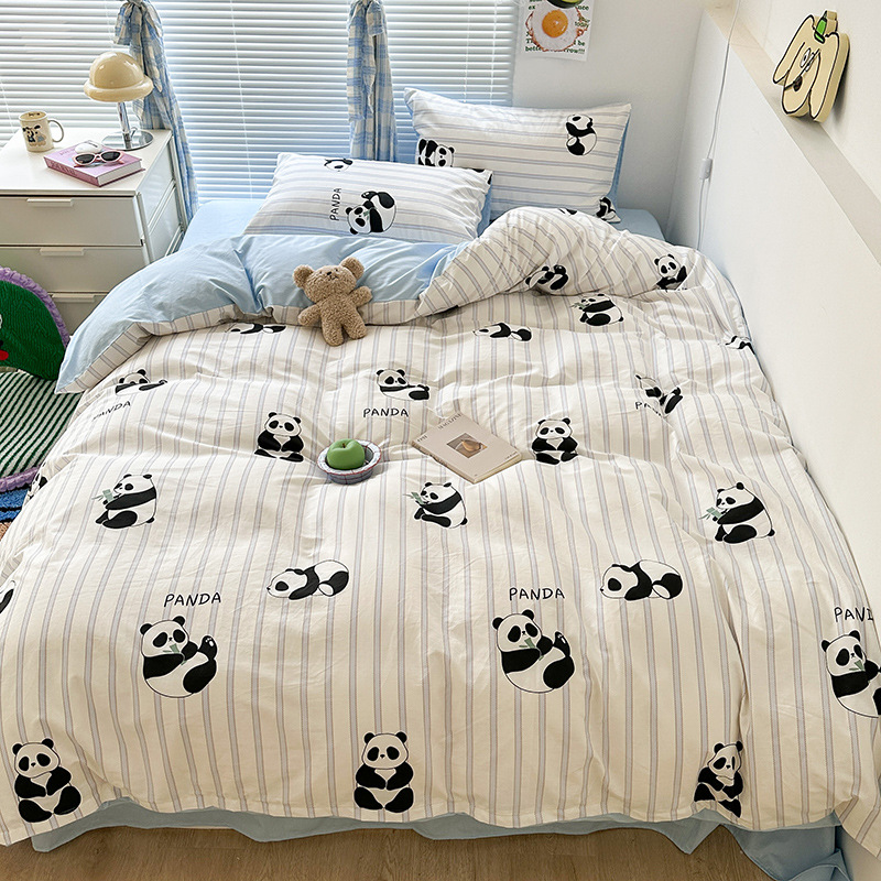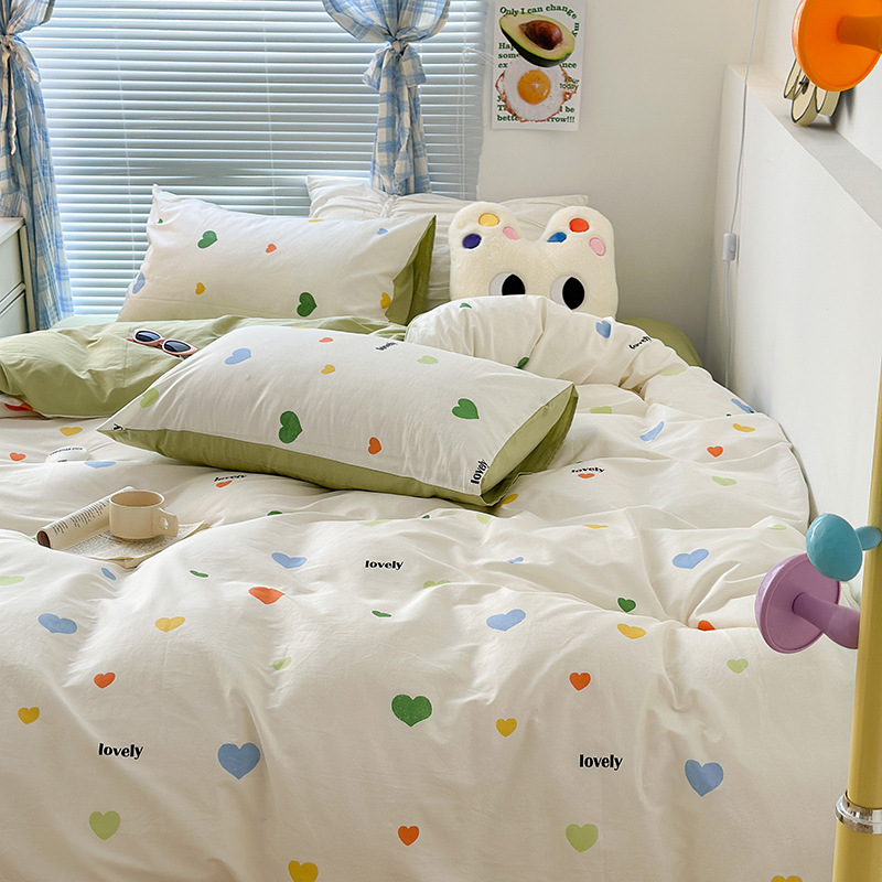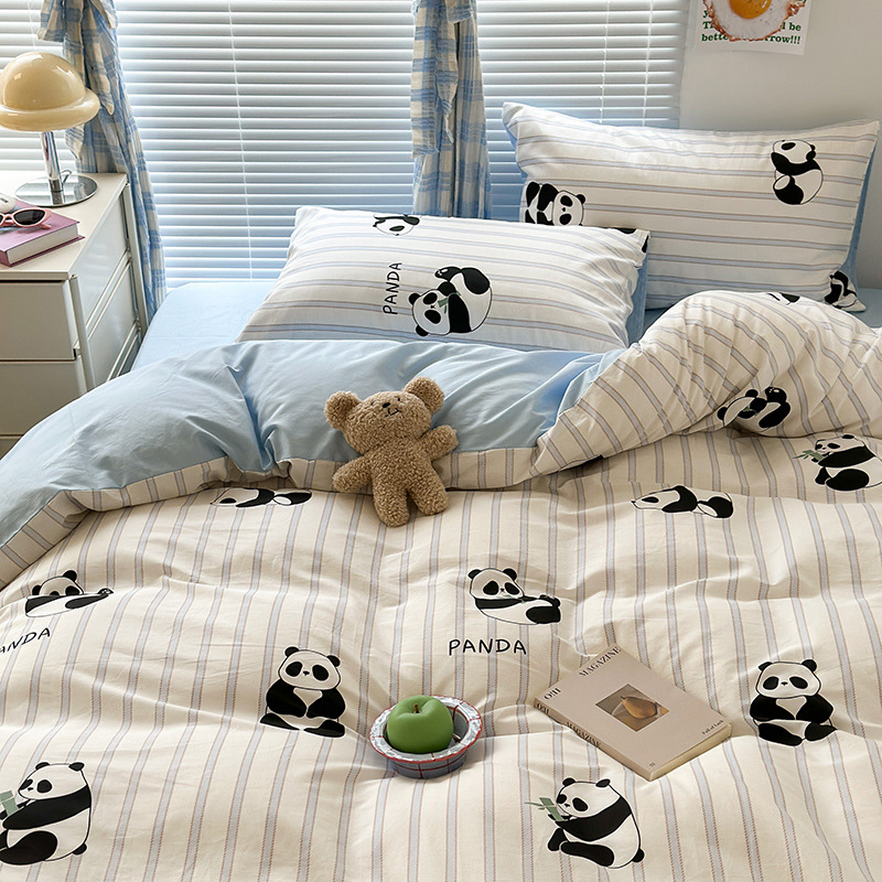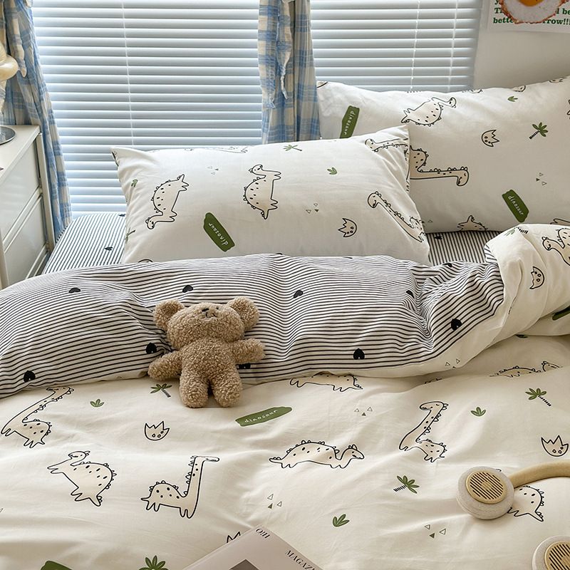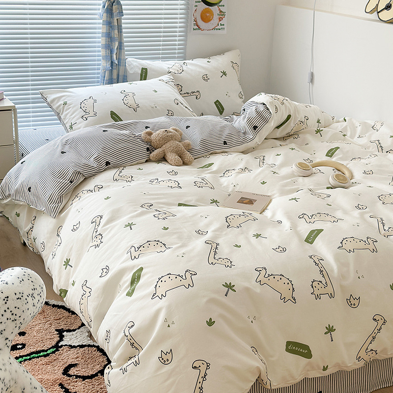 100 juegos de algodón puro de cuatro piezas de dibujos animados de dopamina en la cama del dormitorio estudiantil 3 juegos de sábanas lindas ropa de cama de algodón completo
