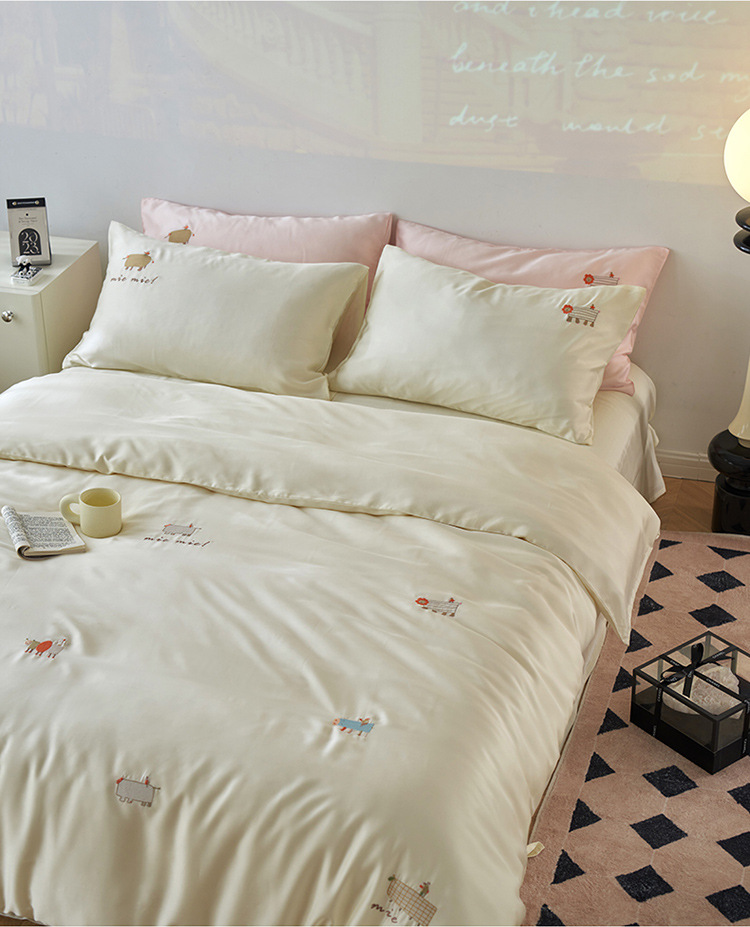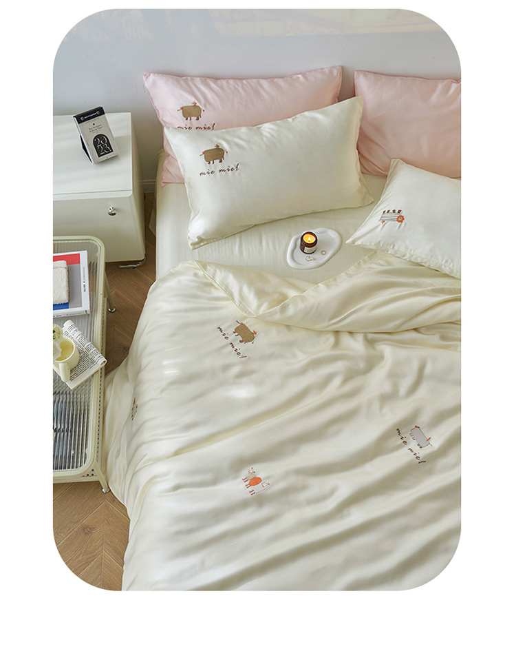 Categoría a 60 orquídeas austríacas tiansi juego de cuatro piezas de bordado de dibujos animados seda de hielo de verano fría sensación de seda resbaladiza ropa de cama