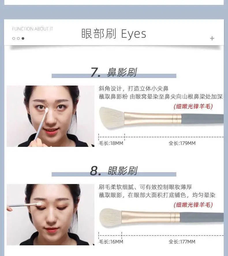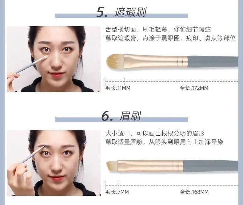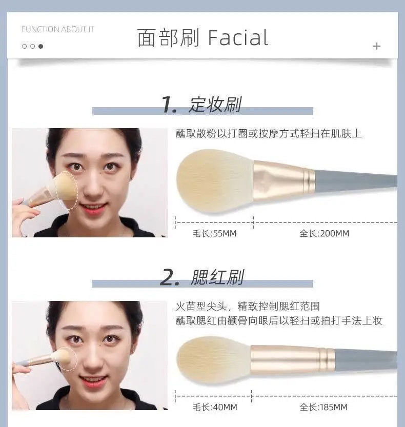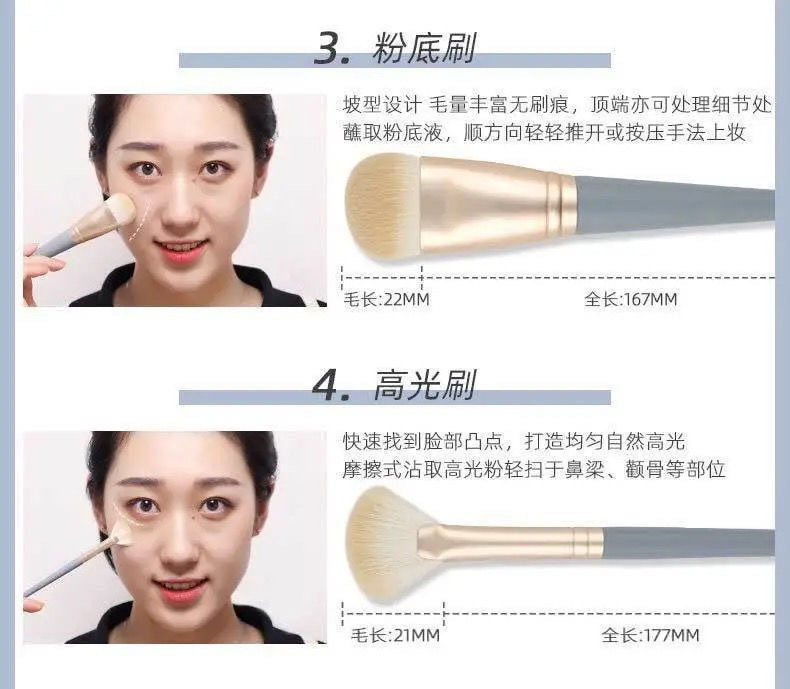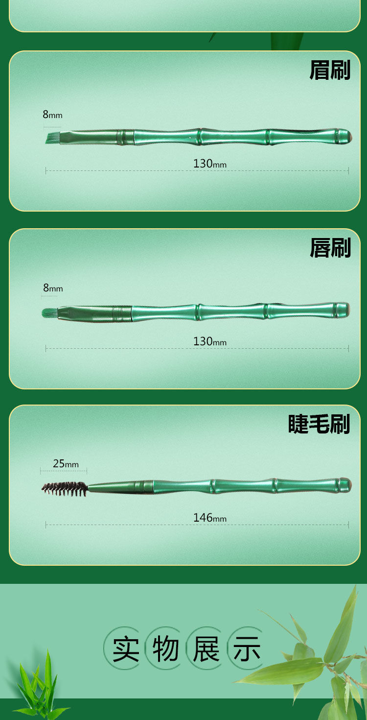 Cepillo de maquillaje, poste de bambú, cepillo de maquillaje, 11 cepillos verdes con mejillas, sombras de ojos, cepillo de cabeza redonda, maquillaje suave