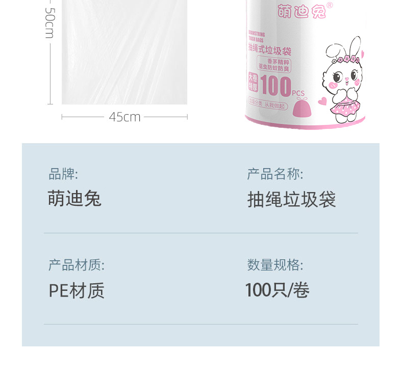 100 bolsas de basura impresas cocina doméstica de alto valor facial desechable con aroma engrosado para aumentar la bolsa de basura de cuerda de extracción