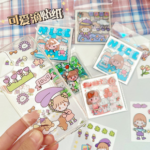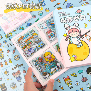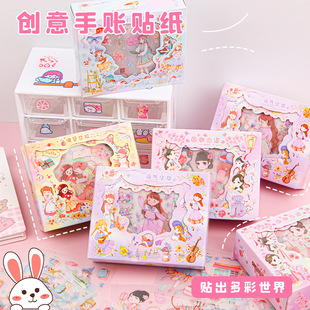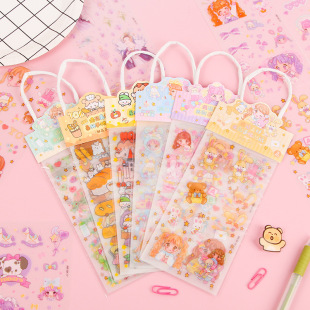 Juego de pegatinas de cuenta de mano 100 juegos de pegatinas de cuenta de mano PET transparentes dibujos animados impermeables sin marcas pegatinas de cuenta de mano pegatinas decorativas de corazón de niña DIY