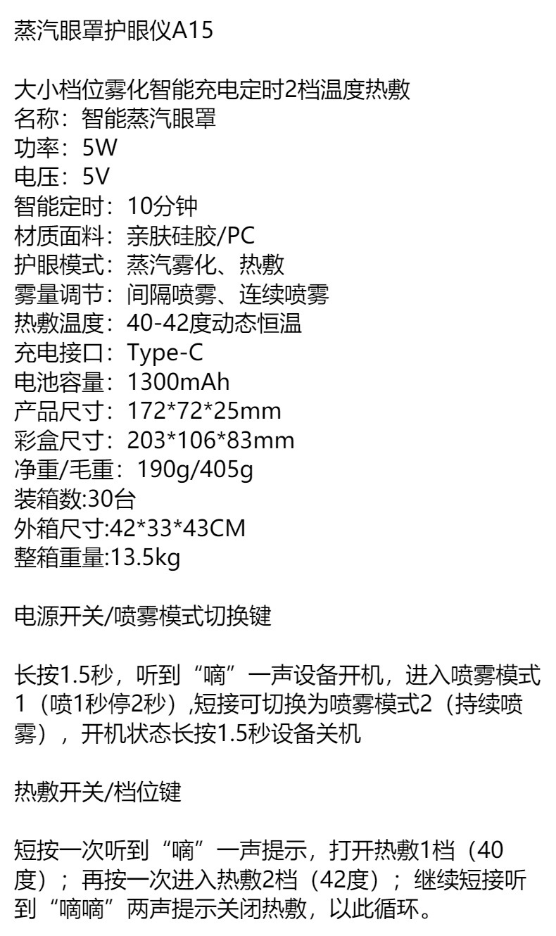 Aparato de masaje ocular vapor compresa caliente humectante ocular aparato de ojos secos Nano atomización ocular protector ocular aparato de fumigación fría y caliente equipo médico