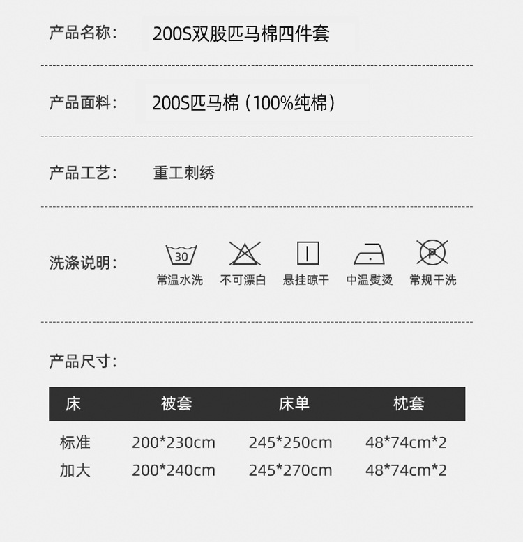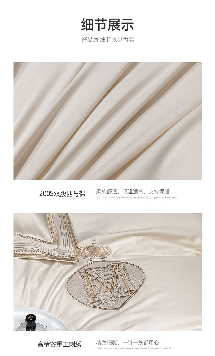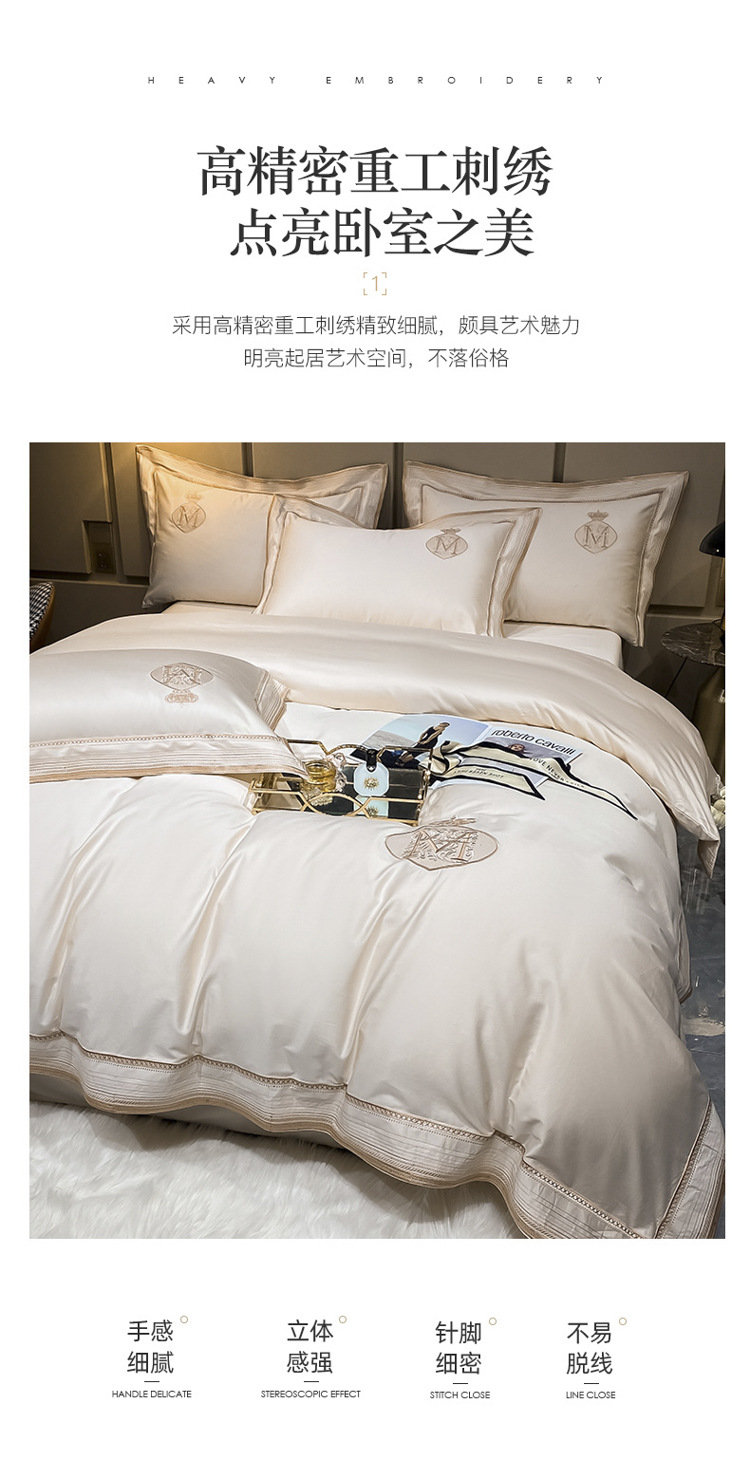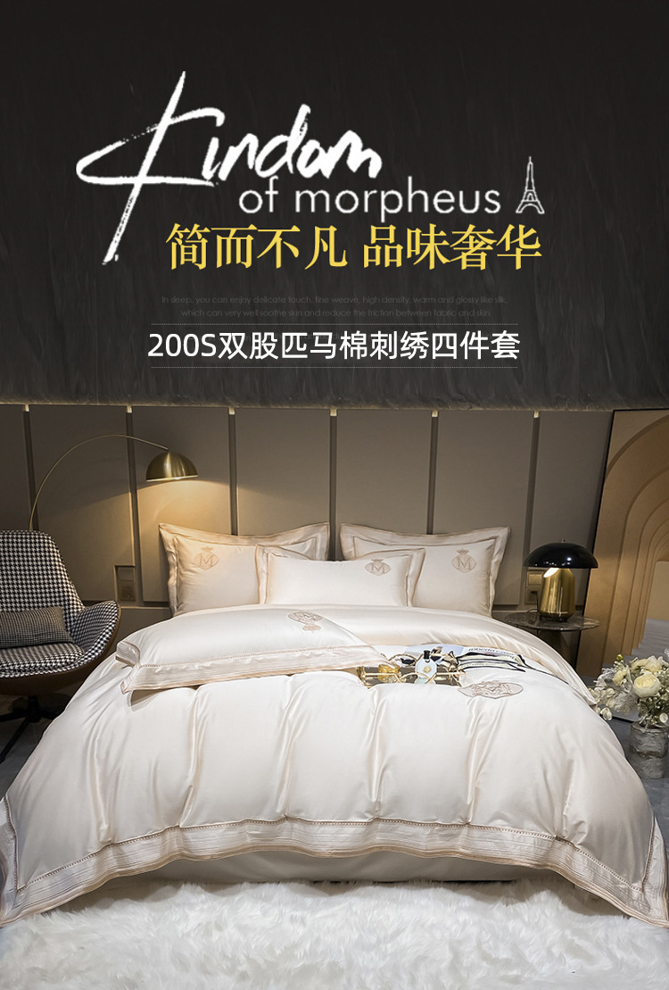 200 caballos de doble acción de alta gama, algodón, cuatro piezas, algodón de lana larga, 100 edredones de algodón, sábanas, ropa de cama de lujo ligero