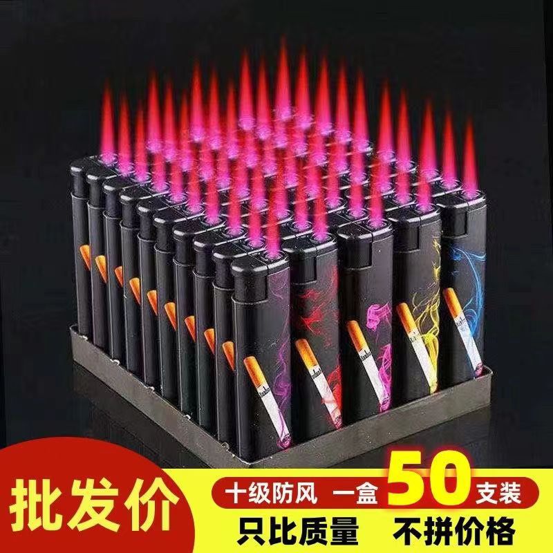 50 encendedores engrosados a prueba de viento, plásticos electrónicos al por mayor duraderos, encendedores desechables al por menor a prueba de explosiones domésticos