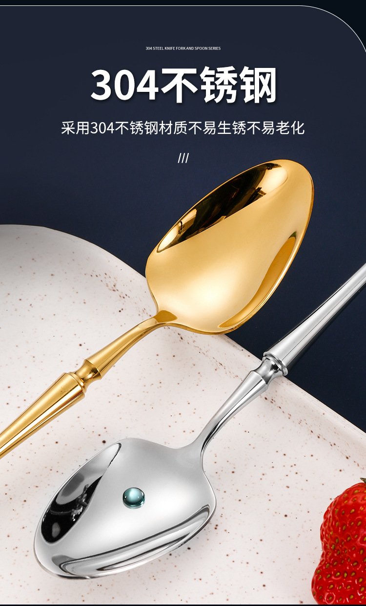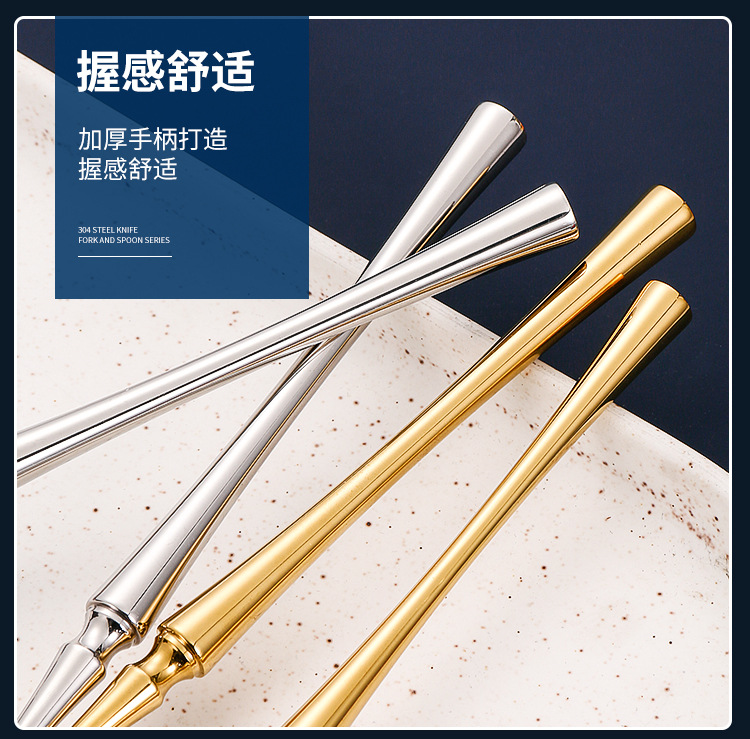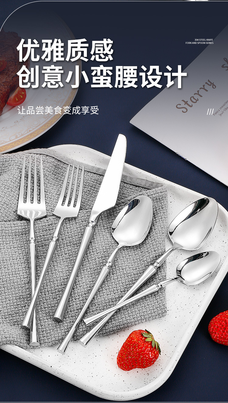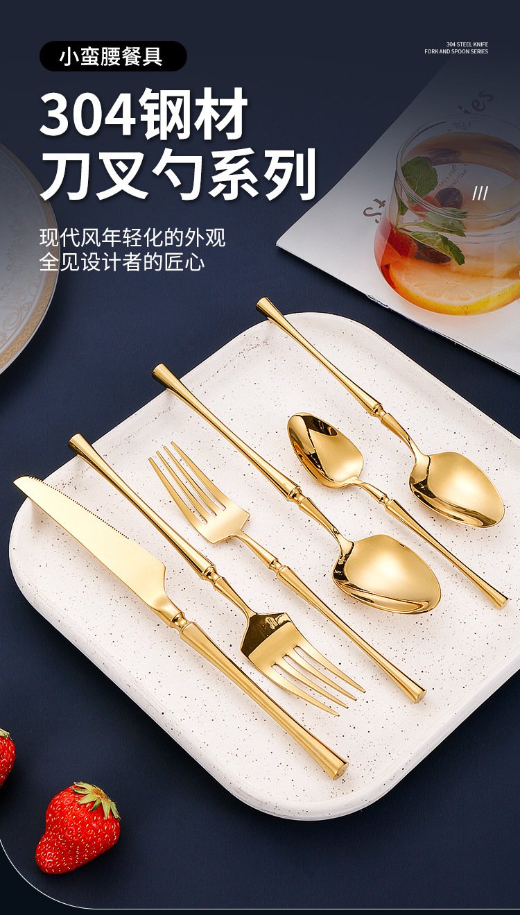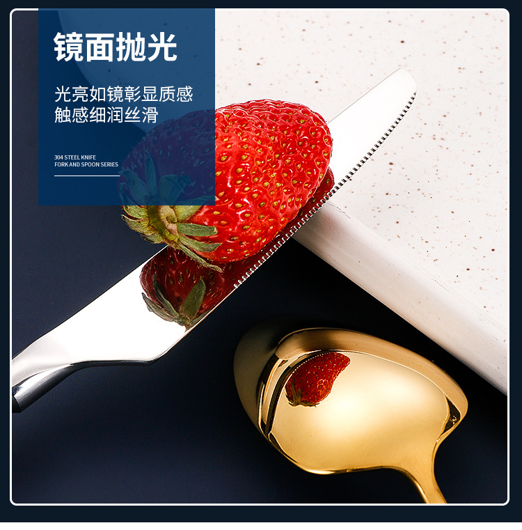 Transfronterizo 304 cuchillos, tenedores y cucharas de acero inoxidable engrosan el espejo, la creatividad es pequeña, la vajilla occidental del restaurante de tenedores de frutas de cintura salvaje