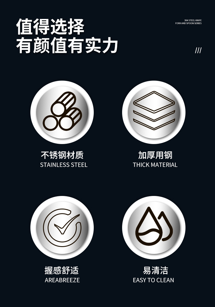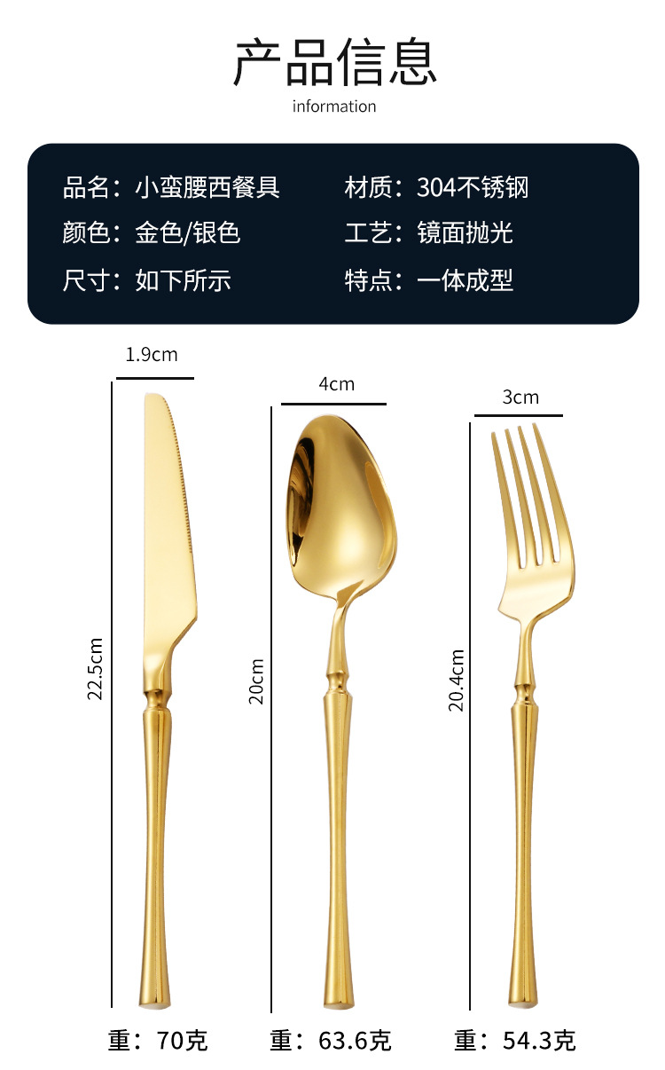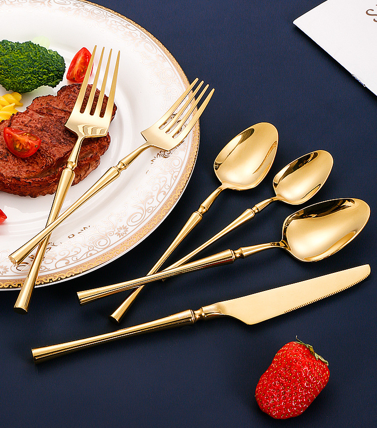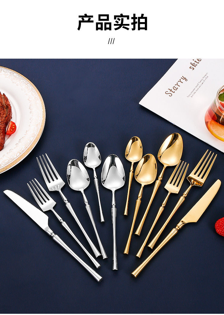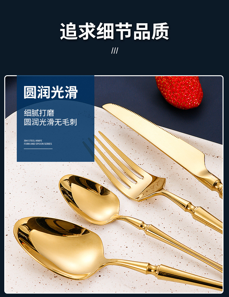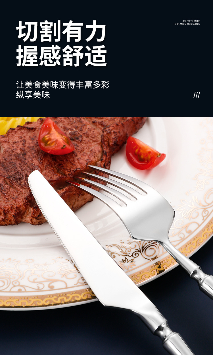 Transfronterizo 304 cuchillos, tenedores y cucharas de acero inoxidable engrosan el espejo, la creatividad es pequeña, la vajilla occidental del restaurante de tenedores de frutas de cintura salvaje