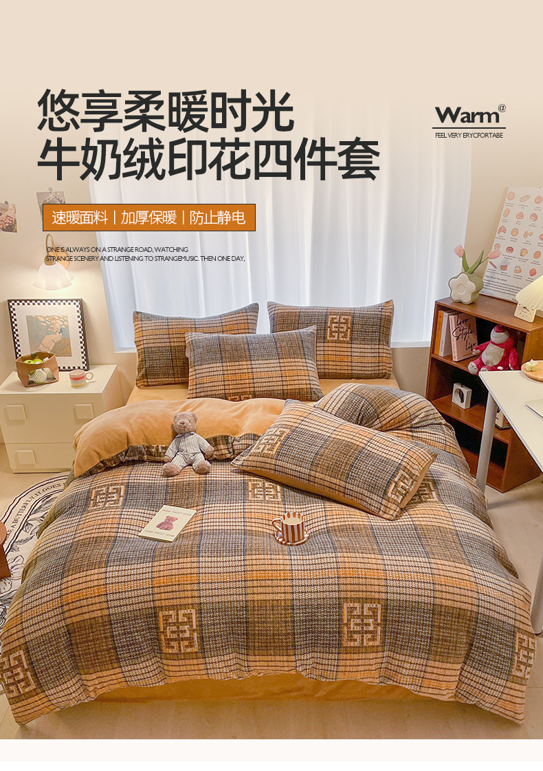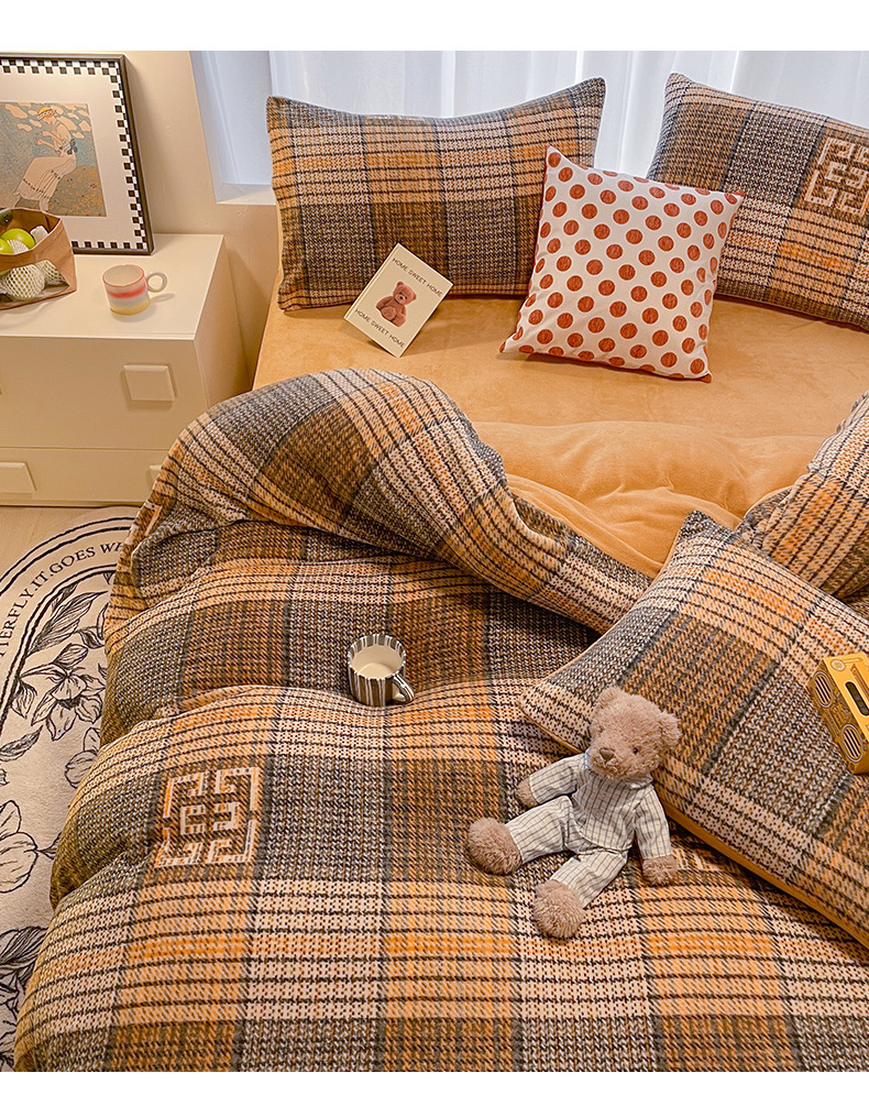 Engrosar el terciopelo de leche en invierno cuatro juegos de terciopelo de coral de viento pastoral bebé terciopelo sábanas calientes edredones ropa de cama