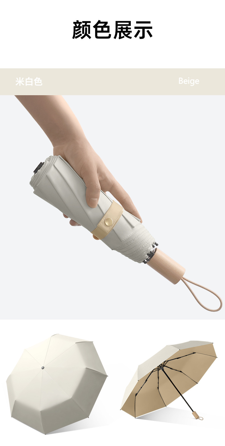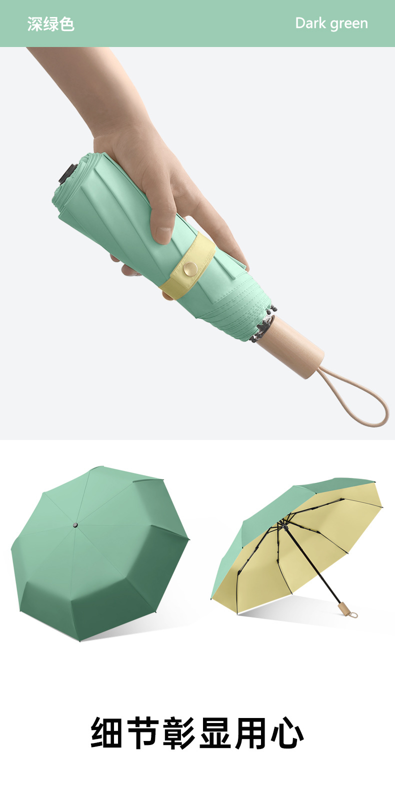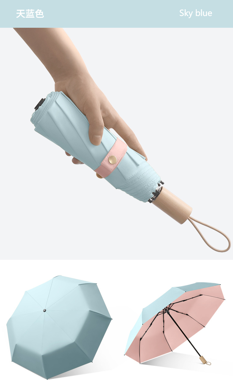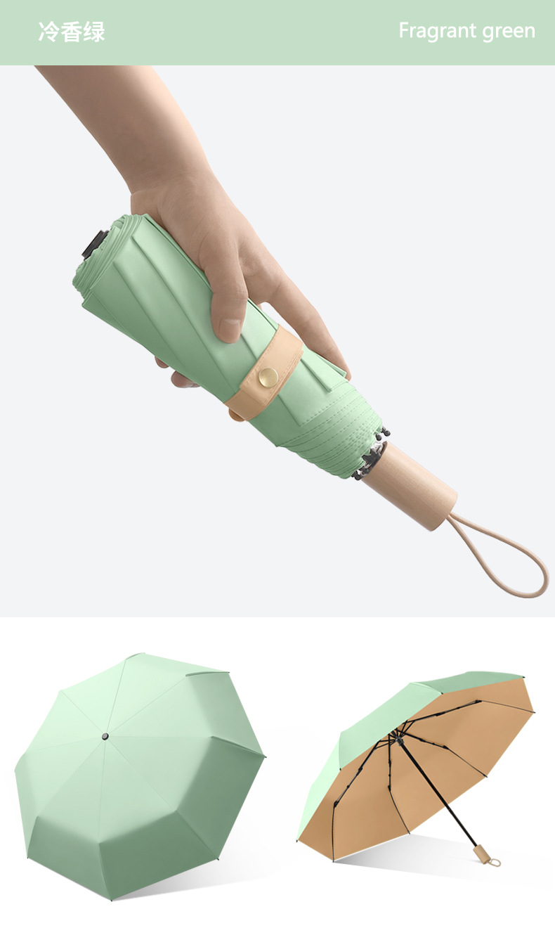 El mango de madera maciza a prueba de viento de 8 huesos de pegamento de color es simple, paraguas de doble uso para hombres y mujeres, pequeños, frescos, soleados y lluviosos.
