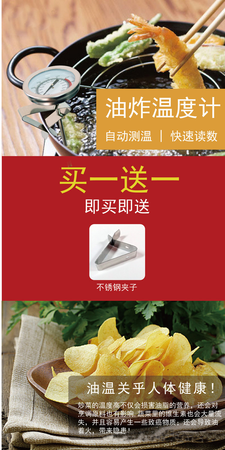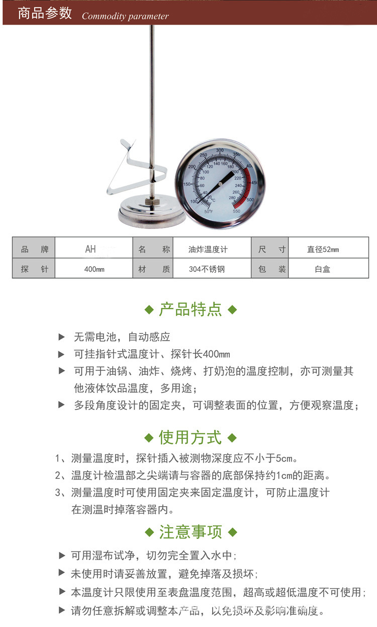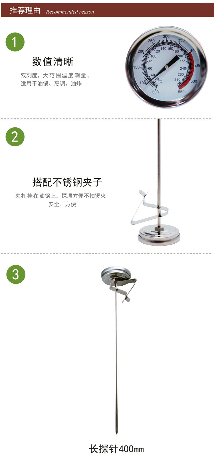Termómetro de freidora de acero inoxidable de 40 cm versión extendida del termómetro bimetálico de alta temperatura termómetro de temperatura de aceite