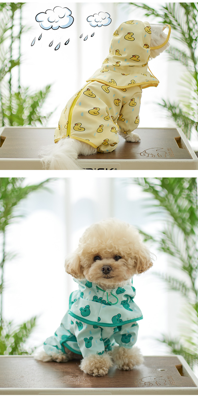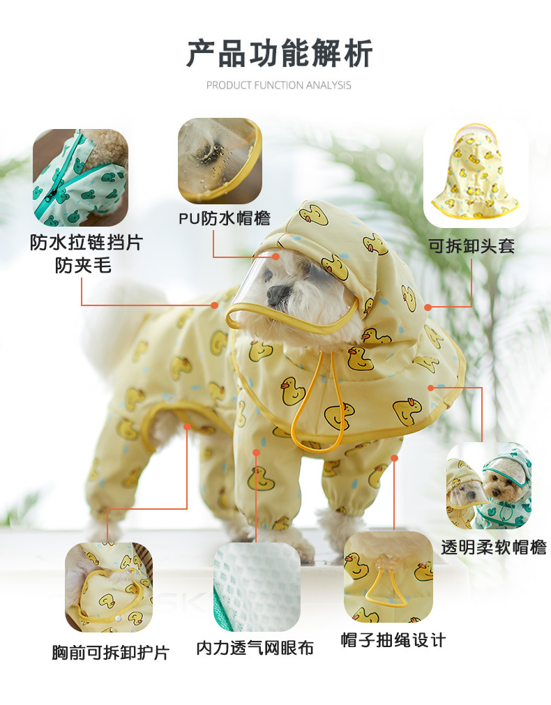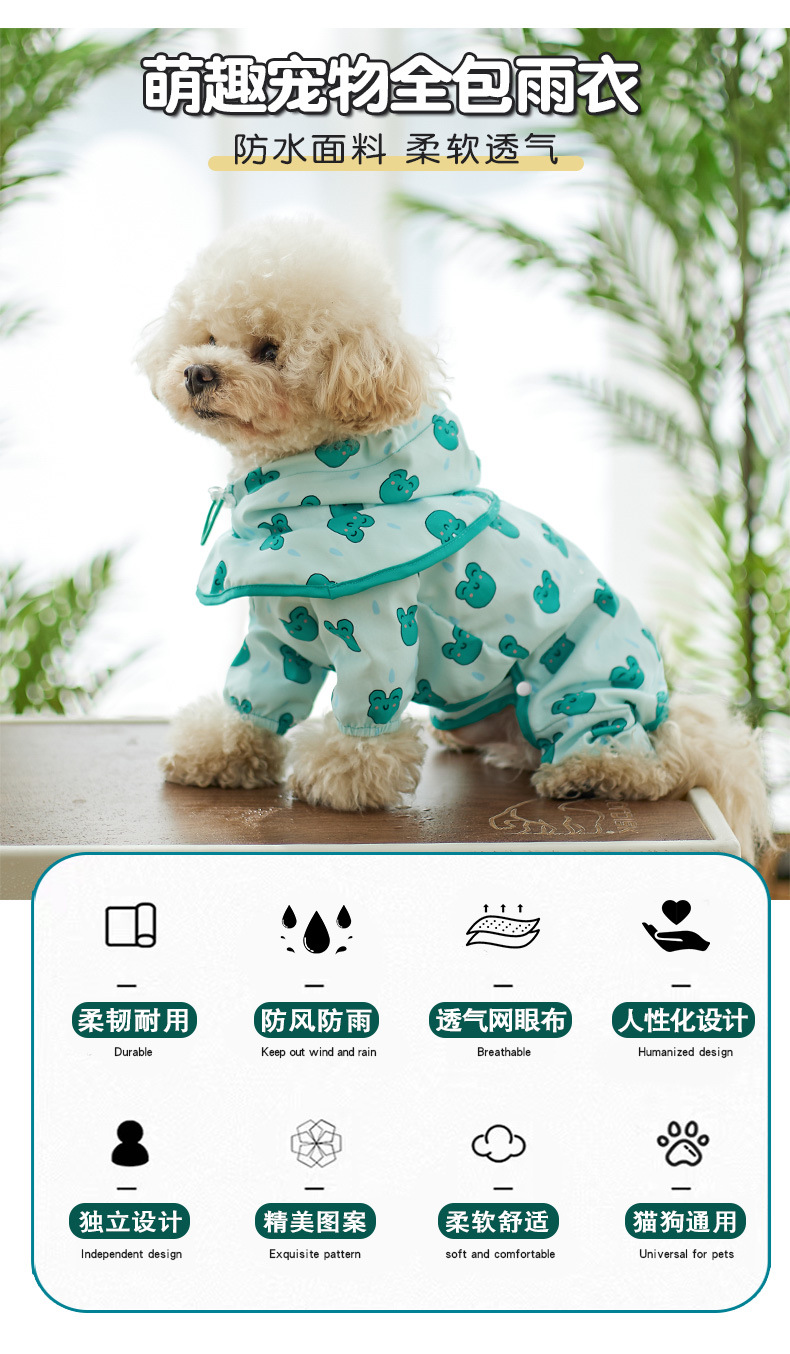 Impermeables para perros mascotas todo incluido en todas las estaciones impermeables ropa para perros pequeños y medianos en verano, impermeables de cuatro pies, ropa de osito de peluche